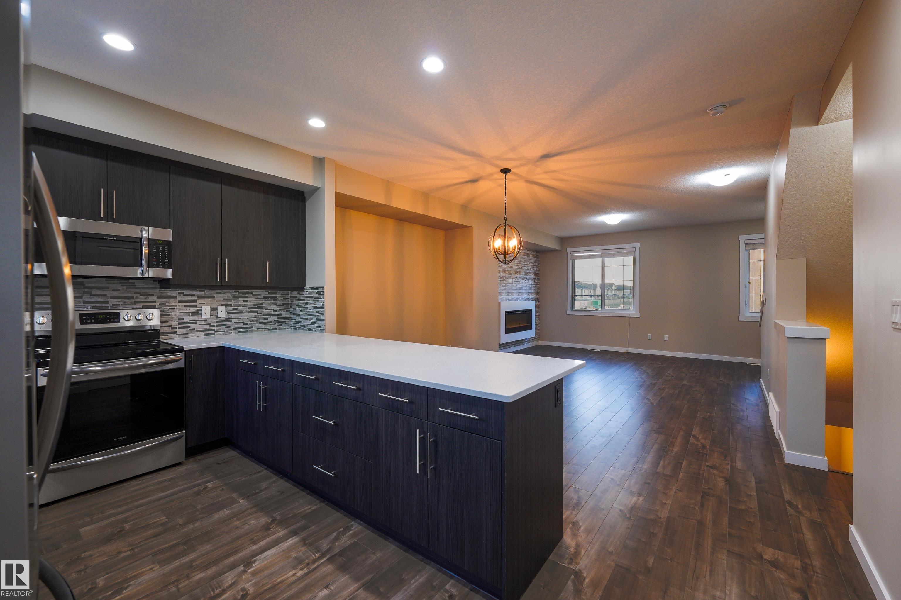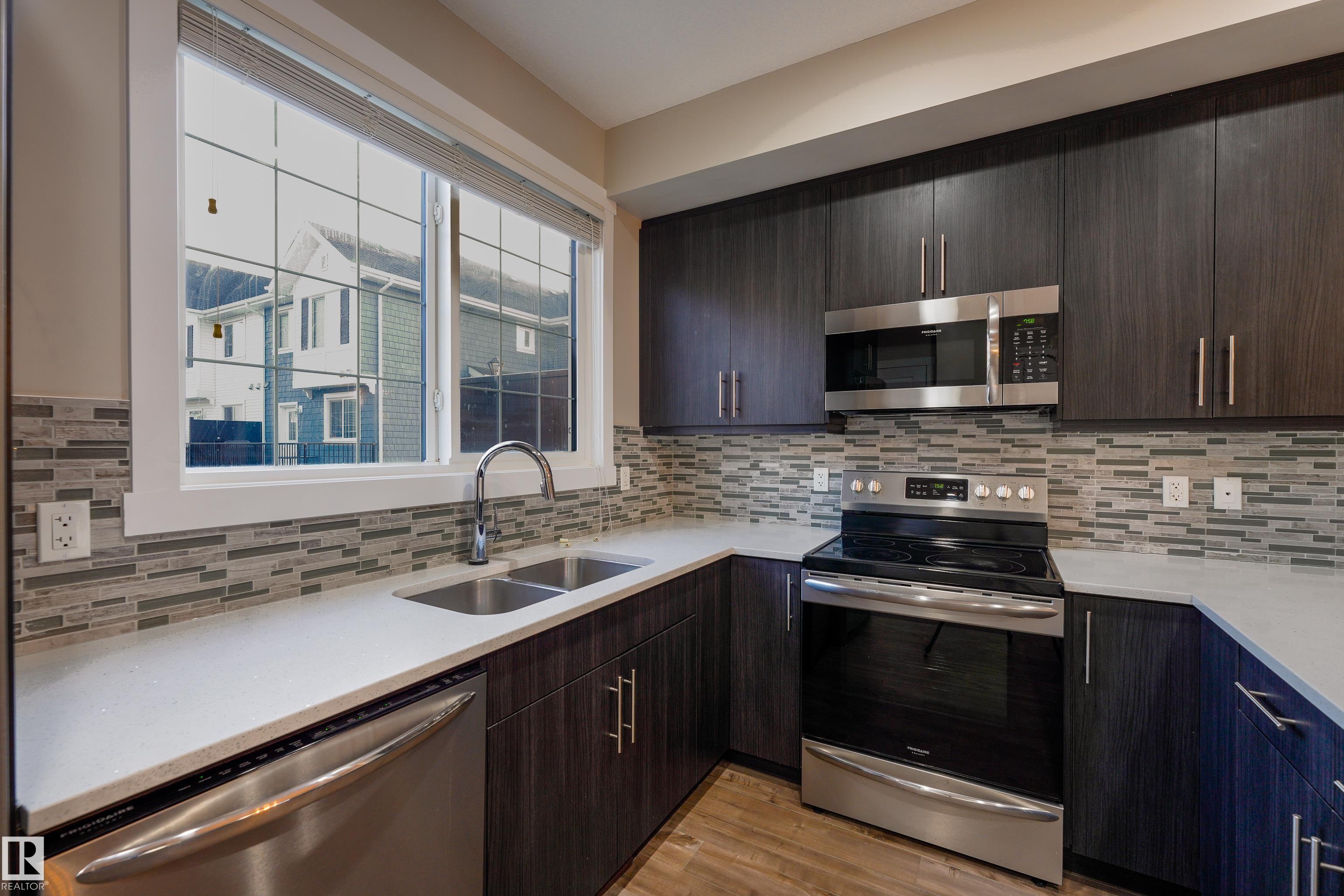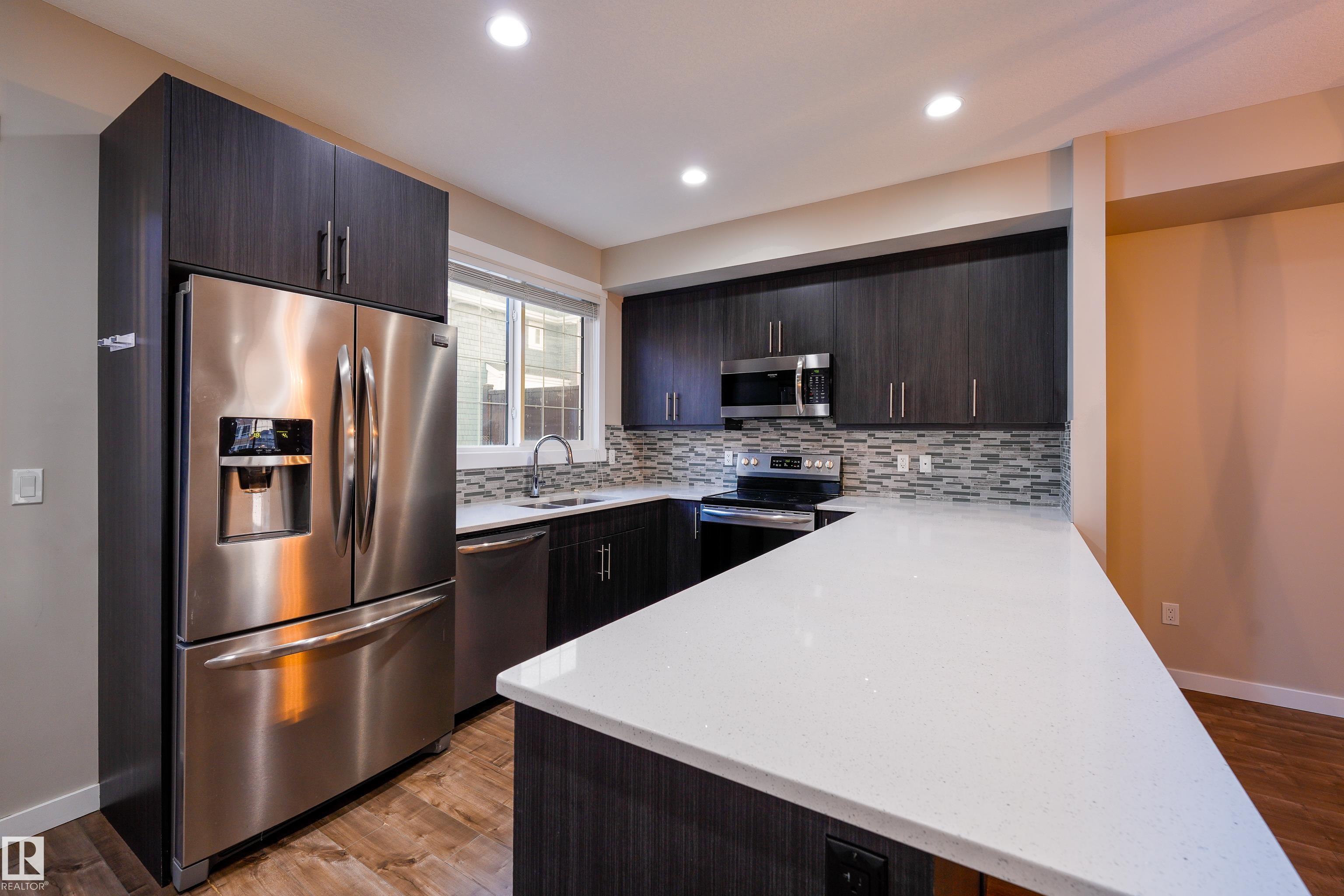 Welcome to this 3 bedroom 2.5 bath townhouse for sale offering AMAZING VALUE for first-time home buyers, investors, and young families. Previously a SHOW HOME, it features 9 FT CEILINGS, CENTRAL A/C, and MODERN FINISHES throughout. The entry level includes a large foyer with flex space perfect for a HOME OFFICE or GYM, plus a DOUBLE ATTACHED GARAGE. The main floor showcases a U-shaped kitchen with STAINLESS STEEL APPLIANCES, QUARTZ COUNTERTOPS, and ample cabinetry, along with a balcony and GAS BBQ OUTLET. The dining area opens to a bright living room with cozy fireplace. Upstairs, the primary suite offers a WALK-IN CLOSET & FULL ENSUITE alongside two bedrooms, a second full bath, and laundry. PRIME LOCATION, near Heritage Valley Town Centre, South Common, Airport Mall, groceries, and easy access to ANTHONY HENDAY, QE2, and YEG AIRPORT. Walking distance to Dr. Lila Fahlman School.