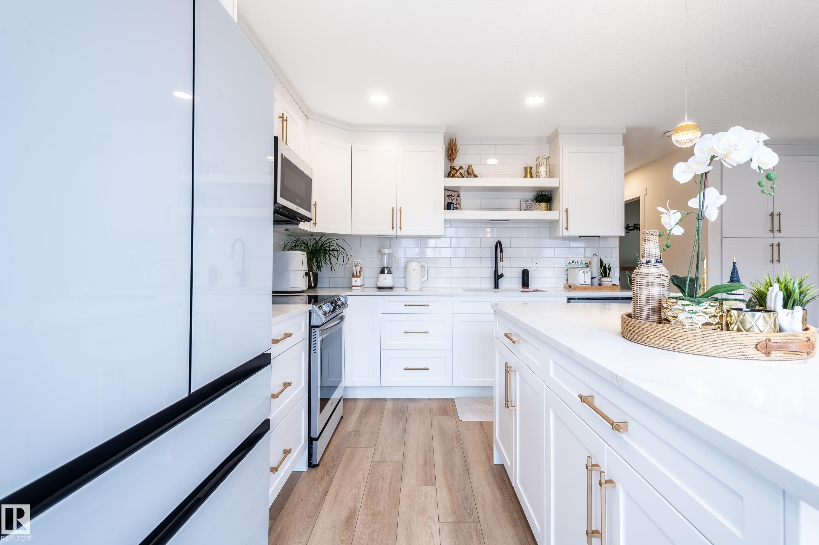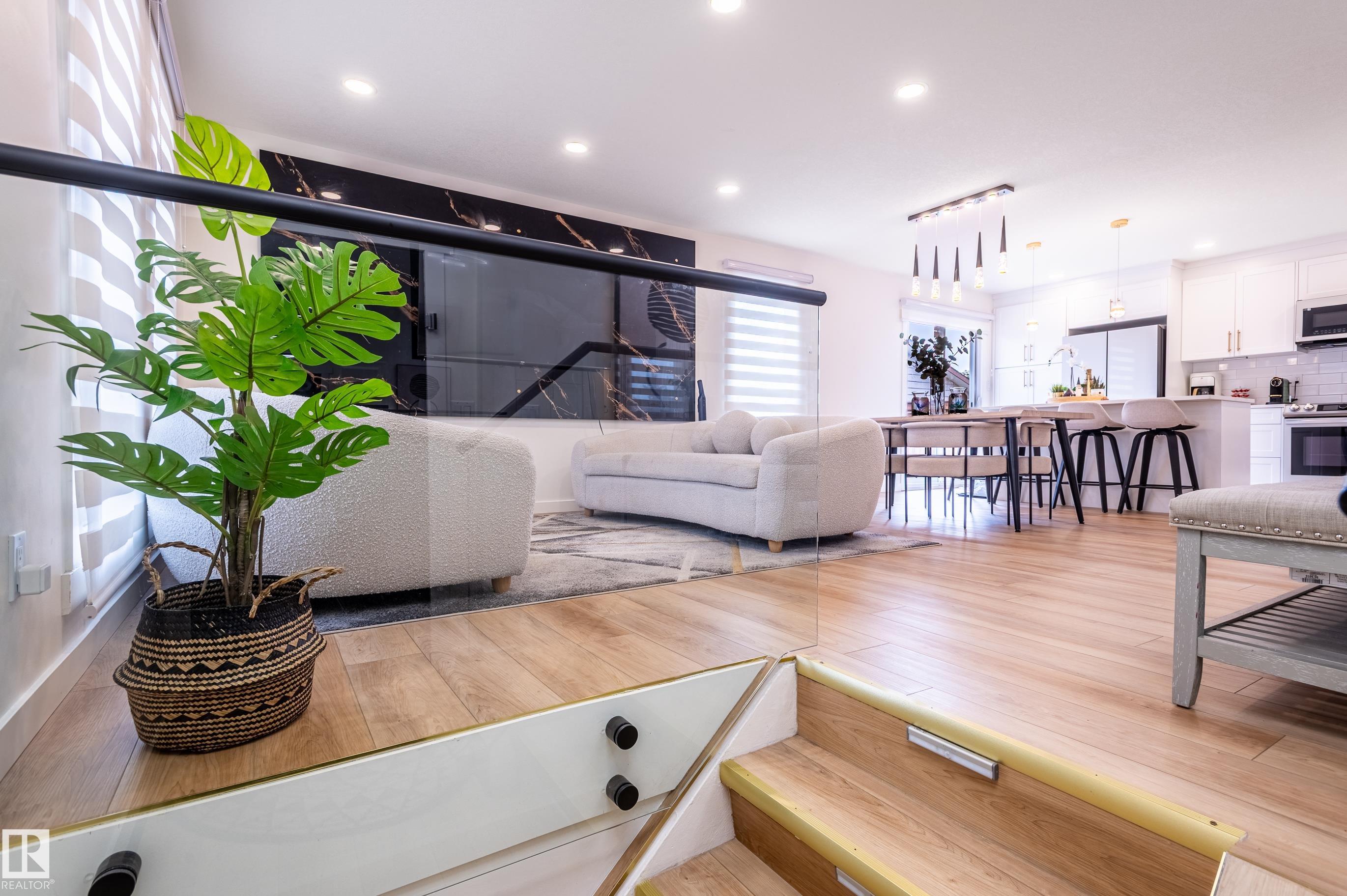 ELEGANCE blended with PRACTICALITY. This picturesque bungalow was fully RENOVATED inside and out in 2024. Set on a CORNER LOT with an OVERSIZED double garage, a spacious yard and deck, this home blends MODERN LUXURY with everyday comfort. The OPEN-CONCEPT main floor features a striking DESIGNER PORCELAIN feature wall, glass railings, chef-inspired kitchen with LUXURY APPLIANCES, and a bright dining area perfect for ENTERTAINING. The main-floor primary suite offers a PRIVATE ENSUITE, while two additional bedrooms and a stylish main bath complete the upper level. The FULLY FINISHED carpeted basement impresses with a FIREPLACE/TV wall in the REC ROOM, two more bedrooms including a primary with ensuite, another full bath - ideal for hosting guests or creating the perfect family retreat. Located in a QUIET corner of a FAMILY-FRIENDLY neighbourhood close to SCHOOLS, PARKS, and AMENITIES, this property is the perfect match for families looking for FUNCTIONALITY but who also appreciate living in STYLE!