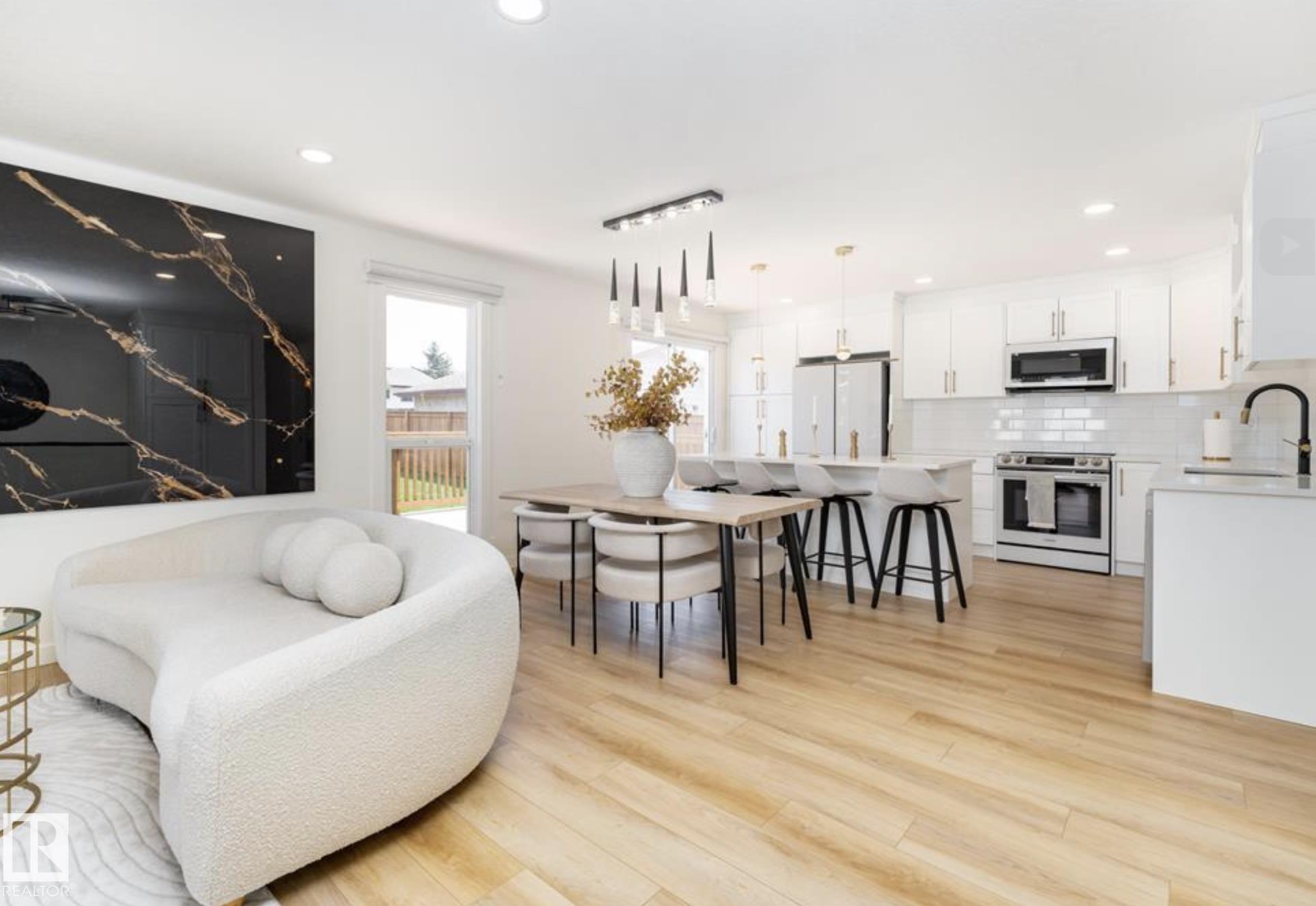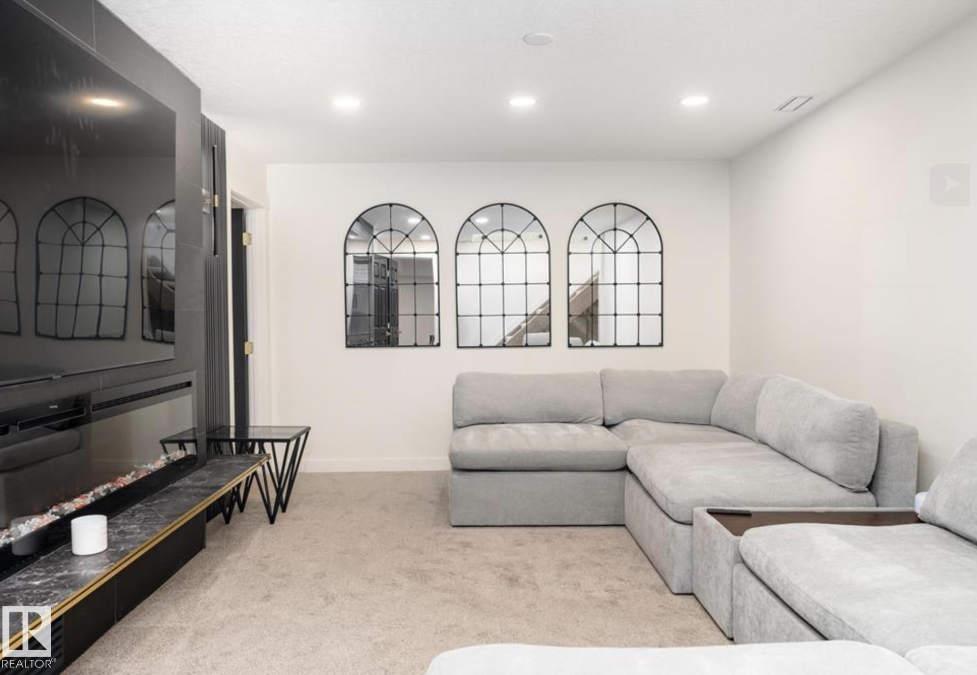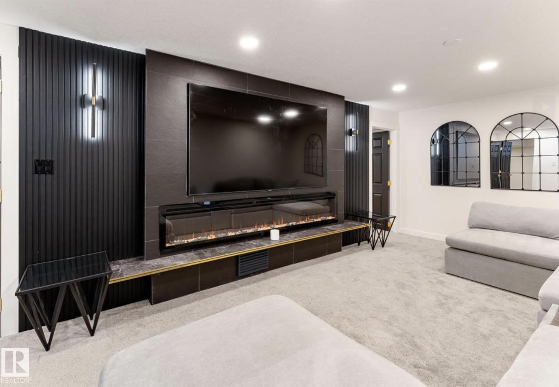 Discover the newest standout in Baturyn... a home that redefines modern living in an established community. This isn't just a renovation; it's a contemporary masterpiece featuring a striking designer porcelain feature wall and sleek glass railings that immediately set a sophisticated tone. The chef-inspired kitchen is the heart of the main floor, equipped with premium appliances and flowing seamlessly into a sunlit dining space designed for hosting. The main floor offers three spacious bedrooms, including a primary retreat with a chic private ensuite. The "wow" factor continues in the fully finished basement, which features a custom fireplace media wall and a layout designed for extended family or guests. The lower level includes two additional bedrooms--one of which is a true VIP suite with its own private lounge and ensuite bath. Situated on a commanding corner lot with an oversized double garage and expansive deck, this home offers the perfect blend of luxury finishes and functional family living.