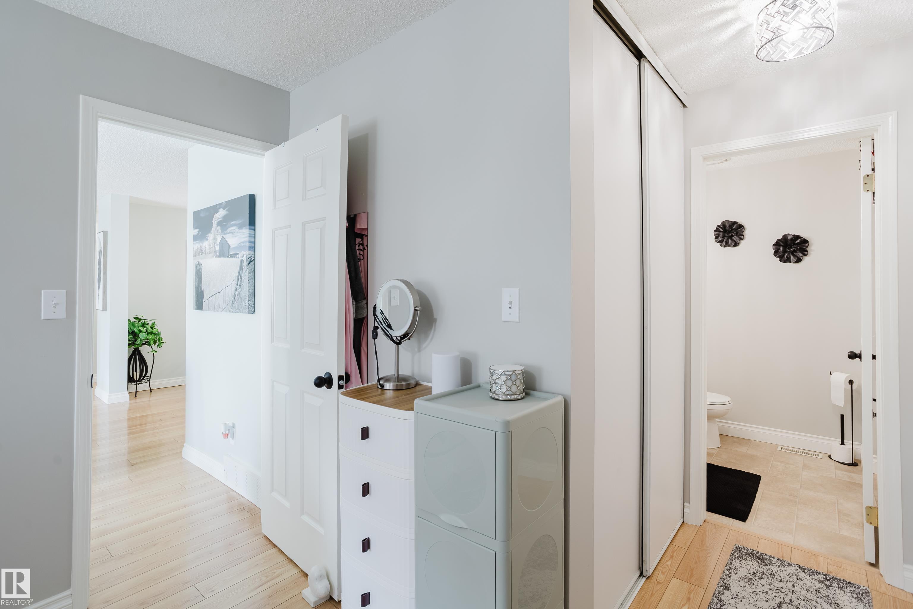 Unique opportunity! Newly updated townhouse-style condo with NO SHARED WALLS. Enjoy the privacy of a standalone feel in this beautifully refreshed home, with only 6 units per building & 2 units per floor. Units include a heated two-car tandem garage with a dedicated storage room -- a rare and highly desirable feature. The spacious 1,028 sq.ft. layout is highlighted by an oversized 16' x 20' primary bedroom with a double walk-through closet & 4-piece ensuite. The entire unit, including ceilings and doors, was professionally painted by ProCo Painting in 2024. Custom granite countertops by S&S Stone complement cabinetry professionally refinished by Custom ColorSpec. Residents enjoy access to a free fitness room and sauna. Located just a 20-min. walk to Rogers Arena, a 10-min. walk to an LRT station & major bus routes. The building is well managed with a healthy reserve fund & proactive Board. This move-in ready condo offers privacy, upgrades, & unbeatable convenience -- a rare combination that's hard to find.