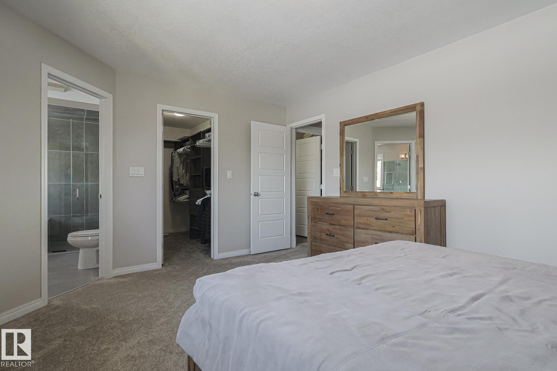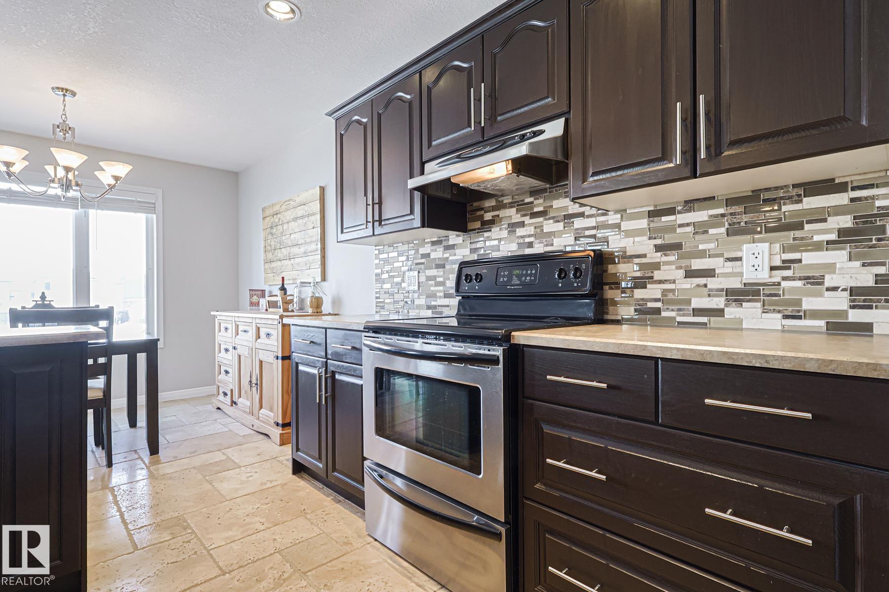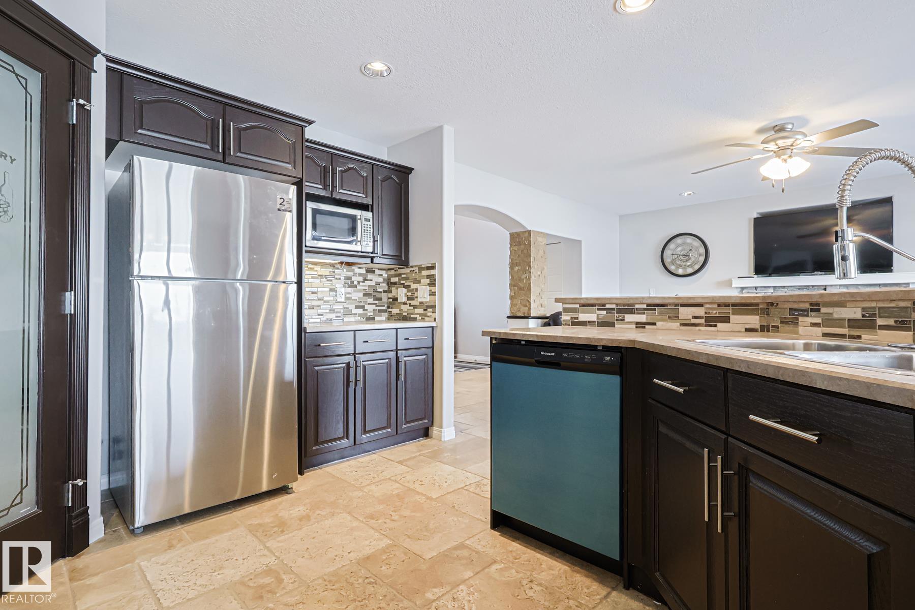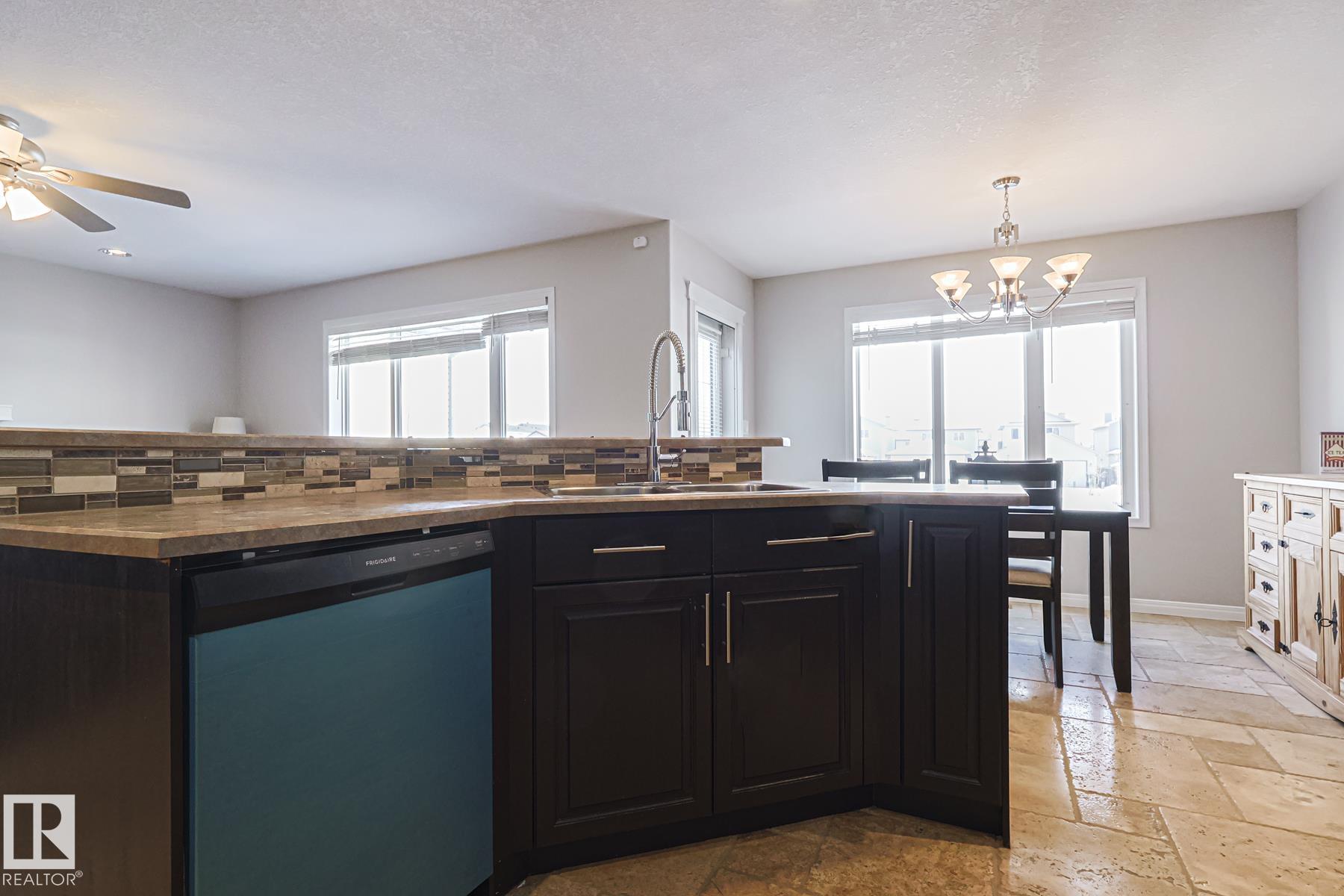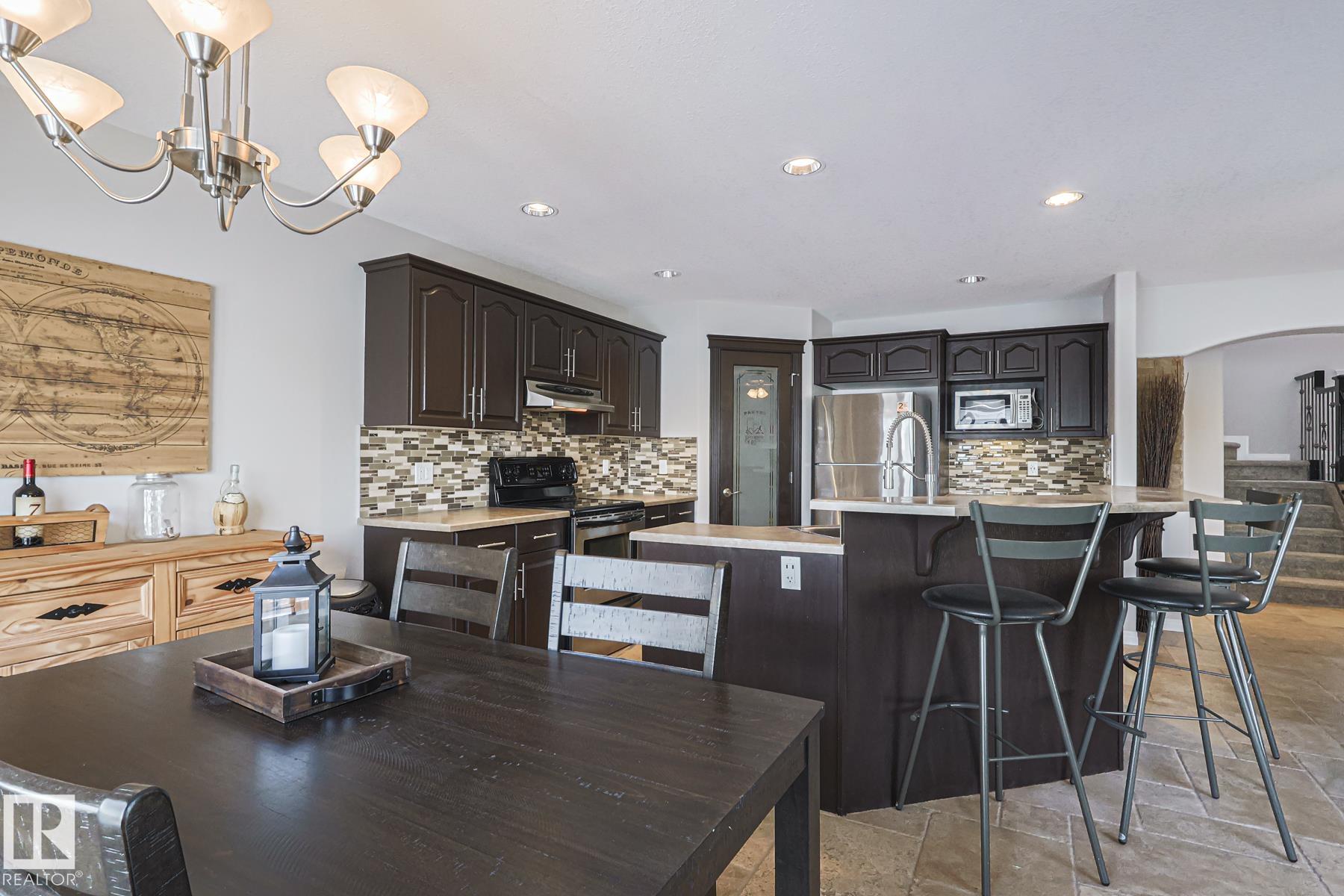 Welcome to this well-maintained home w/ DOUBLE ATTACHED GARAGE on a quiet street of the desirable Brintnell community. BACKING ON A GREEN BELT! Upon entry you are greeted with a high ceiling, beautiful ceramic floor & custom stonework pillars leading to an OPEN CONCEPT kitchen featuring convenient CORNER PANTRY, SS appliances, center island & plenty of mahogany-colored cabinets for all chef's needs. Next is the Living Rm w/ beautiful hardwood floor & cozy STONE-FACED FIREPLACE, plus the Dining Area! Bright windows offer great views of the COMPOSITE DECK w/ GLASS RAILINGS, yard & WALKING TRAIL behind. A 2pc bath completes the main floor. Up the stairs with iron spindles is the BONUS ROOM, PRIMARY/MASTER bedroom w/ ENSUITE bath featuring jacuzzi tub & brand-new GLASS SHOWER, 2 other bedrooms & another full bath. Basement waits final touches for a family room w/ its own gas fireplace, den & another bedroom. Steps away from parks and trails & minutes away from all shopping and A. Henday Dr. MUST-SEE!
