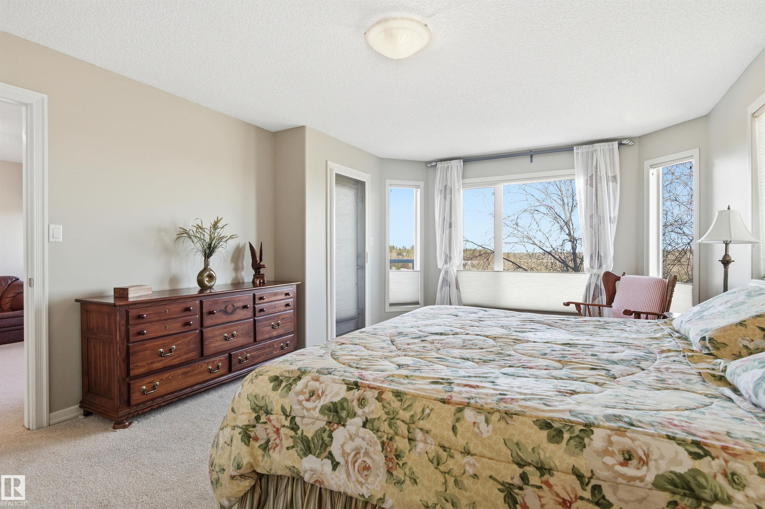 Feels like home in this Castle On a Hill! Truly the Best of Both Worlds! Executive carefree living with panoramic ravine & city views. Quiet end unit. 2150 sq ft on two levels plus a fully developed lower level. It looks amazing inside and out with a gorgeous layout & surrounded by nature. Private & secluded, Serene & surreal! Main floor boasts a spacious & inviting foyer. Elegant formal dining area with two huge windows. Beautiful kitchen with ample cabinets & a garden window over sink. Bright & cheery dinette has huge picturesque windows & french door onto the private deck. Fantastic great room has two windows & gorgeous gas fireplace. Master tranquil retreat has that same unsurpassed view. Walk-in closet & 5 piece jacuzzi ensuite. Second bedroom is humongous with access to a full bath. Cozy family room/loft has a commanding view including the ski hill & a private balcony. Conveniently located laundry room. Lower level has a rec room, 2 more large bedrooms, full bath & ample storage. A pleasure to show.