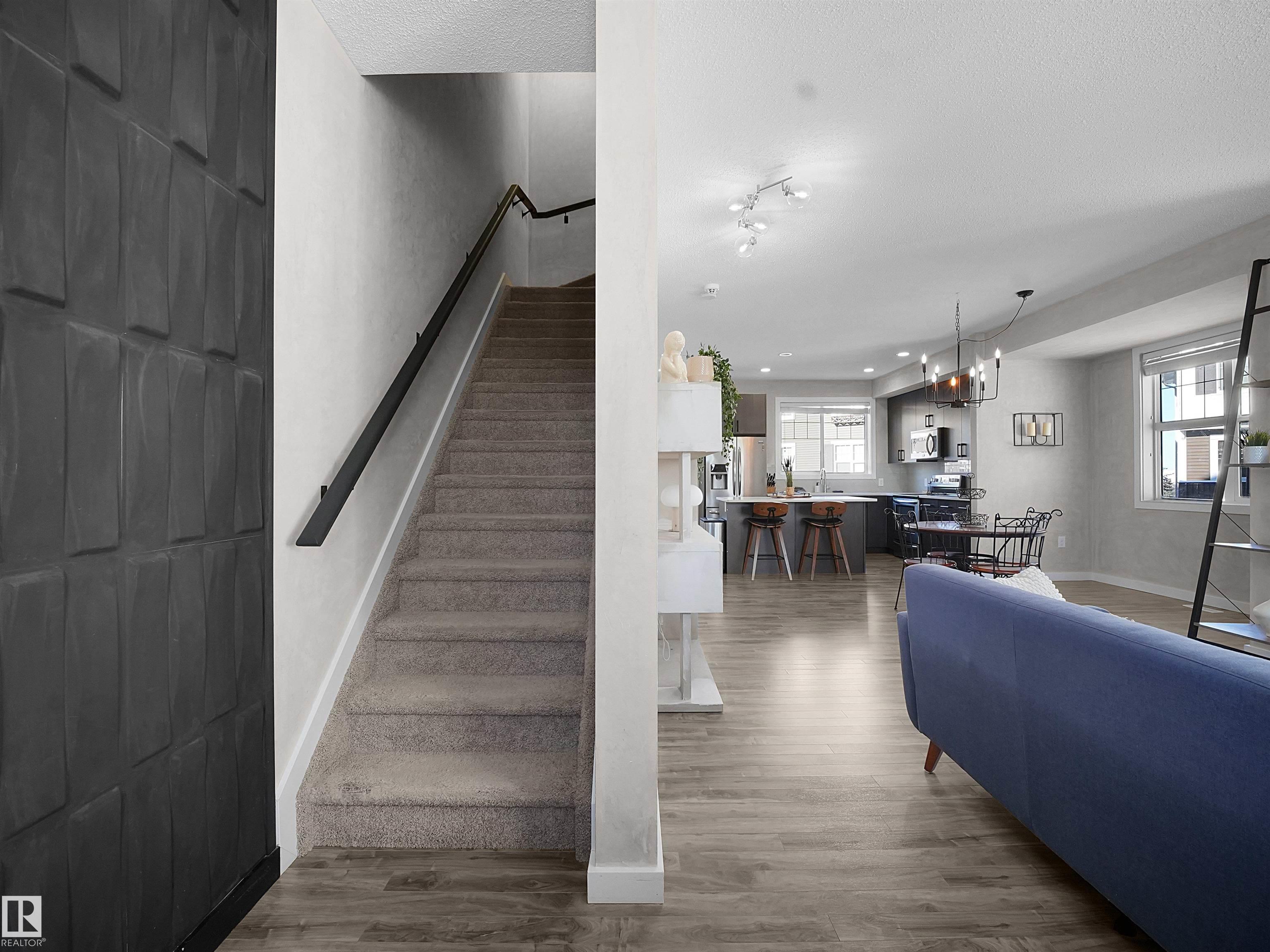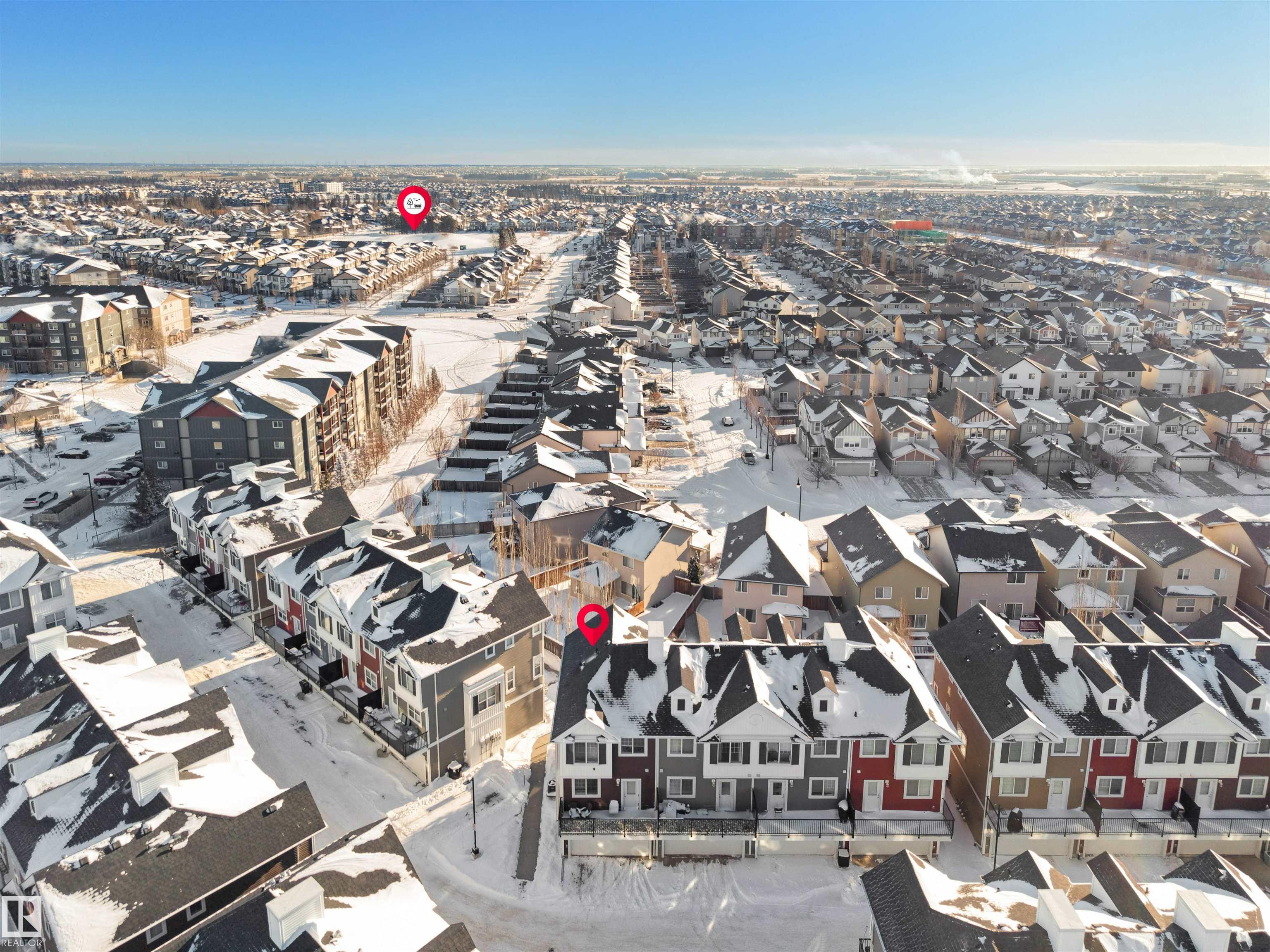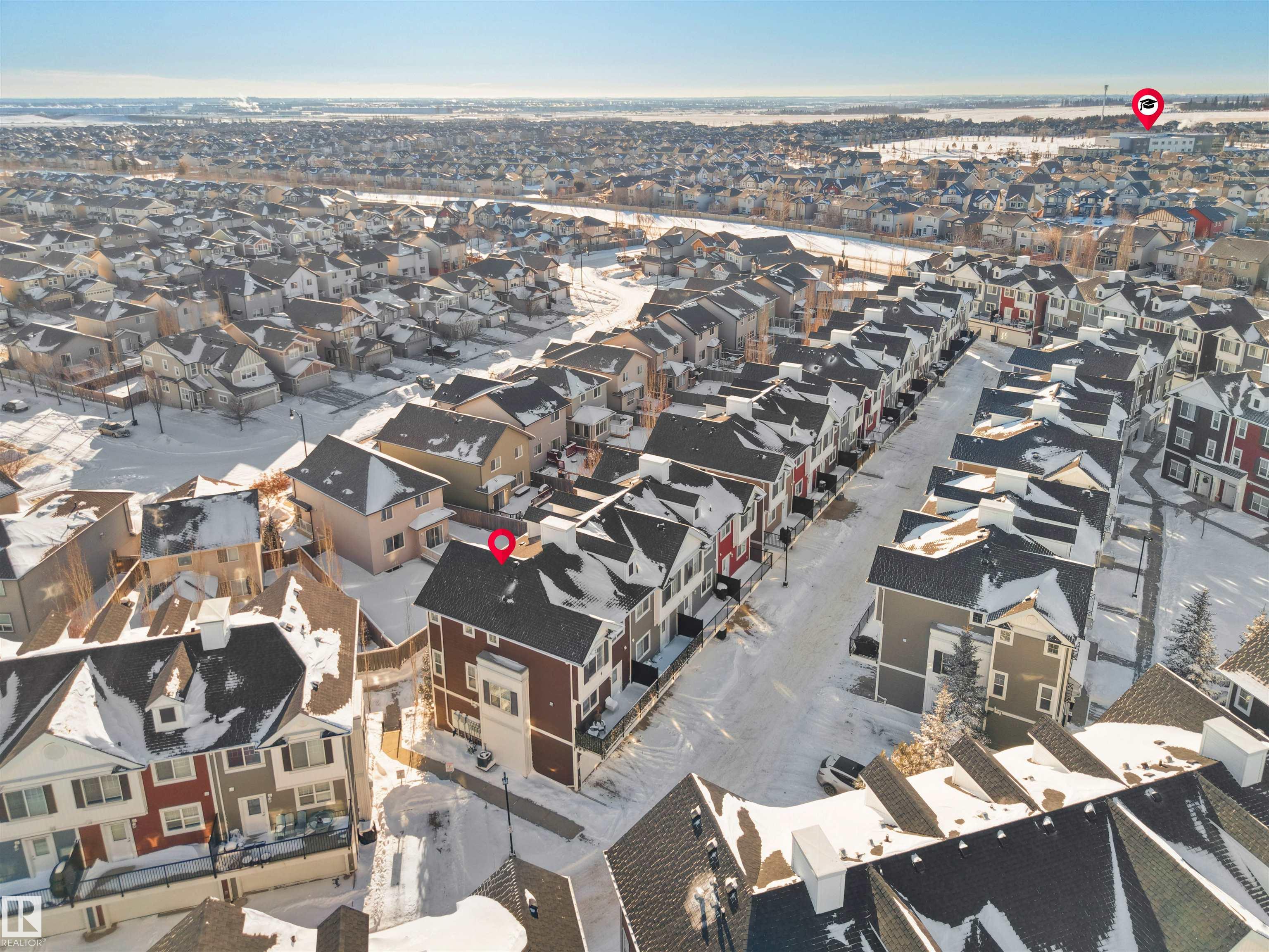 Immaculate, spacious townhouse in Edmonton's desirable south side -- an exceptional combination of location, space and value. This well-maintained home offers an open, light-filled layout across three levels, oversized windows that flood living areas with natural light, and a large private balcony perfect for morning coffee or summer entertaining. The attached double-car garage provides convenient parking and storage. Walk to two nearby schools; quick access to the airport and the Amazon distribution centre makes commuting and work travel easy. The neighbourhood is quiet, professionally maintained and family-friendly. Priced to sell this rare opportunity for space, convenience and comfort in one package.