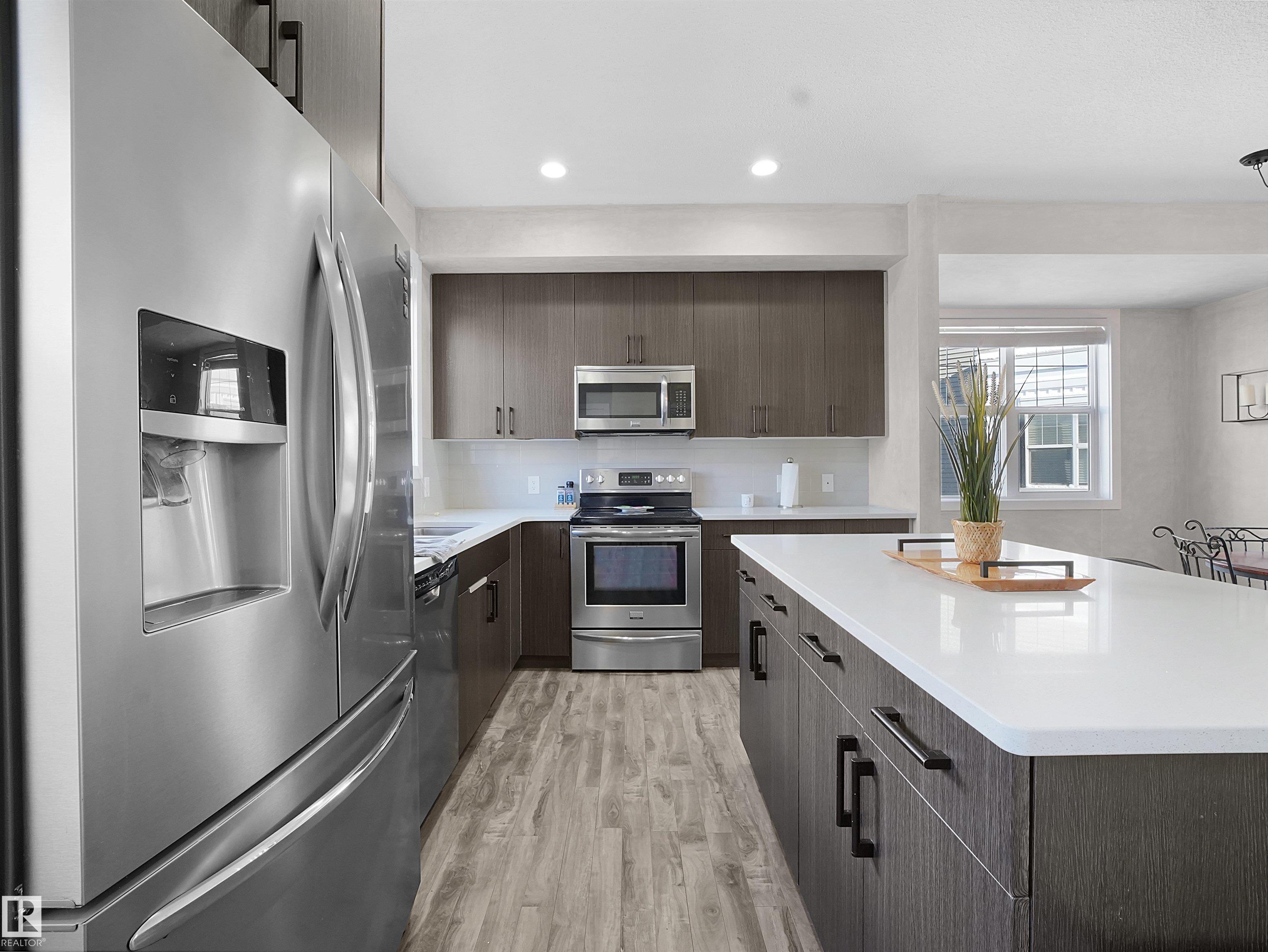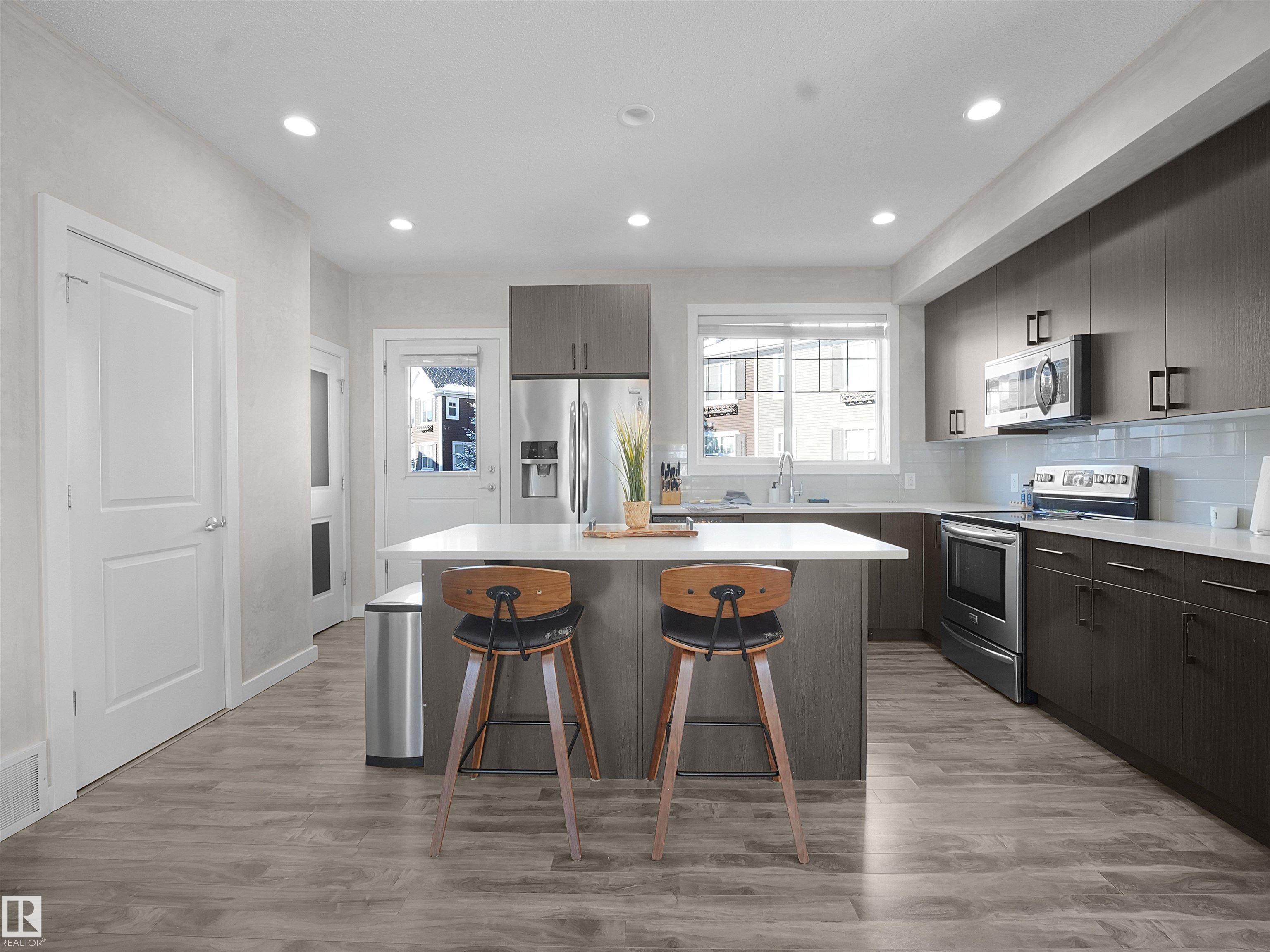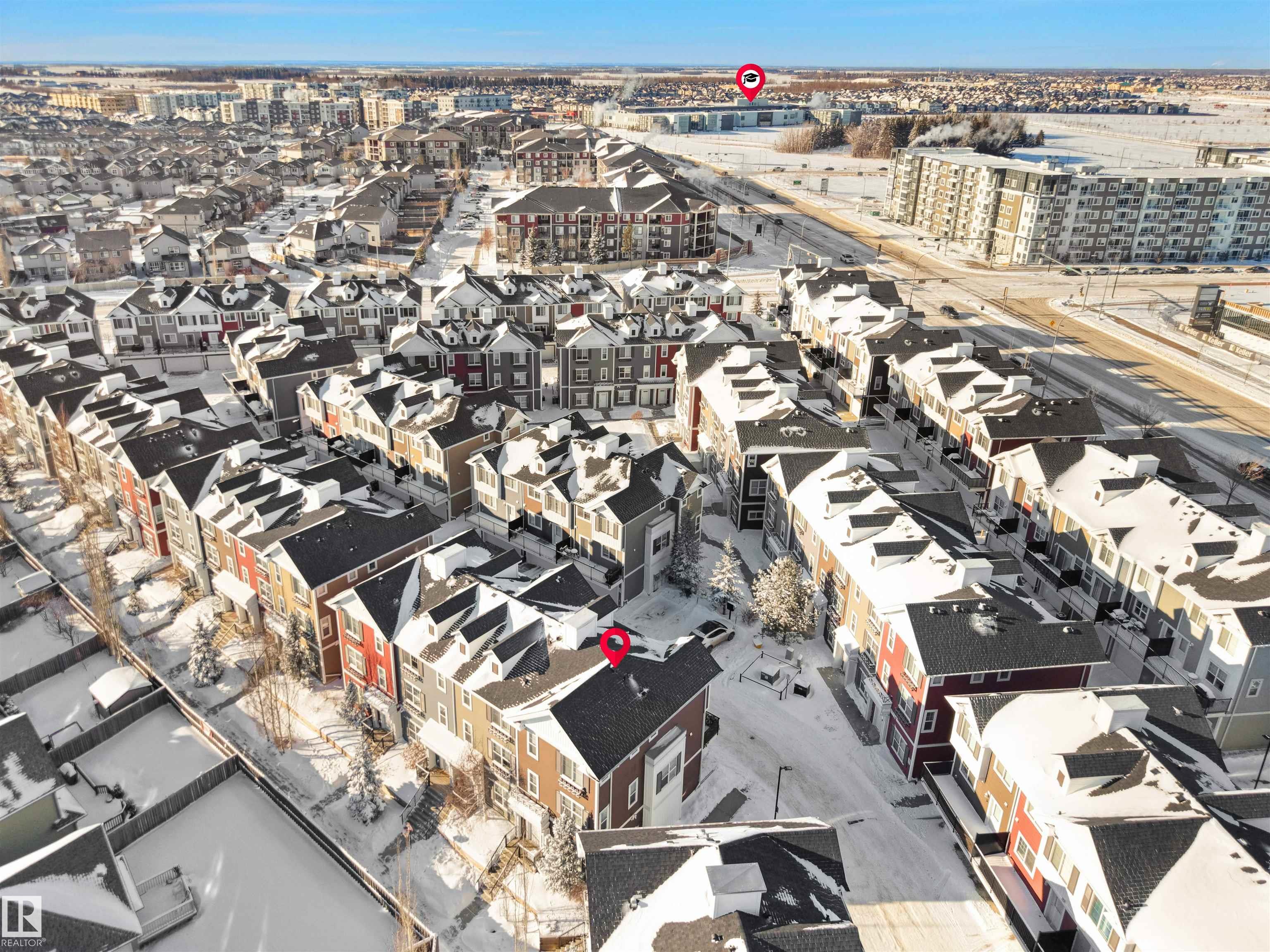 Immaculate, spacious townhouse in Edmonton's desirable south side -- an exceptional combination of location, space and value. This well-maintained home offers an open, light-filled layout across three levels, oversized windows that flood living areas with natural light, and a large private balcony perfect for morning coffee or summer entertaining. The attached double-car garage provides convenient parking and storage. Walk to two nearby schools; quick access to the airport and the Amazon distribution centre makes commuting and work travel easy. The neighbourhood is quiet, professionally maintained and family-friendly. Priced to sell this rare opportunity for space, convenience and comfort in one package.