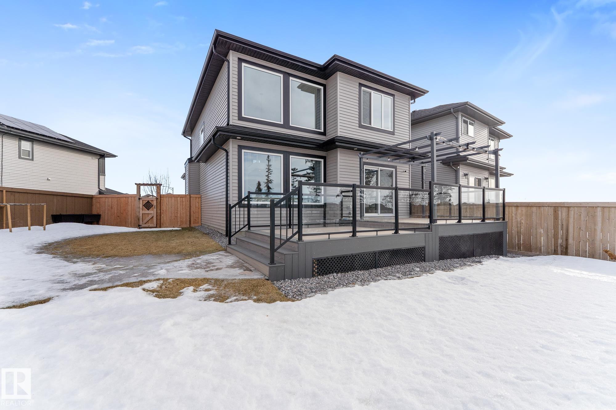 Cavanagh | 2,041 Sq Ft | Cul-de-Sac | Ravine Backing | Premium Oversized Lot | Backyard Dream Rare lot. Quiet cul-de-sac. Ravine views. Real value. Welcome to this exceptionally maintained 2,056 sq ft two-storey in Cavanagh, perfectly positioned on one of the largest lots in the community, backing directly onto a scenic ravine with no rear neighbours just privacy and open skies. Main floor features a private office, powder room & a dramatic open-to-below living room filled with natural light. The gourmet kitchen impresses with quartz countertops, gas stove, chimney hood fan, modern cabinetry, walk-through pantry, and a large island. Upstairs offers 3 bright bedrooms, including a spacious primary with walk-in closet, full bath, and bonus room. Fully finished backyard showcases a pergola-covered 28' wide composite deck, 30'paver pathway to fire pit, concrete edging, and blooming trees. Unspoiled basement with carpet laid. Central AC to keep cool in summer.