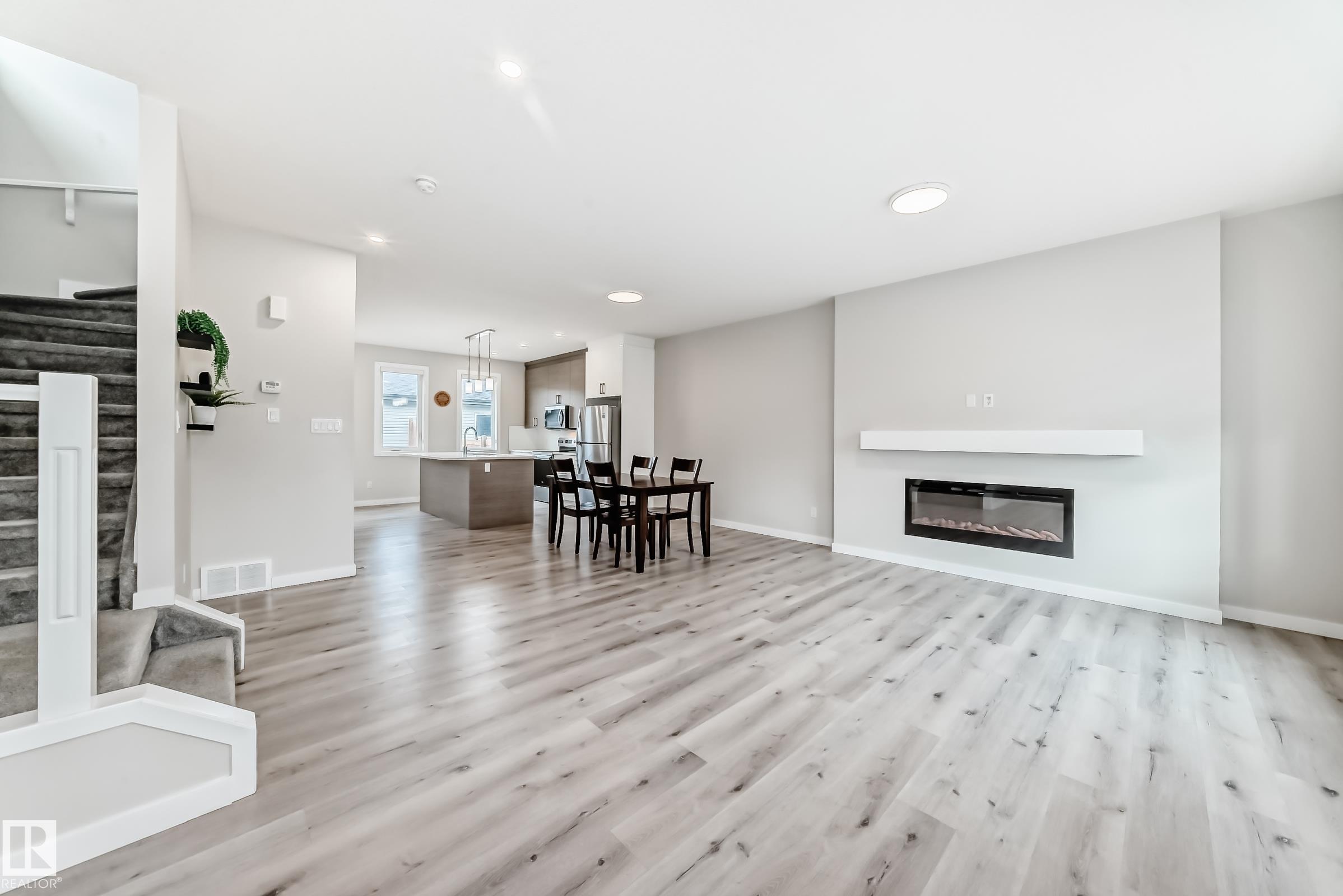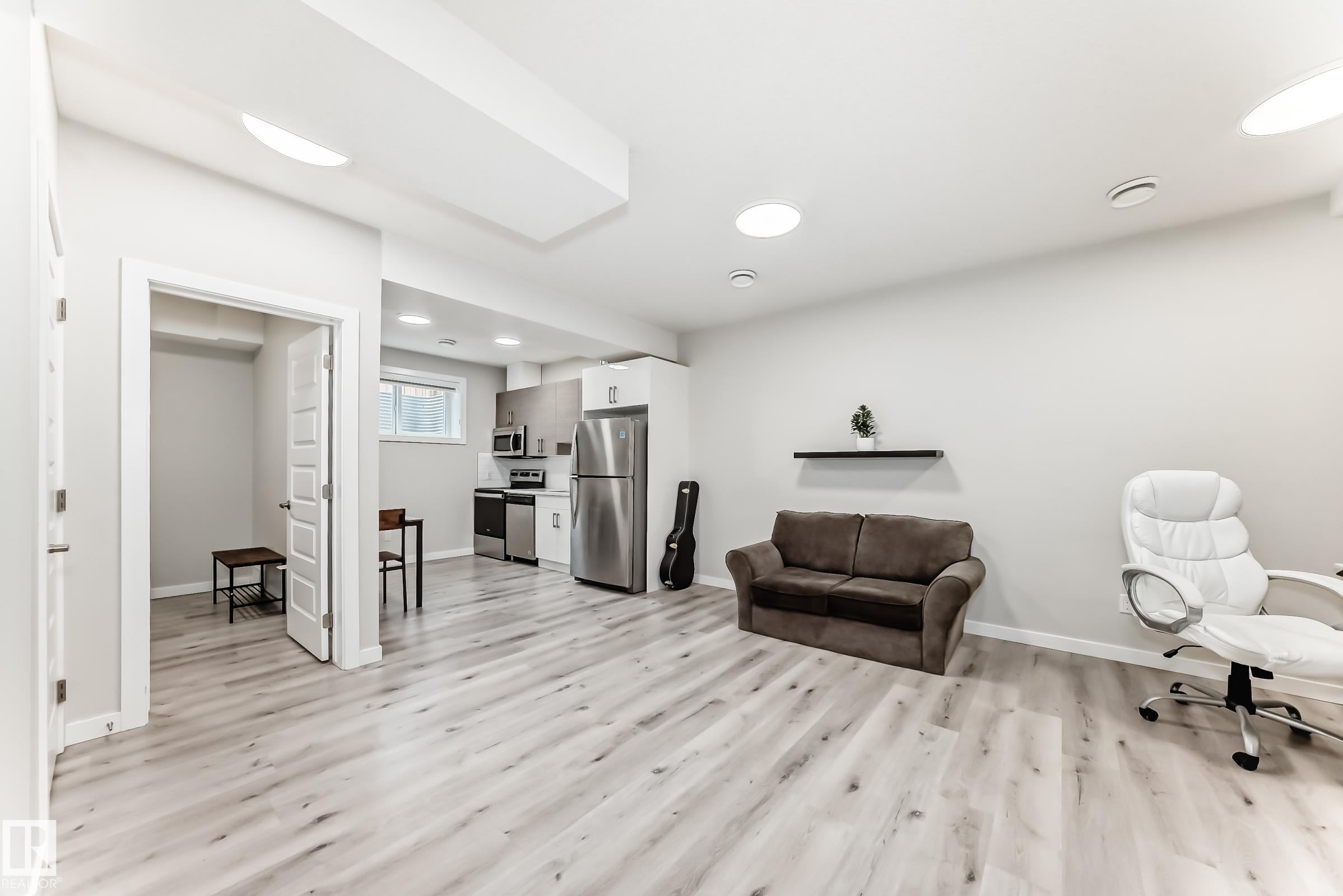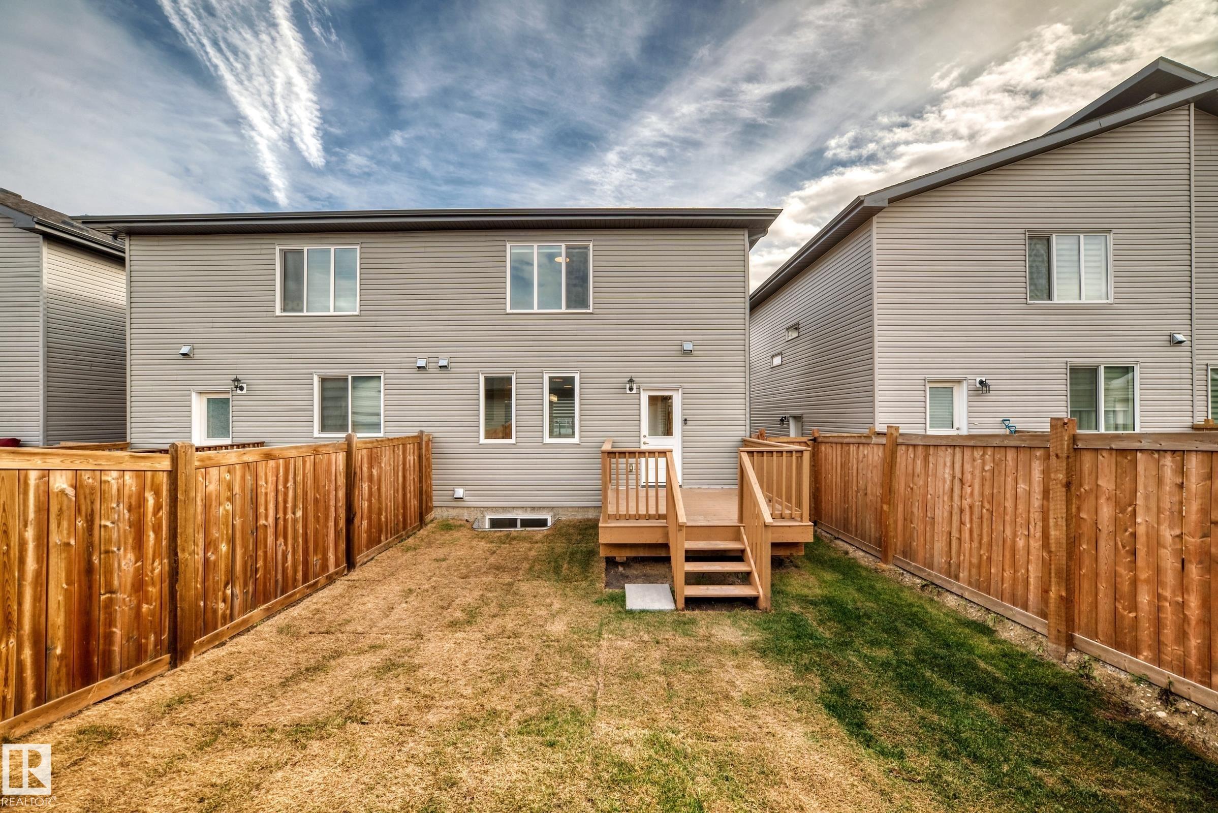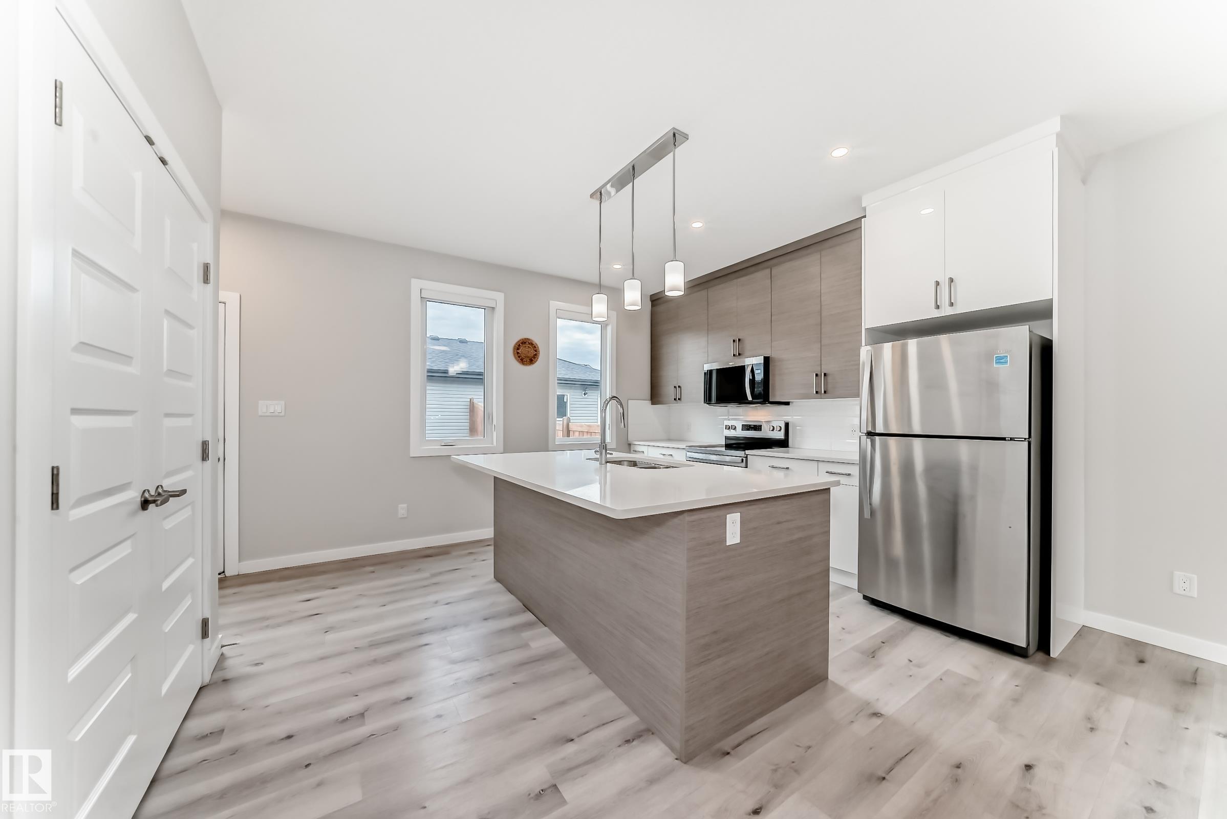 Versatile Half Duplex with Legal Suite in Chappelle! Welcome to this well-appointed 2-storey half duplex in the vibrant community of Chappelle. This home features a spacious 3-bedroom layout plus a 1-bedroom legal basement suite--ideal for extended family or rental income. The open concept main floor includes an electric fireplace, a large quartz island, and stainless steel appliances, including a brand new stove and microwave hood fan. Upstairs offers 3 bedrooms, 2 full baths, and convenient laundry. The primary bedroom boasts a 4-piece ensuite and walk-in closet. The legal basement suite includes its own kitchen with quartz counters, stainless steel appliances, separate laundry, and a 4-piece bath. Enjoy a double detached garage, deck, and a fenced, landscaped yard. Located near shopping, schools, parks, trails, Jagare Ridge Golf, Terwillegar Rec Centre, and the future Capital Line South LRT.