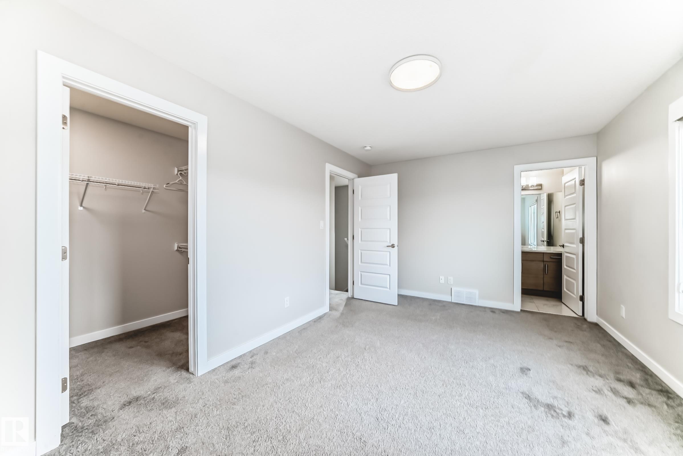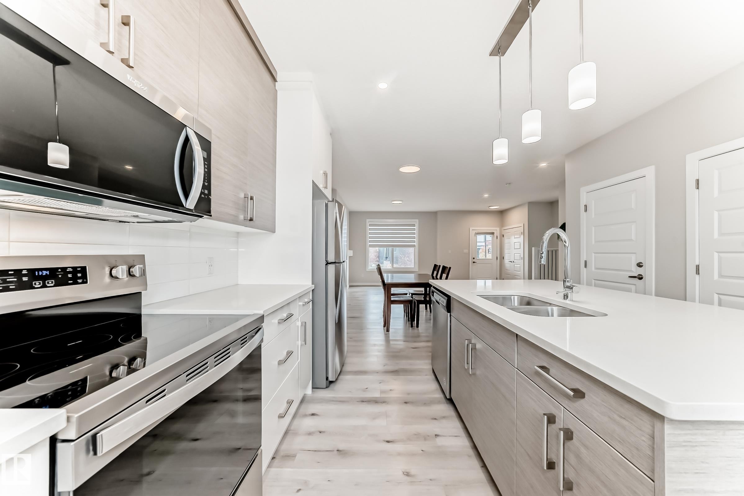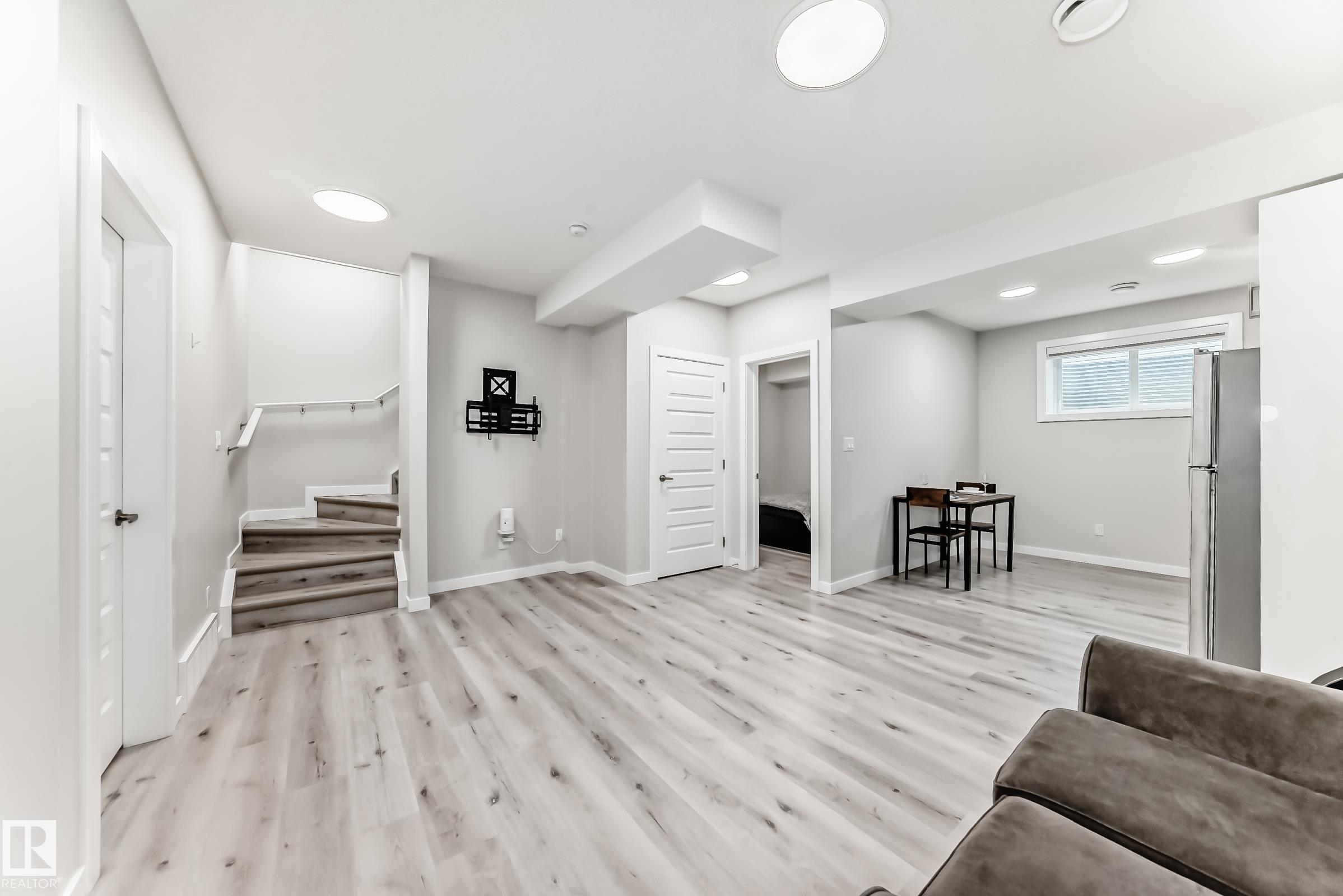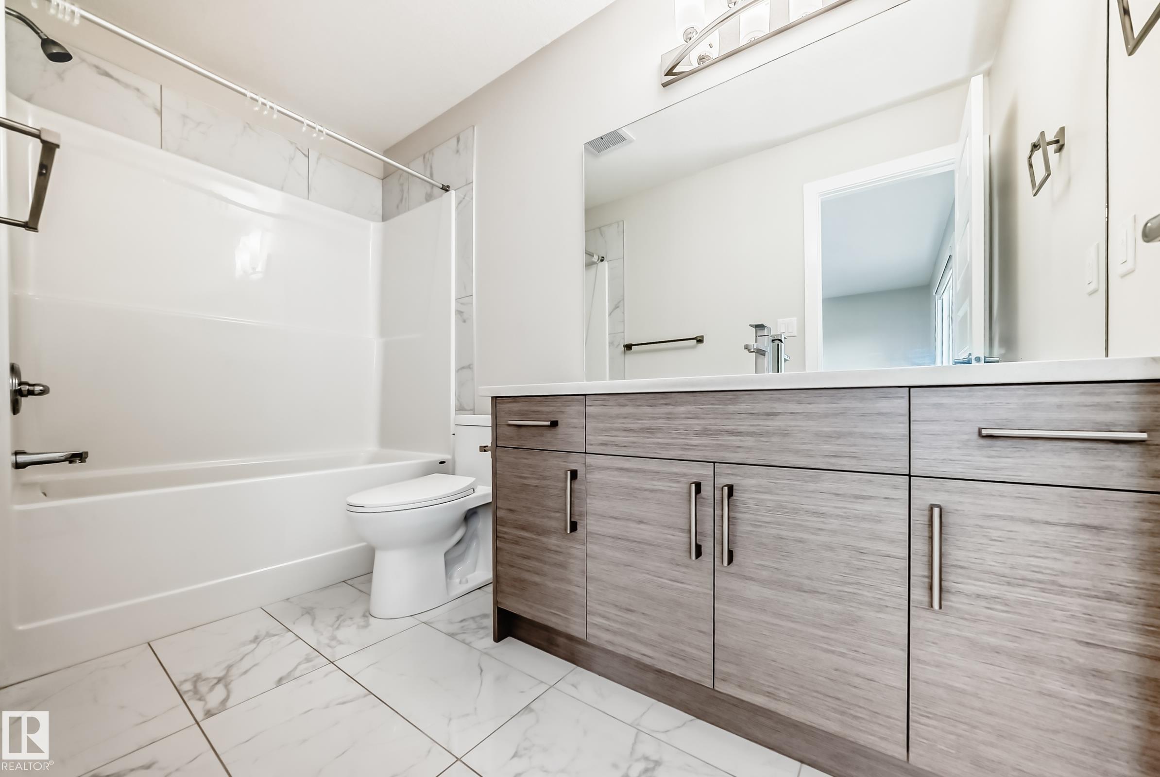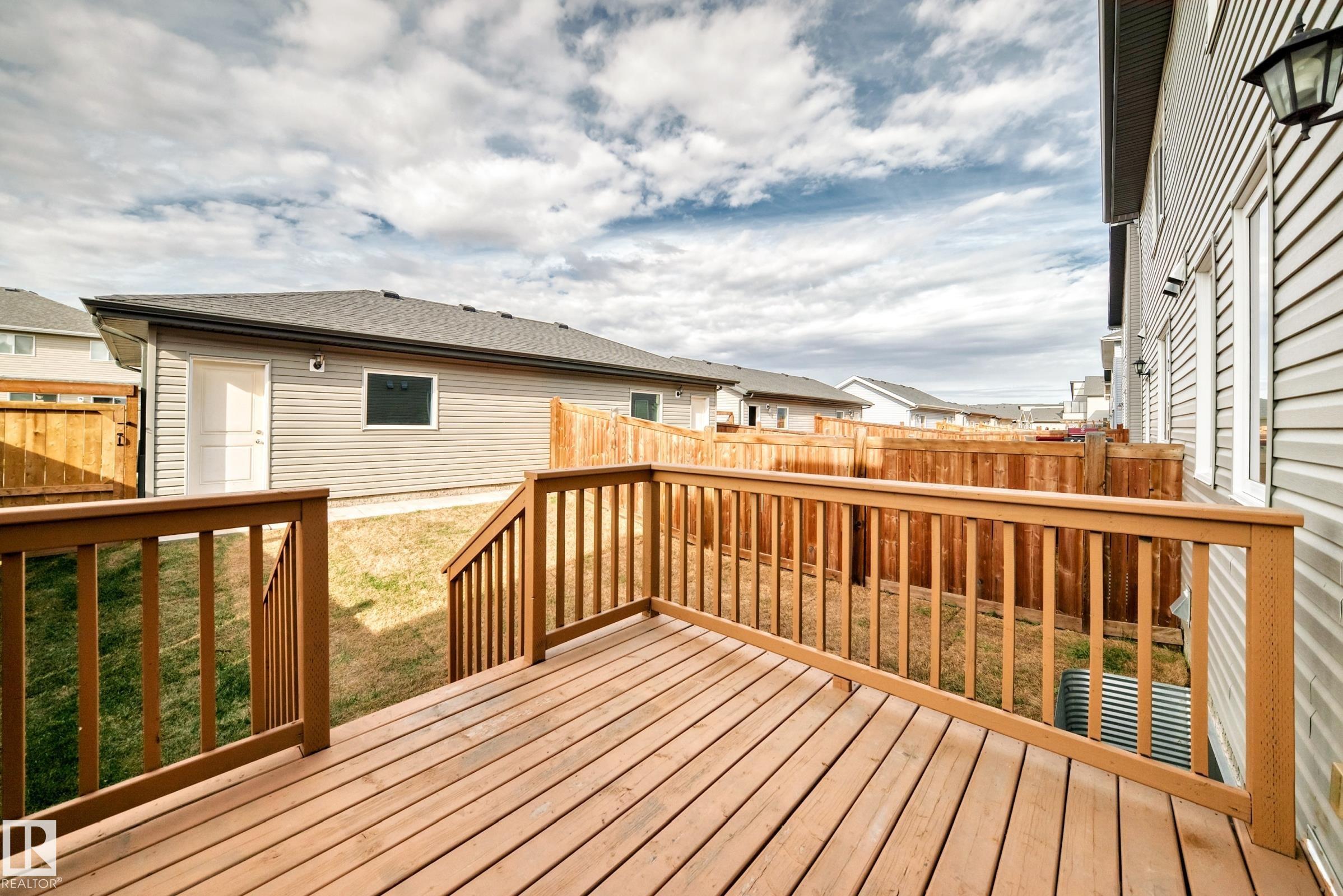 Versatile Half Duplex with Legal Suite in Chappelle! Welcome to this well-appointed 2-storey half duplex in the vibrant community of Chappelle. This home features a spacious 3-bedroom layout plus a 1-bedroom legal basement suite--ideal for extended family or rental income. The open concept main floor includes an electric fireplace, a large quartz island, and stainless steel appliances, including a brand new stove and microwave hood fan. Upstairs offers 3 bedrooms, 2 full baths, and convenient laundry. The primary bedroom boasts a 4-piece ensuite and walk-in closet. The legal basement suite includes its own kitchen with quartz counters, stainless steel appliances, separate laundry, and a 4-piece bath. Enjoy a double detached garage, deck, and a fenced, landscaped yard. Located near shopping, schools, parks, trails, Jagare Ridge Golf, Terwillegar Rec Centre, and the future Capital Line South LRT.