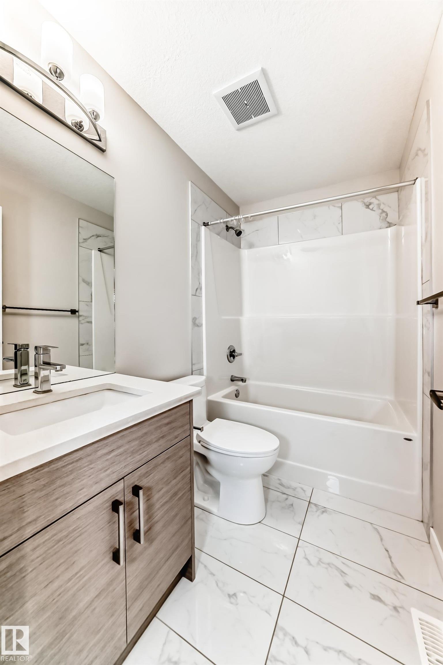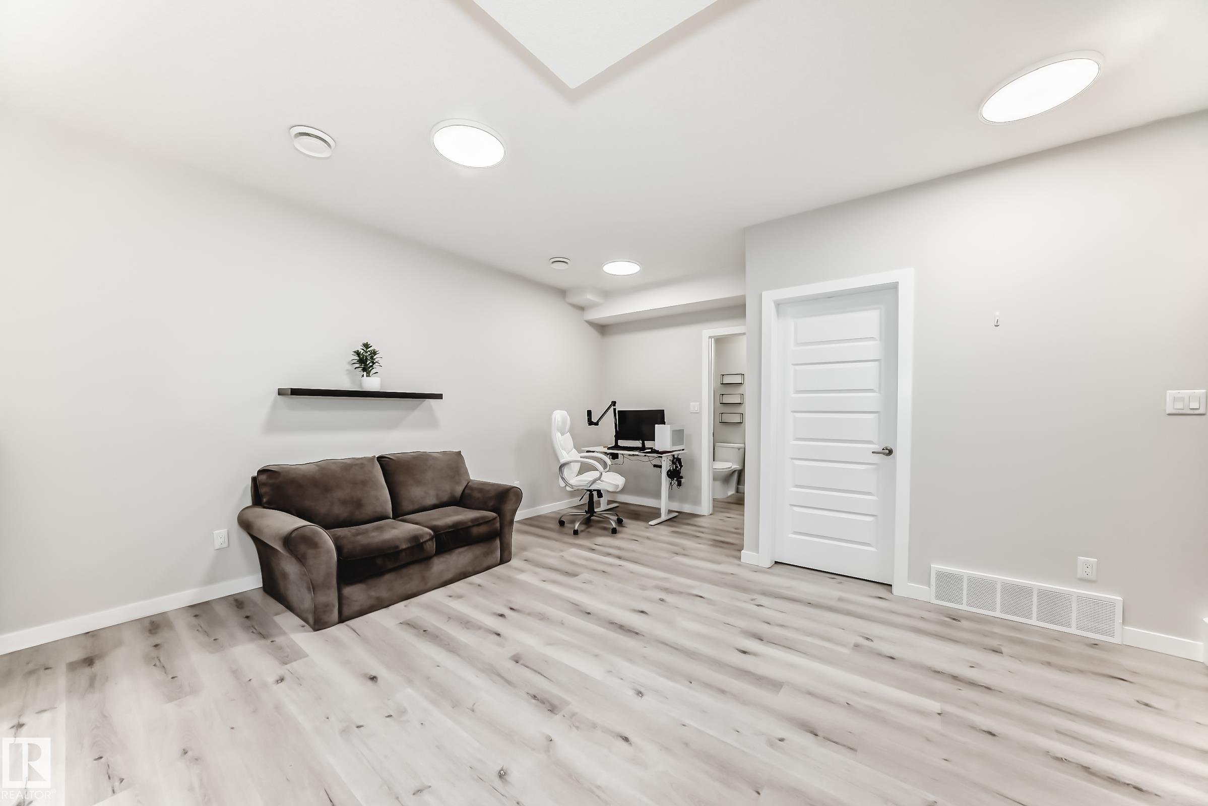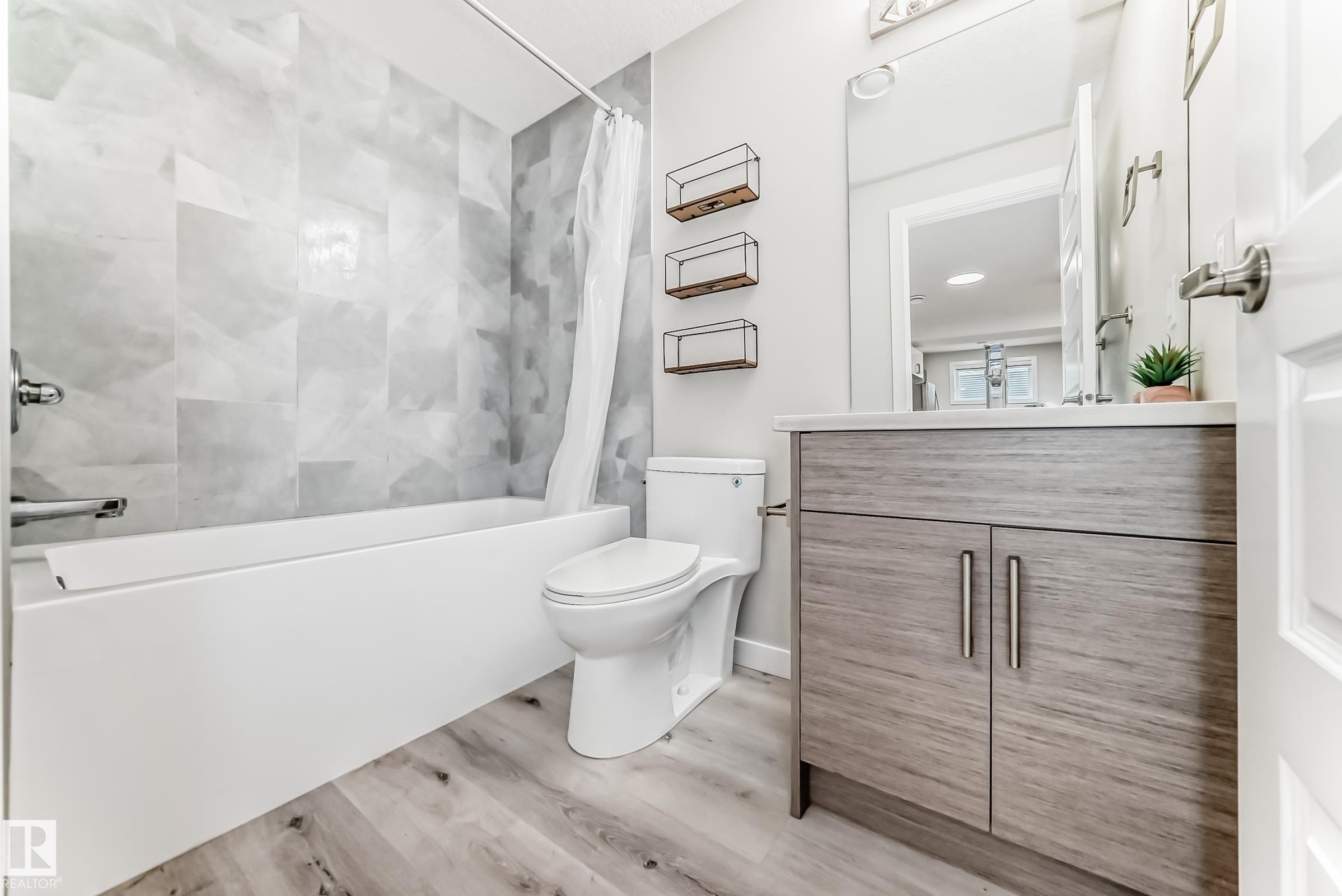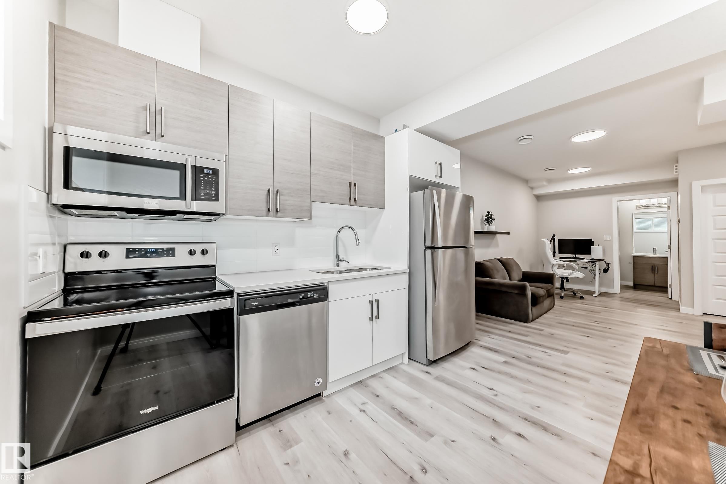 Versatile Half Duplex with Legal Suite in Chappelle! Welcome to this well-appointed 2-storey half duplex in the vibrant community of Chappelle. This home features a spacious 3-bedroom layout plus a 1-bedroom legal basement suite--ideal for extended family or rental income. The open concept main floor includes an electric fireplace, a large quartz island, and stainless steel appliances, including a brand new stove and microwave hood fan. Upstairs offers 3 bedrooms, 2 full baths, and convenient laundry. The primary bedroom boasts a 4-piece ensuite and walk-in closet. The legal basement suite includes its own kitchen with quartz counters, stainless steel appliances, separate laundry, and a 4-piece bath. Enjoy a double detached garage, deck, and a fenced, landscaped yard. Located near shopping, schools, parks, trails, Jagare Ridge Golf, Terwillegar Rec Centre, and the future Capital Line South LRT.