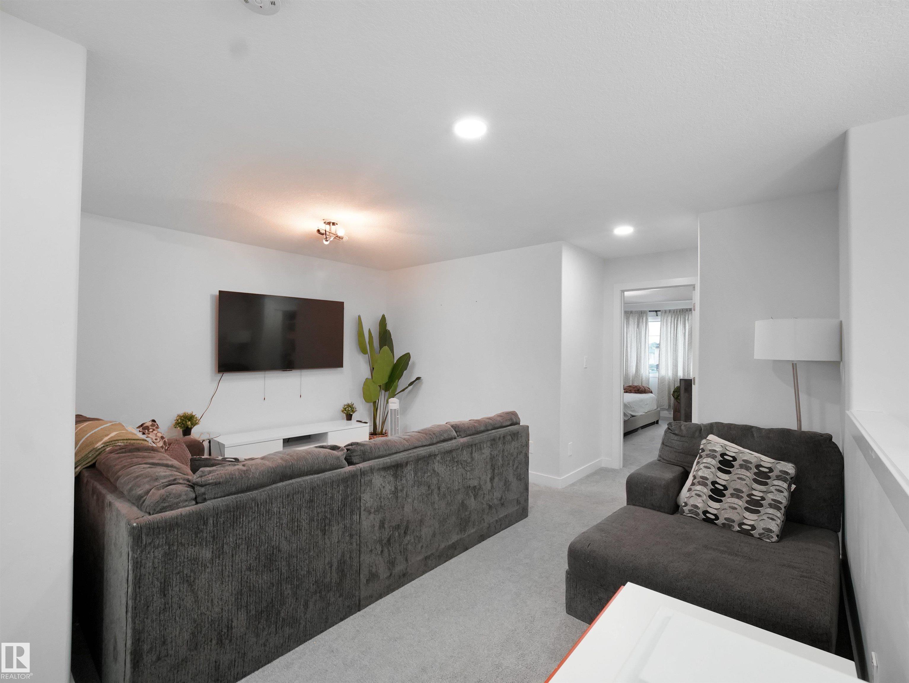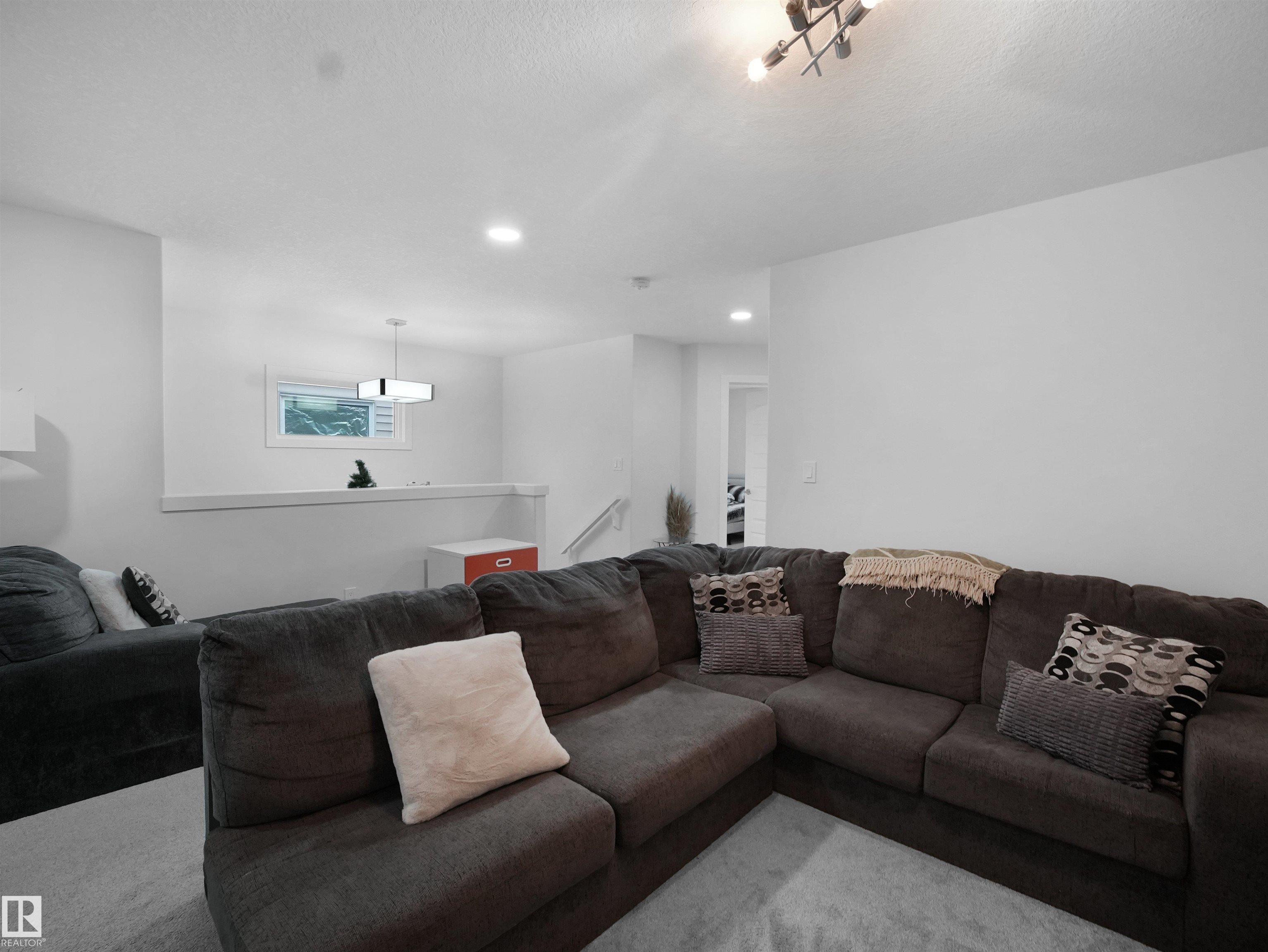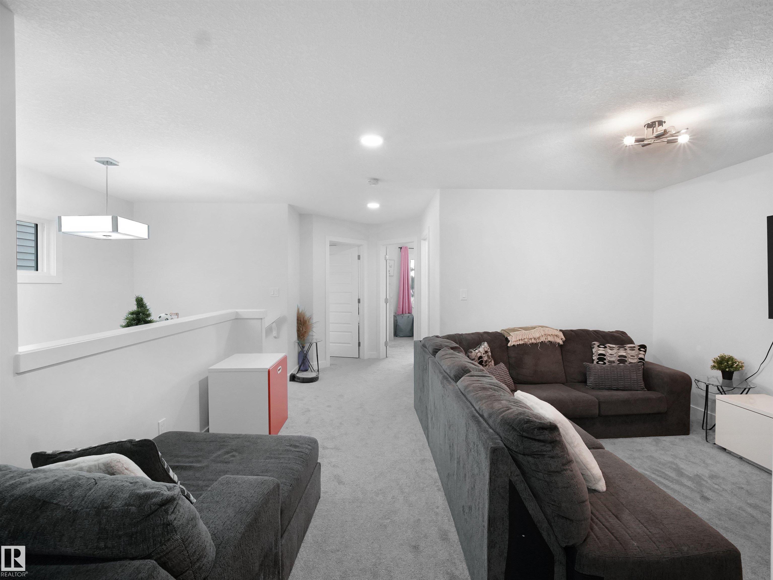 Discover this striking 2020-built duplex in the vibrant Chappelle community -- boasting 9-ft ceilings on the main floor and a two-car garage. The main level presents a bright living area with large windows and an electric fireplace with elegant mantel, flowing into a designer kitchen featuring quartz countertops, a striking tile backsplash, stainless-steel appliances, a corner pantry, centre island and built-in microwave. The adjoining dining area looks out to the backyard, creating a seamless indoor-outdoor feel. A convenient powder room completes the main floor. Upstairs you'll find the master retreat with a luxurious 5-piece ensuite and walk-in closet, plus two additional nicely sized bedrooms, a 4-piece bath, laundry room and a bonus room that strategically separates the master from the other bedrooms. The fully finished basement with separate entrance adds flexibility -- offering a large bedroom, a 4-piece bath and a rec room ideal for family or multi-gen use. Located in a community rich in amenities.