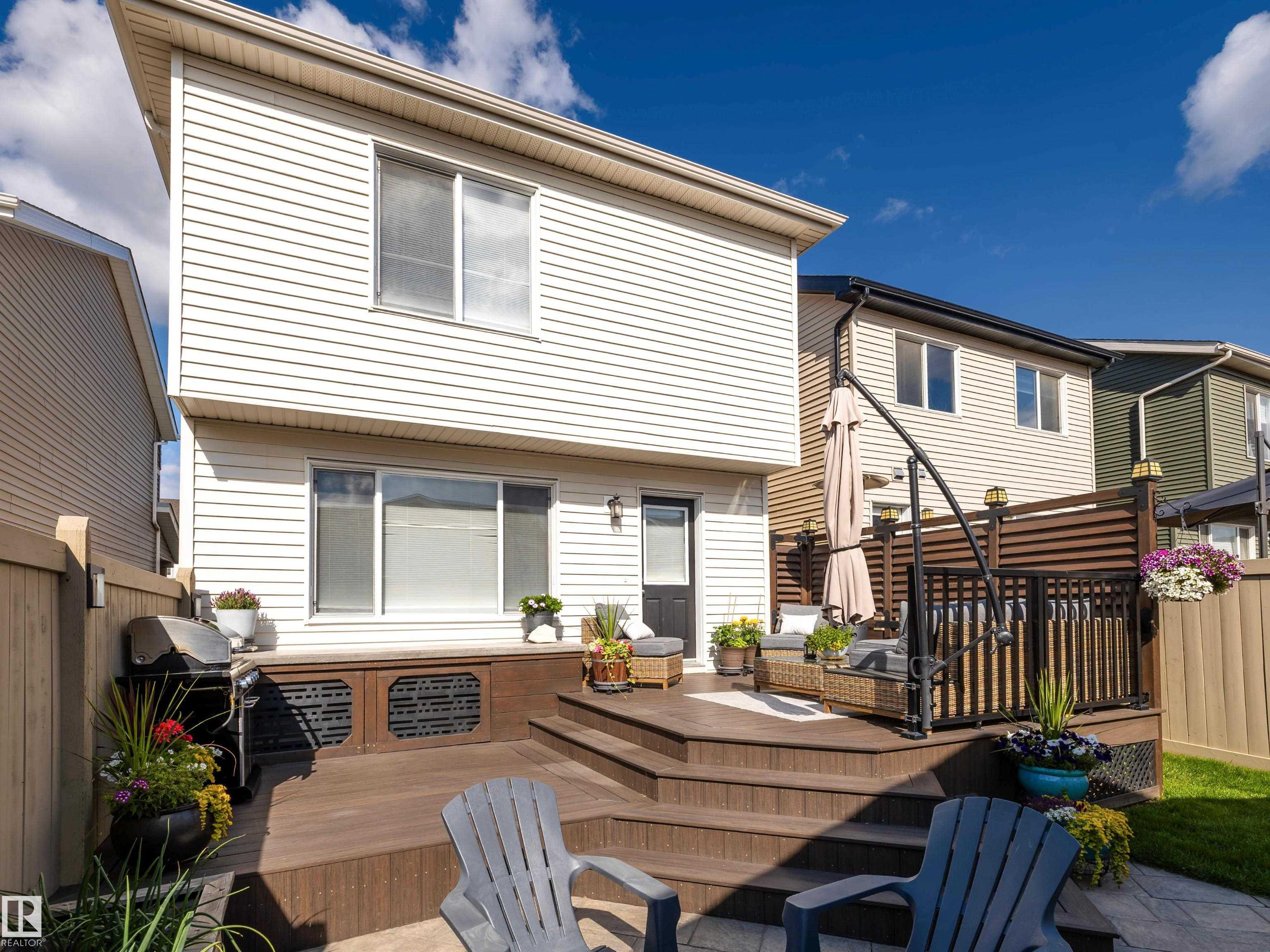 Welcome to 1267 Chappelle Blvd in the heart of the vibrant Chappelle community in SW Edmonton. Offering just over 2,370 sq.ft. of living space across three levels, this home delivers exceptional value with extensive upgrades, including a fully developed basement, renovated laundry room, and insulated, heated double detached garage. The bright open-concept main floor features a stylish kitchen with SS appliances, ample cabinetry, dining area, and a half bath. Upstairs offers a spacious primary bedroom with walk-in closet and spa-like 5-piece ensuite, plus two additional bedrooms, a full bath, and upper-level laundry. The finished basement adds a flex room, full bathroom, recreation area, and storage. Enjoy central A/C (2022), a composite deck, expanded patio, fire pit, and a fully fenced landscaped yard. Conveniently located near schools, shopping, and Community League amenities including a splash park, rink, and year-round events. Move-in ready and ideal for those seeking lifestyle & community.