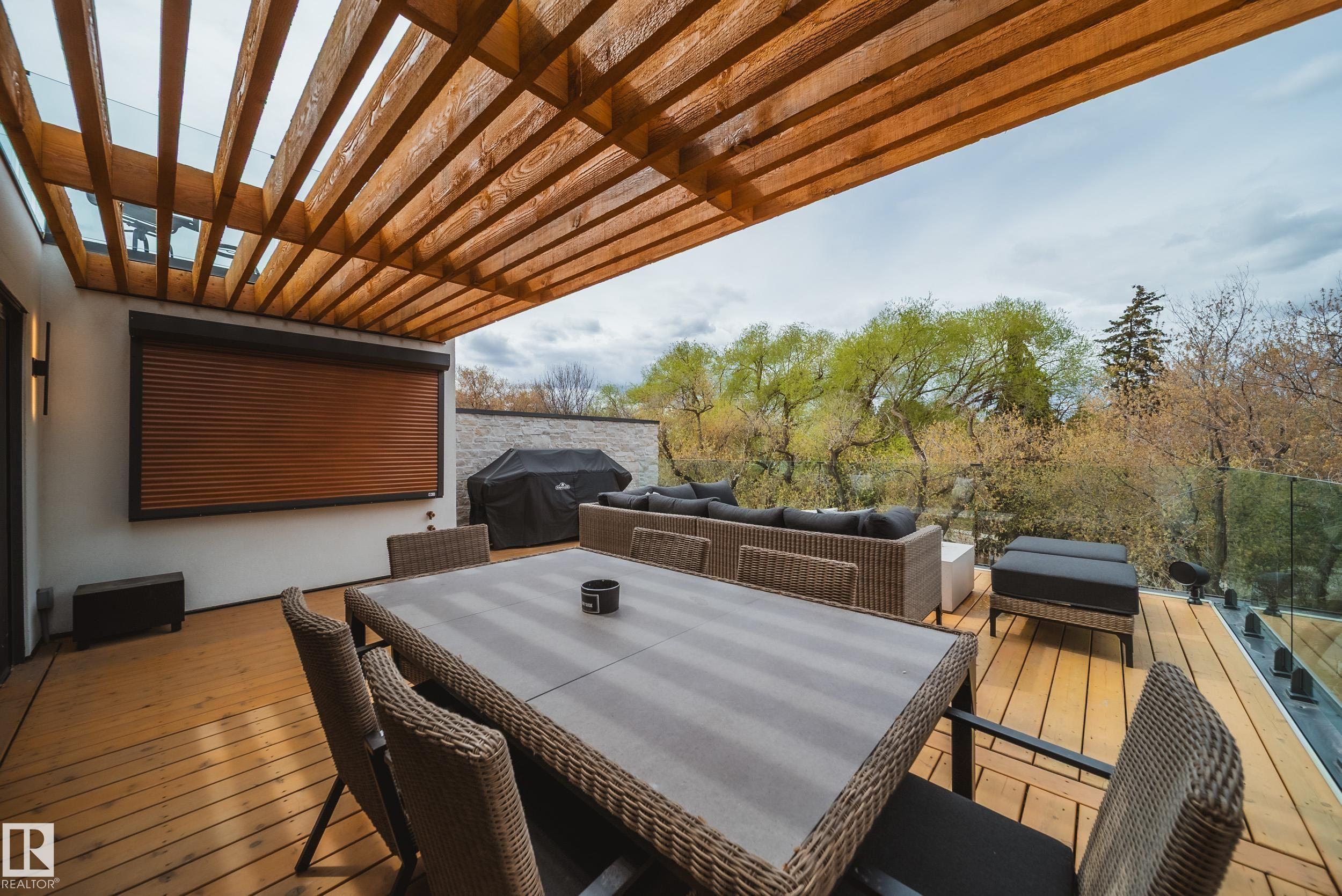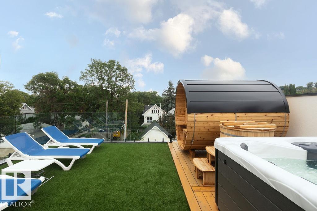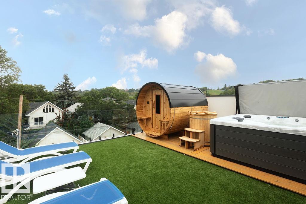 Introducing the 2024/2025 CHBA Home of the Year! A true architectural masterpiece built by Justin Gray Homes offering over 5,000 sqft of luxury across 5 levels. Features 6 bedrooms, 6.5 baths, private office, & 4 rooftop patios w/ 360ø river valley & downtown skyline views. Built w/ commercial-grade steel beam construction, 10' ceilings, floor-to-ceiling windows, hardwood throughout, 2 gas fireplaces, chef's kitchen includes Wolf/Subzero appliances, upgraded cabinetry, & a hidden butler's pantry. The primary retreat offers a lounge, gas fireplace, & spa-inspired ensuite w/ steam shower & freestanding tub. 3rd floor rooftop Nordic spa w/hot tub, cold plunge, sauna, & steam shower, theatre & bar. FF basement featuring gym, bedrm & 5-car heated garage w/ epoxy floors & heated driveway. Also 2 self-contained one-bedroom income generating suites! Fully landscaped maintenance free yard w/ irrigation, smart home automation, outdoor TVs & fireplaces. Steps to Muttart, River Valley, Edmonton Ski Club & downtown!