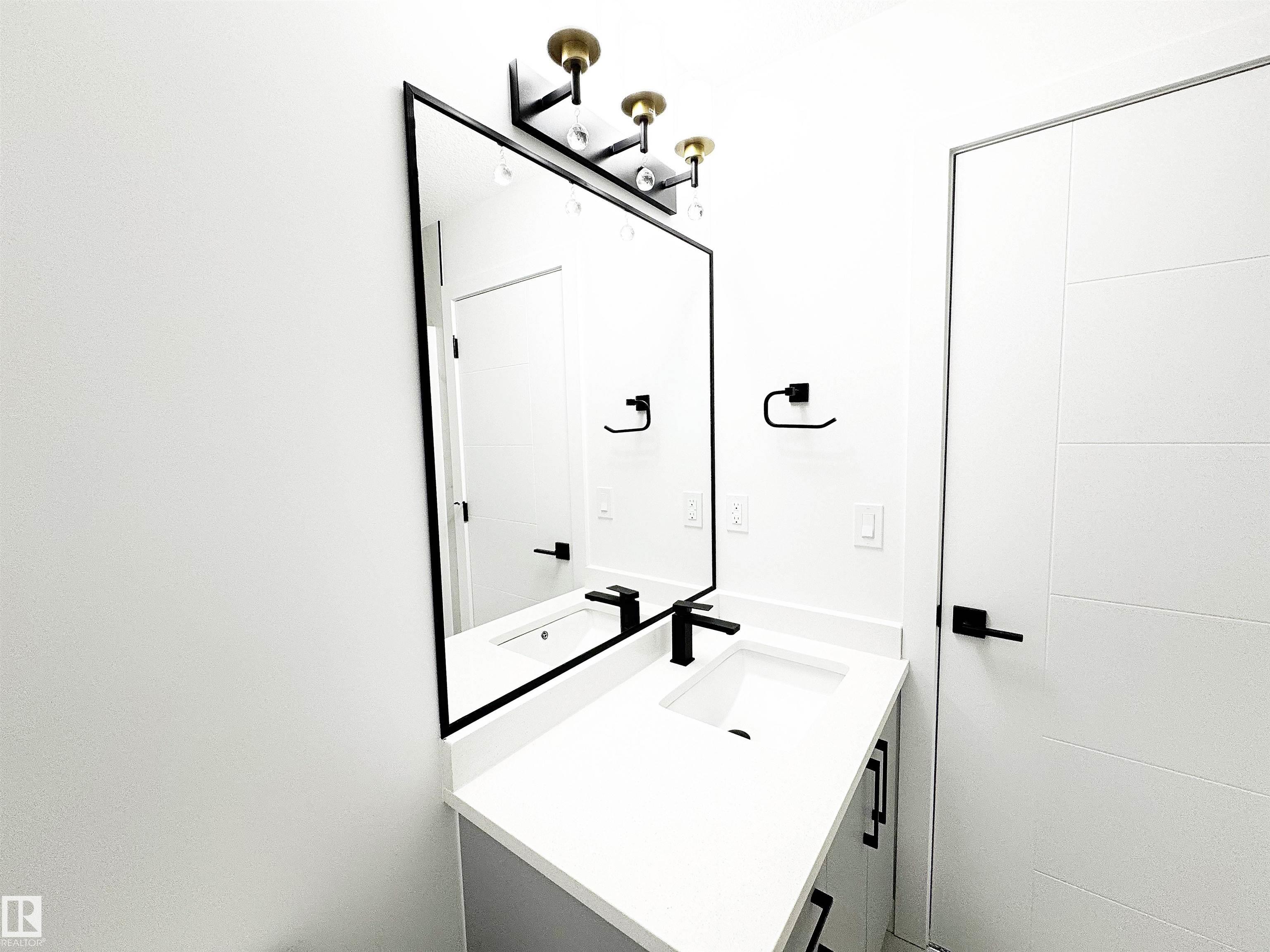 Stunning two-story duplex with LEGAL SECONDARY SUITE in the mature, family-friendly community of Crawford Plains, close to schools, parks, shopping, and transit. Offering approx. 2,400 sq. ft. on 3 levels, this property features 5 bedrooms and 3.5 bathrooms--ideal for investors or multi-generational living. The main floor includes a bright living room with an electric fireplace, access to a sun deck, and a stylish European-inspired kitchen with quartz countertops, ample cabinetry, and a spacious dining area. Upstairs offers a primary bedroom with an ensuite and a walk-in closet, two additional bedrooms, a bonus room, a full bath, and a laundry with a sink. The legal basement suite with a separate entrance features 2 bedrooms, a kitchen, a living area, a full bath, and its own laundry, providing excellent rental income potential. Modern exterior with vinyl & smart board siding, double attached garage, and an impressive 8' front door with sidelights complete this fantastic opportunity. A Super 10! Hurry!