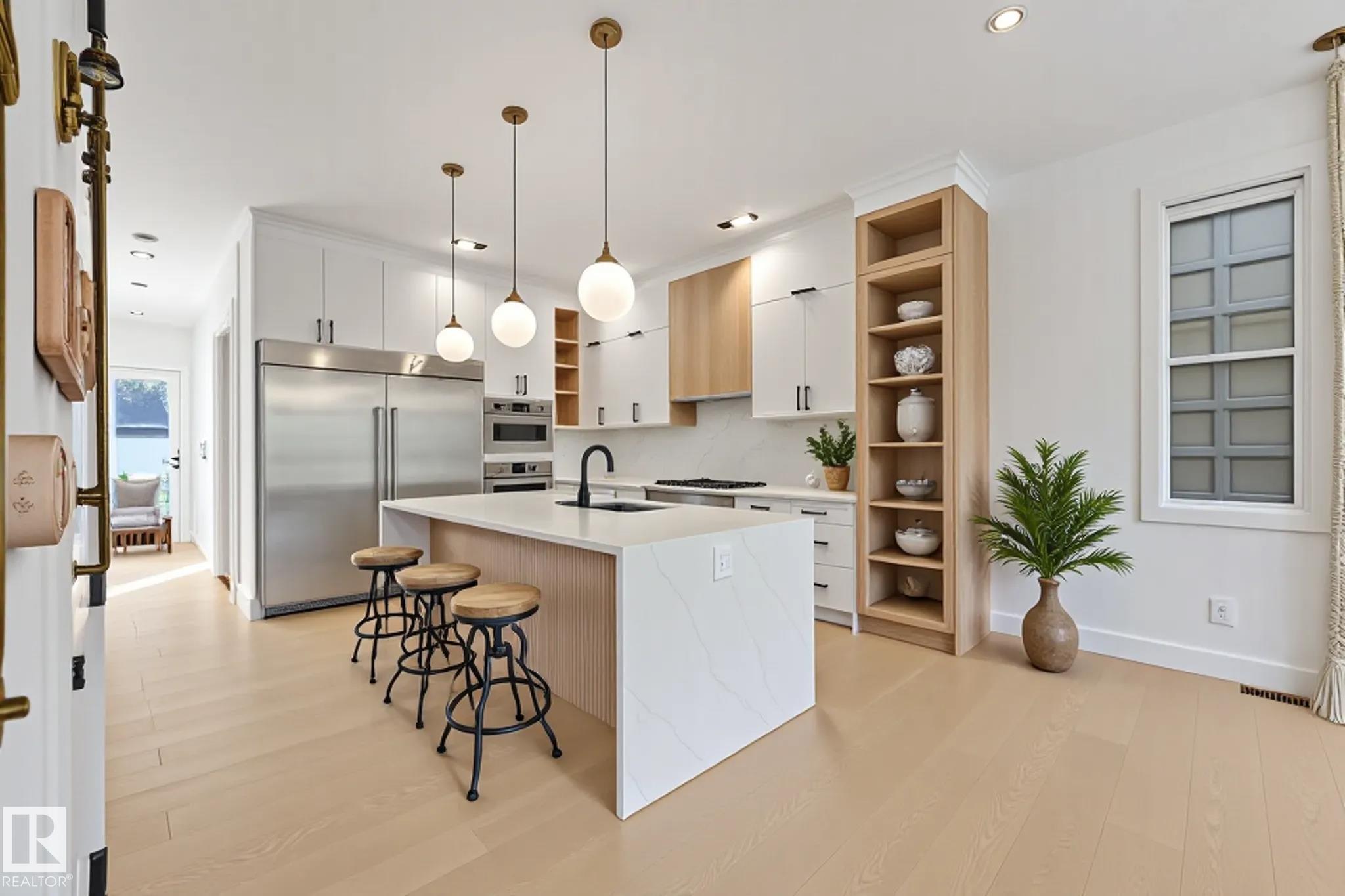 Live in Luxury in Prestigious Crestwood!!! Step into timeless elegance with this brand-new custom two-storey home, where thoughtful design meets modern sophistication. The 10-ft main floor ceilings and engineered hardwood floors create a grand, inviting space featuring a sunlit living room, chef-inspired kitchen with quartz waterfall island, walk-in pantry, wet bar with wine fridge, full bath, and guest bedroom. Upstairs, retreat to your primary sanctuary with a 5-piece spa ensuite with heated floors and a Jacuzzi tub, plus a walk-in closet, two bedrooms, a bonus room, and laundry. Every detail reflects craftsmanship -- triple-pane windows, acrylic stucco, customer closets, high-quality glass railings, Riobel faucets, and designer lighting. The 2-bedroom legal basement suite adds income or family flexibility. With an oversized garage and premium finishes, this home defines modern luxury in Edmonton's most coveted community!!!