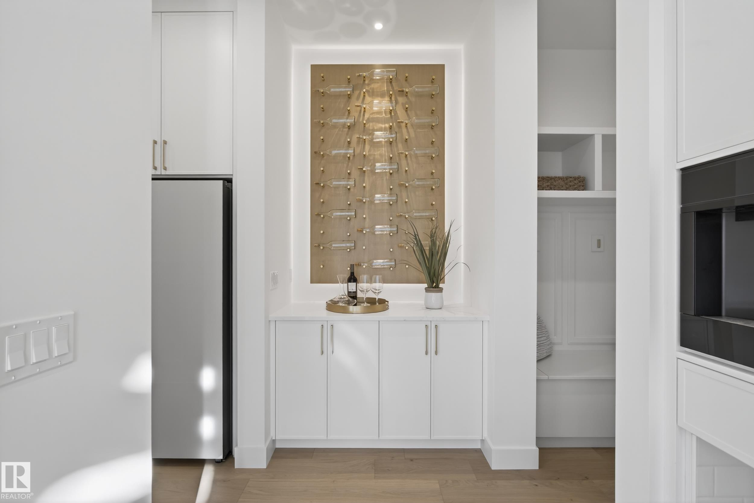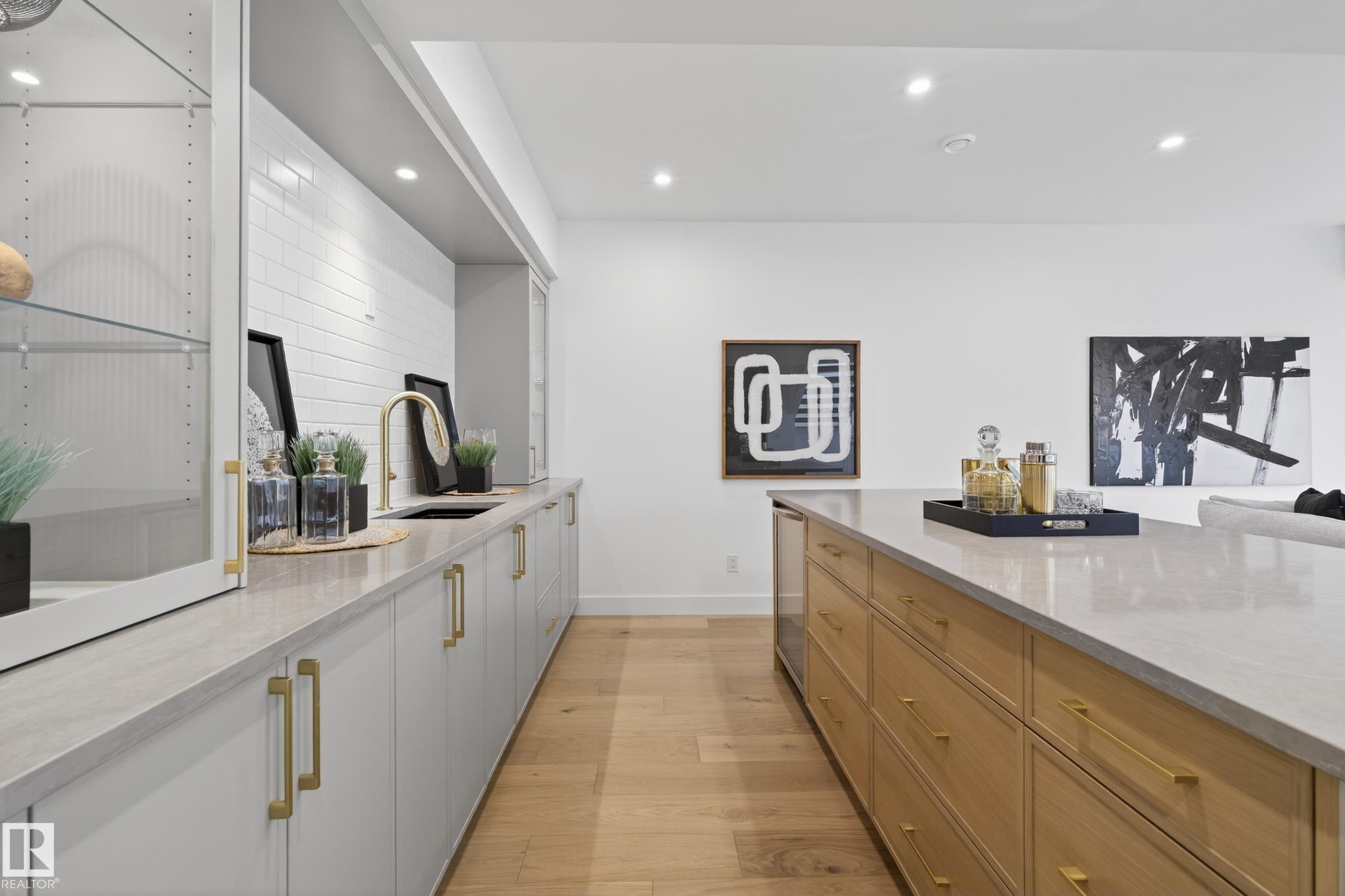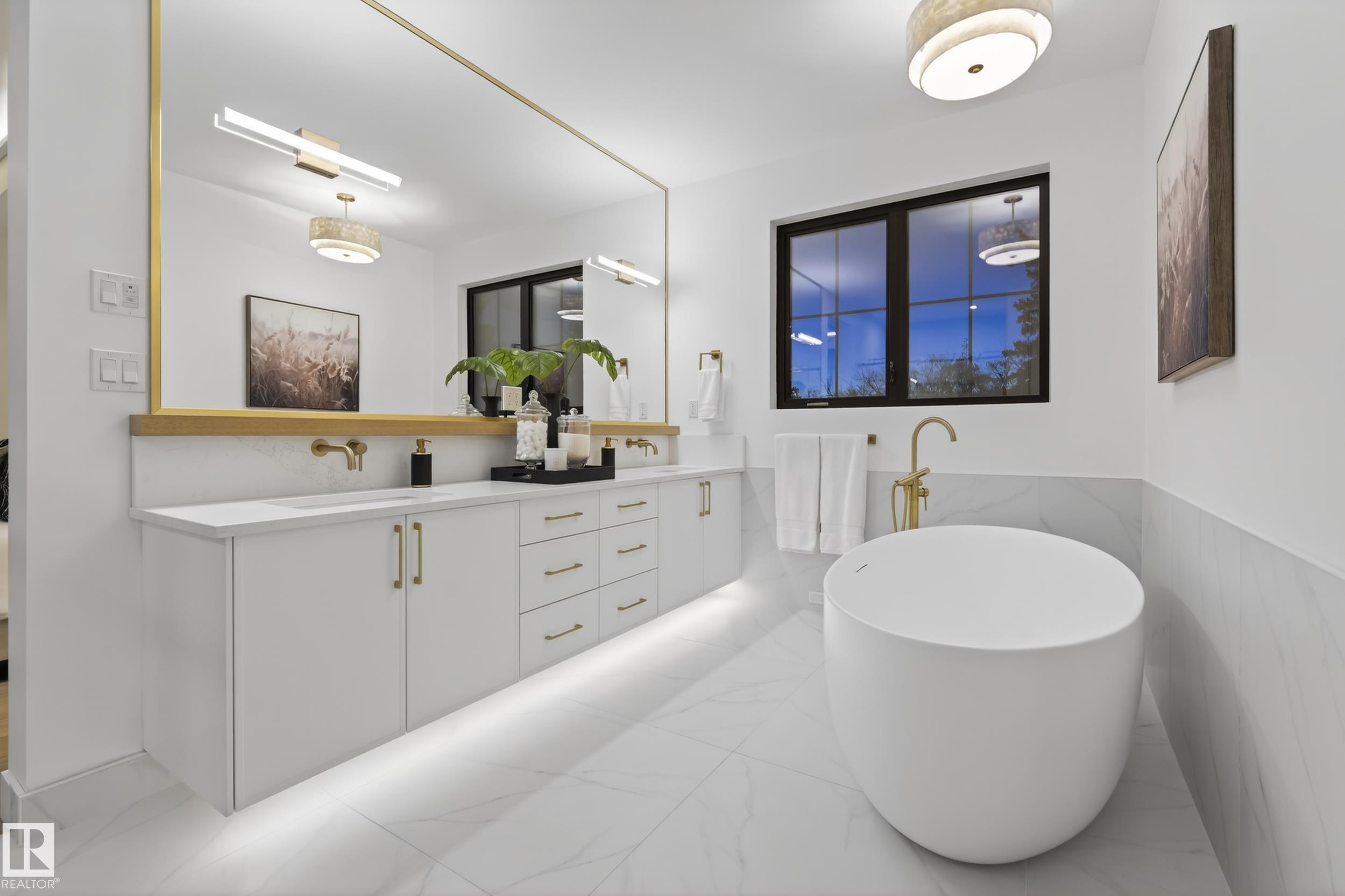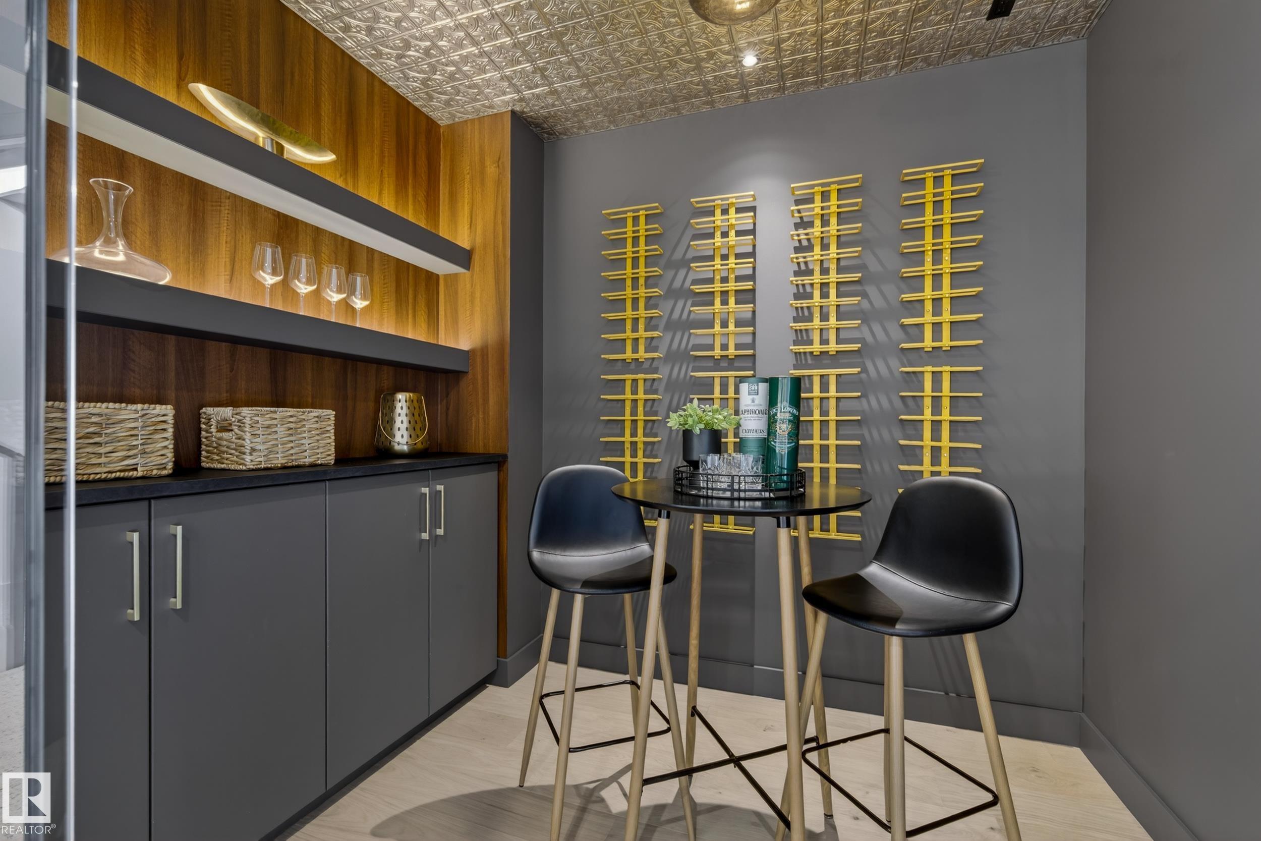 Architecturally striking luxury residence by Evolution Custom Homes showcasing refined design and exceptional craftsmanship throughout. Dramatic 10 ft ceilings, an open rise feature staircase, solid core 8 ft doors, drywall window returns and a statement 48 inch gas fireplace create an elevated main living experience. The chef's kitchen features white oak custom cabinetry, a premium JennAir and Miele integrated appliance package, a 14 ft dual waterfall island, full height quartz backsplash, butler's pantry and built in coffee station. A rare fumoir (cigar and brandy room) is professionally vented and roughed in for a humidor. The oversized heated garage is designed for enthusiasts with car lift capability, EV charging, workshop space, custom storage and hot and cold taps. Two private rooftop terraces offer integrated lighting plus gas and water rough ins, ideal for entertaining. A truly, one of a kind property in Edmonton's most elite, river-valley neighbourhoods.