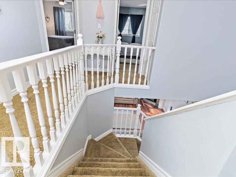 Charming and well cared for 2 Storey home with 3 + 1 bedrooms and 3 bathrooms. This property has many features as you walk through the door, the entrance has a cathedral ceiling and ceramic flooring leading to cozy livingroom with Brazilian hardwood flooring, gas fireplace - tile surround, the bright open kitchen has ample cupboard and counter top space, gas stove, newer built in dishwasher and fridge (2022) and convenient breakfast bar. Mainfloor laundry washer/dryer purchased in 2023 and 2 piece bathroom. Three generous size bedroom upstairs, master bedroom has with walk in closet and 4 piece ensuite renovated in 2020. The basement is fully finished with updated carpeting (2020), an additional bedroom and rec room. Enjoy the fully fenced private backyard with a beautiful 2 tiered aggregate patio. Roof, Furnace and Central Air-Conditioning replaced (2018), Hot Water Tank (2022) and Garage Opener (2023). Come see this beautiful home today!