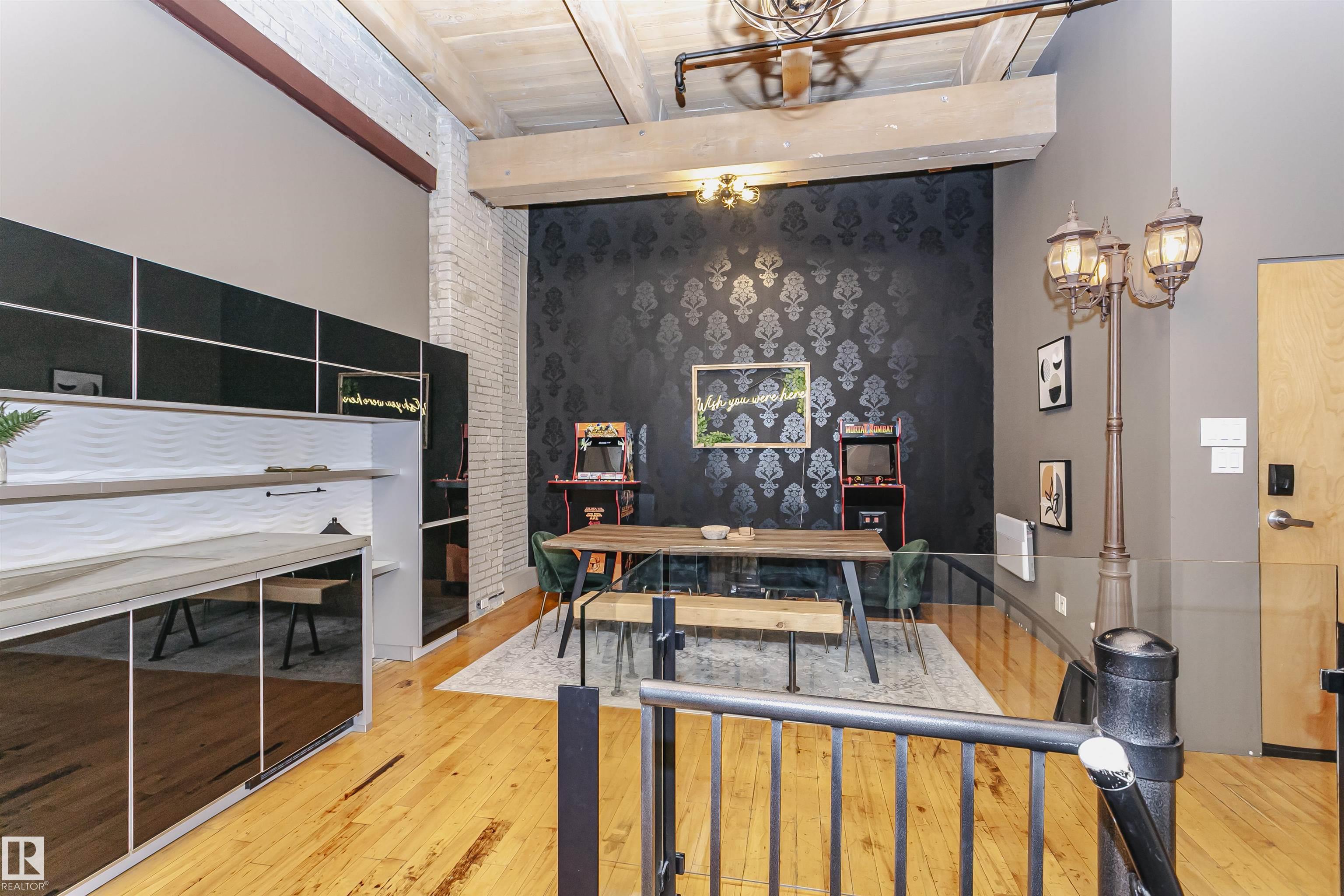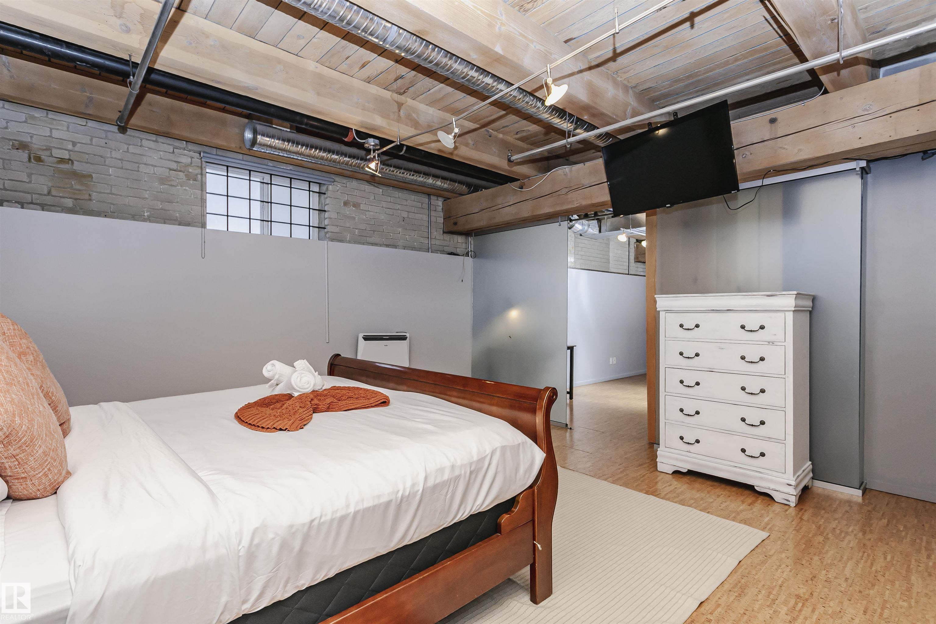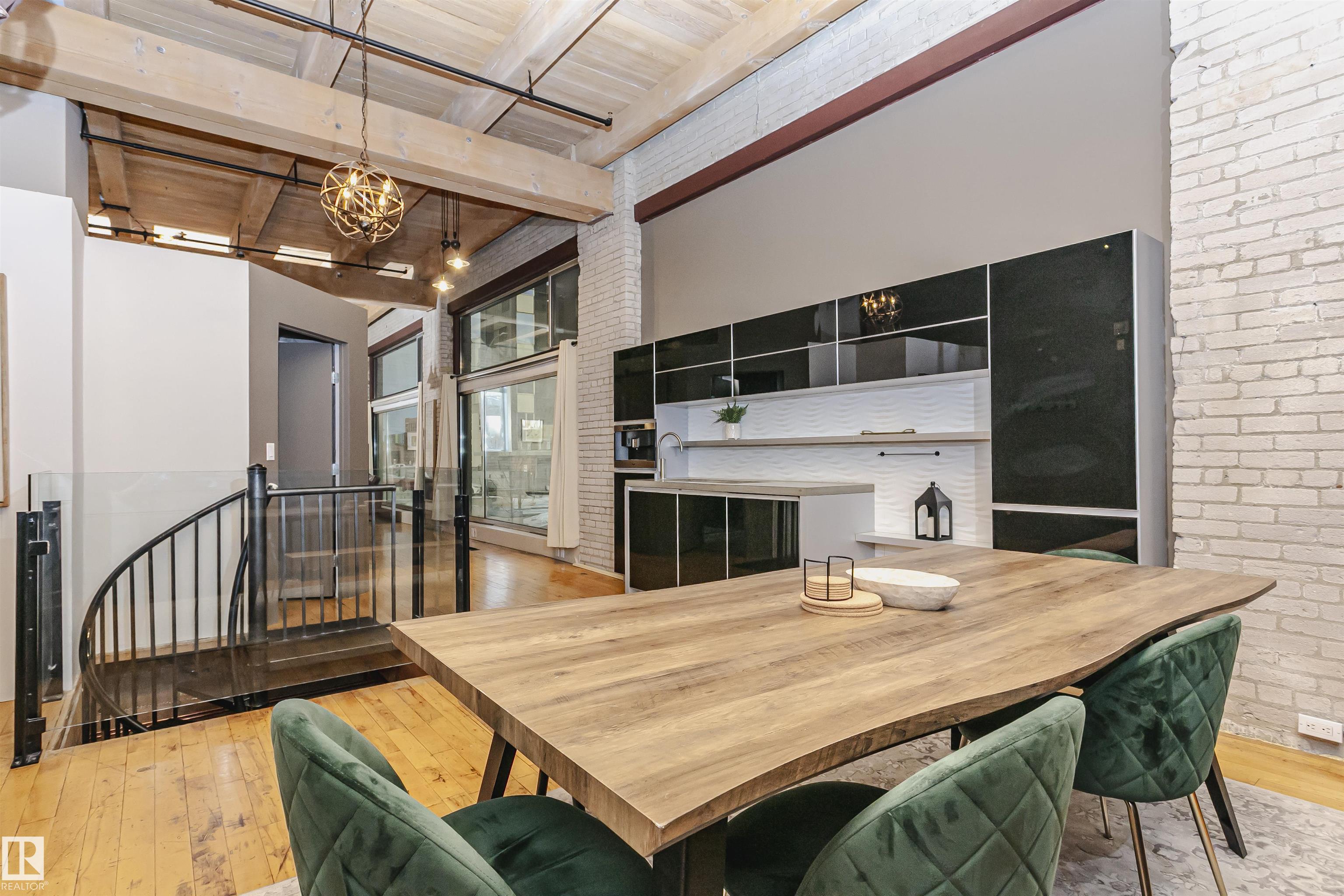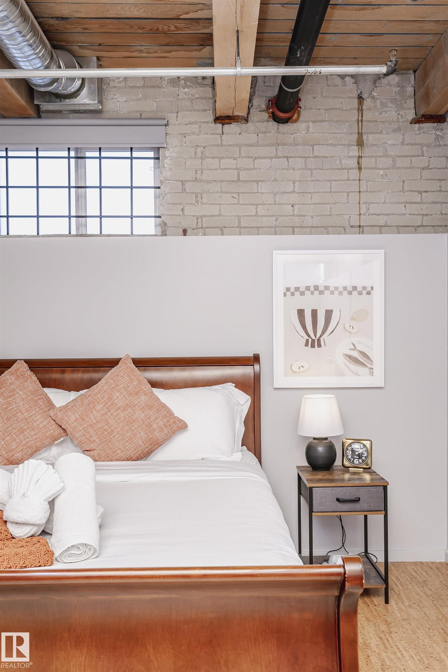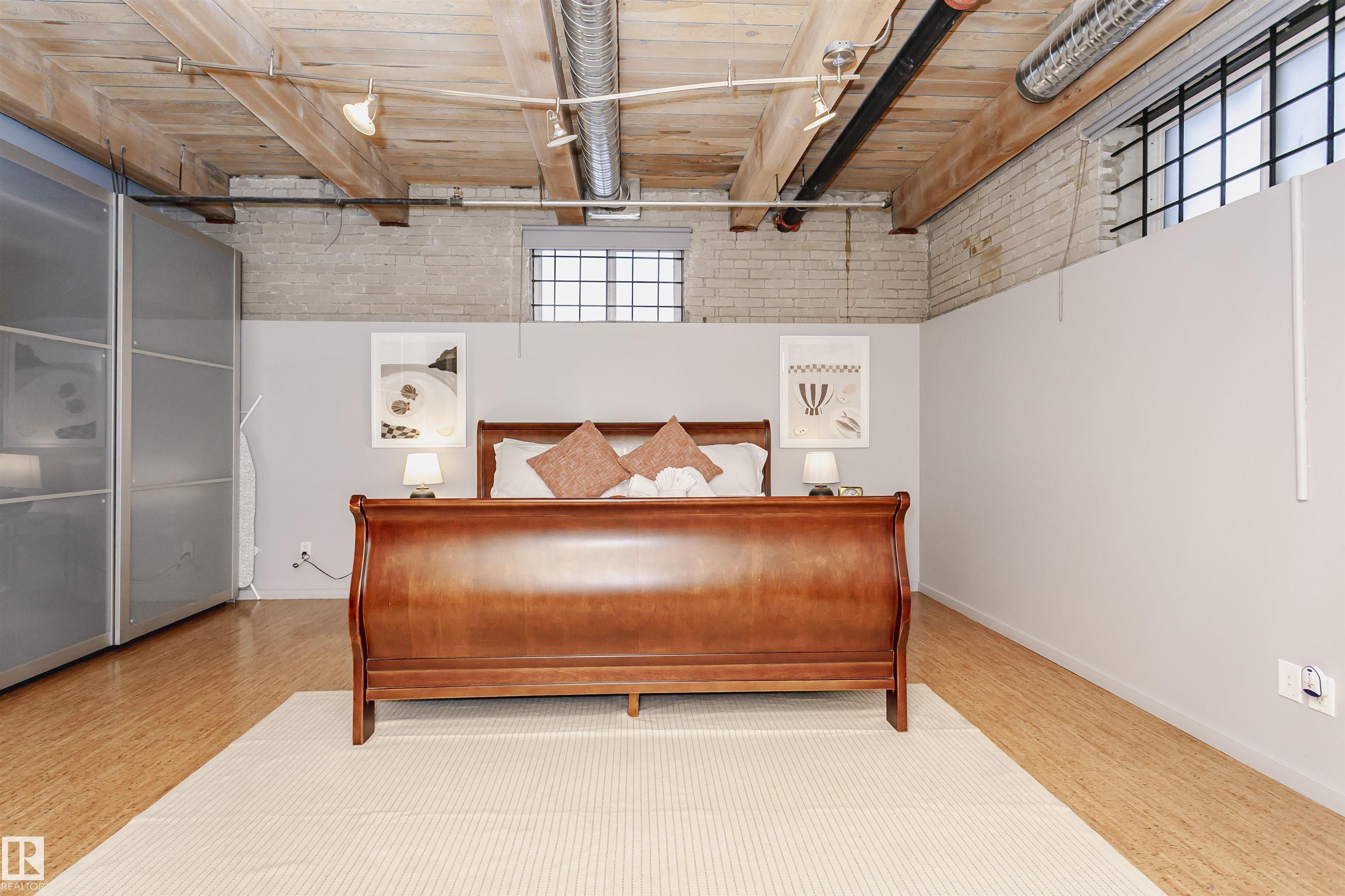 HERITAGE MEETS MODERN IN THE ICONIC JOHN DEERE SEVENTH STREET LOFTS! Discover a rare blend of Edmonton history and contemporary design in this stunning loft, set within the heritage side of the historic John Deere Building--one of Downtown's most recognizable architectural conversions. If you're craving something truly unique, this urban sanctuary delivers. Spanning 1,776 sq. ft. over two dramatically designed levels, this loft embraces its industrial roots with exposed brick, original concrete elements, 13-foot ceilings, and beautiful hardwood floors. The spacious open layout features 2 bedrooms, 2 full bathrooms, and in-suite laundry, all wrapped in authentic character you won't find in newer builds. The kitchen blends style with function, showcasing concrete countertops, modern cabinetry, and a layout perfect for entertaining. Enjoy the convenience and comfort of heated, secure underground parking--a must in downtown living. Located steps from Rogers Place, Ice District, and Farmers Market. WELCOME HOME.