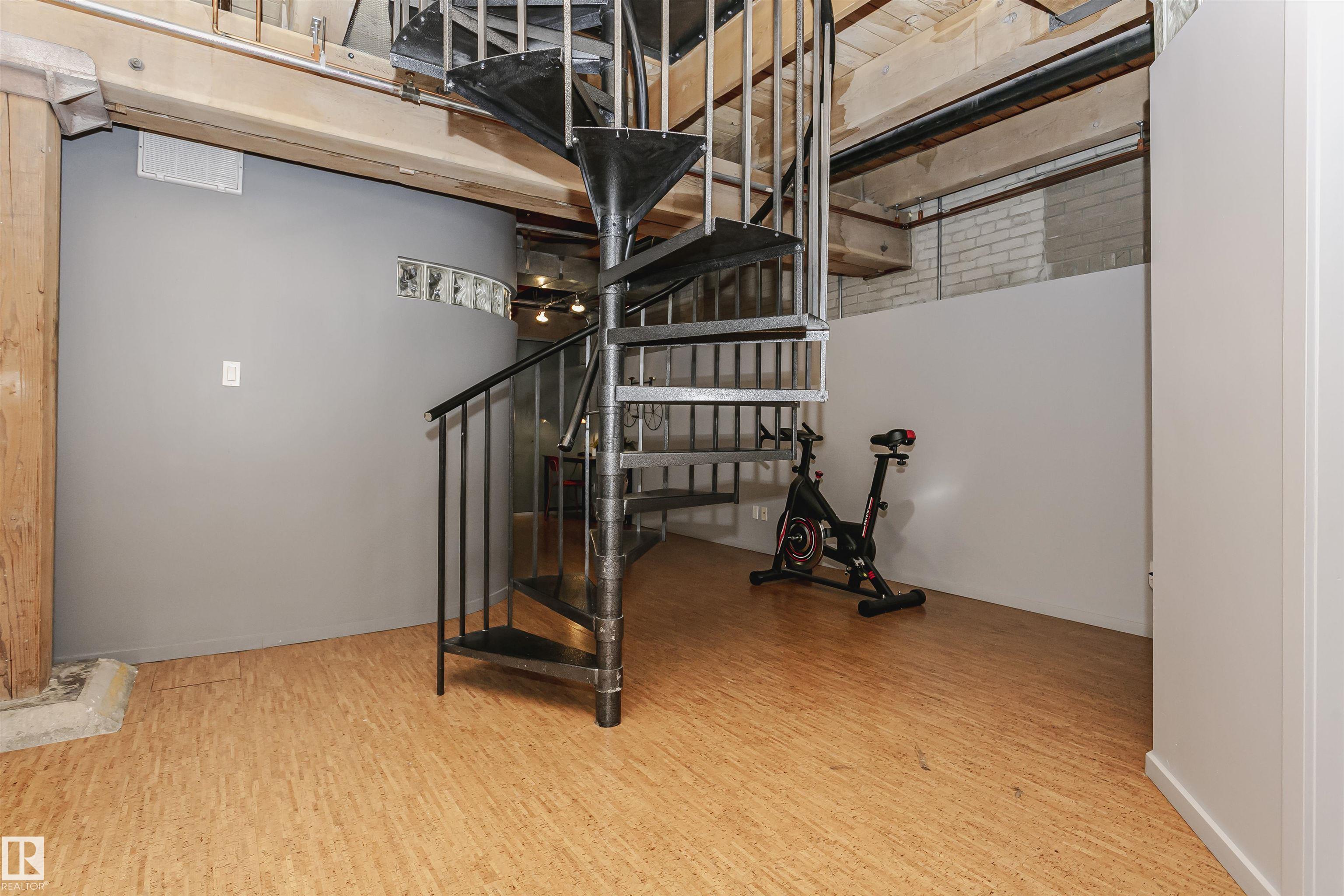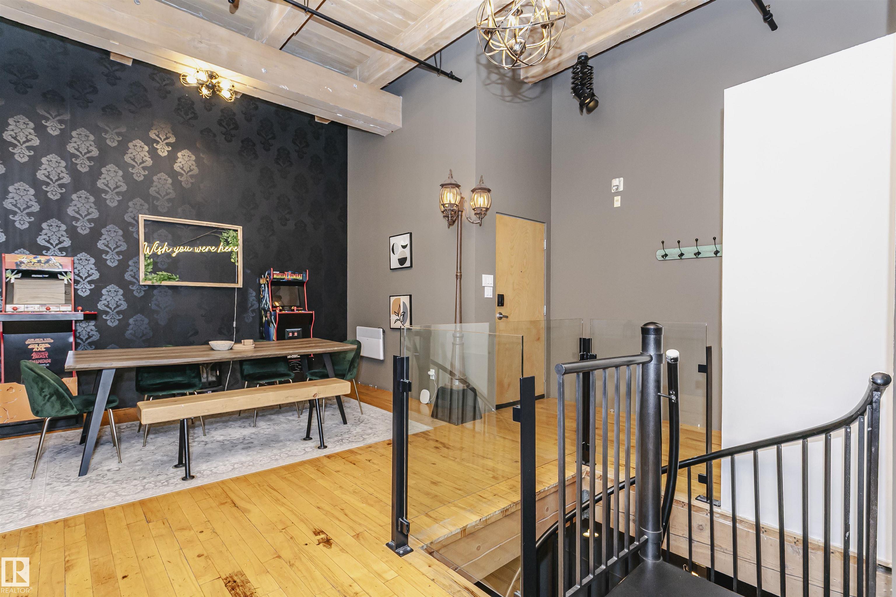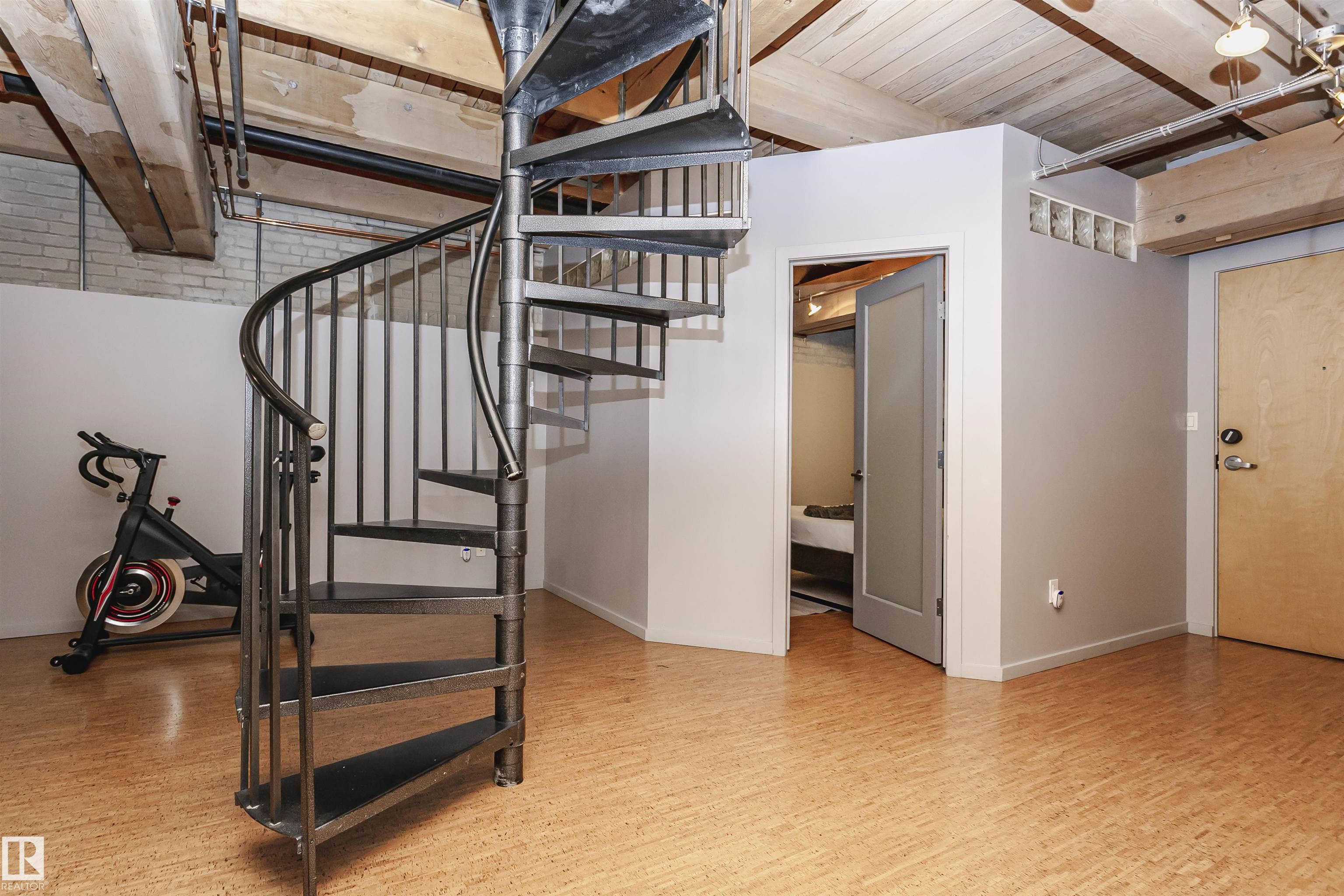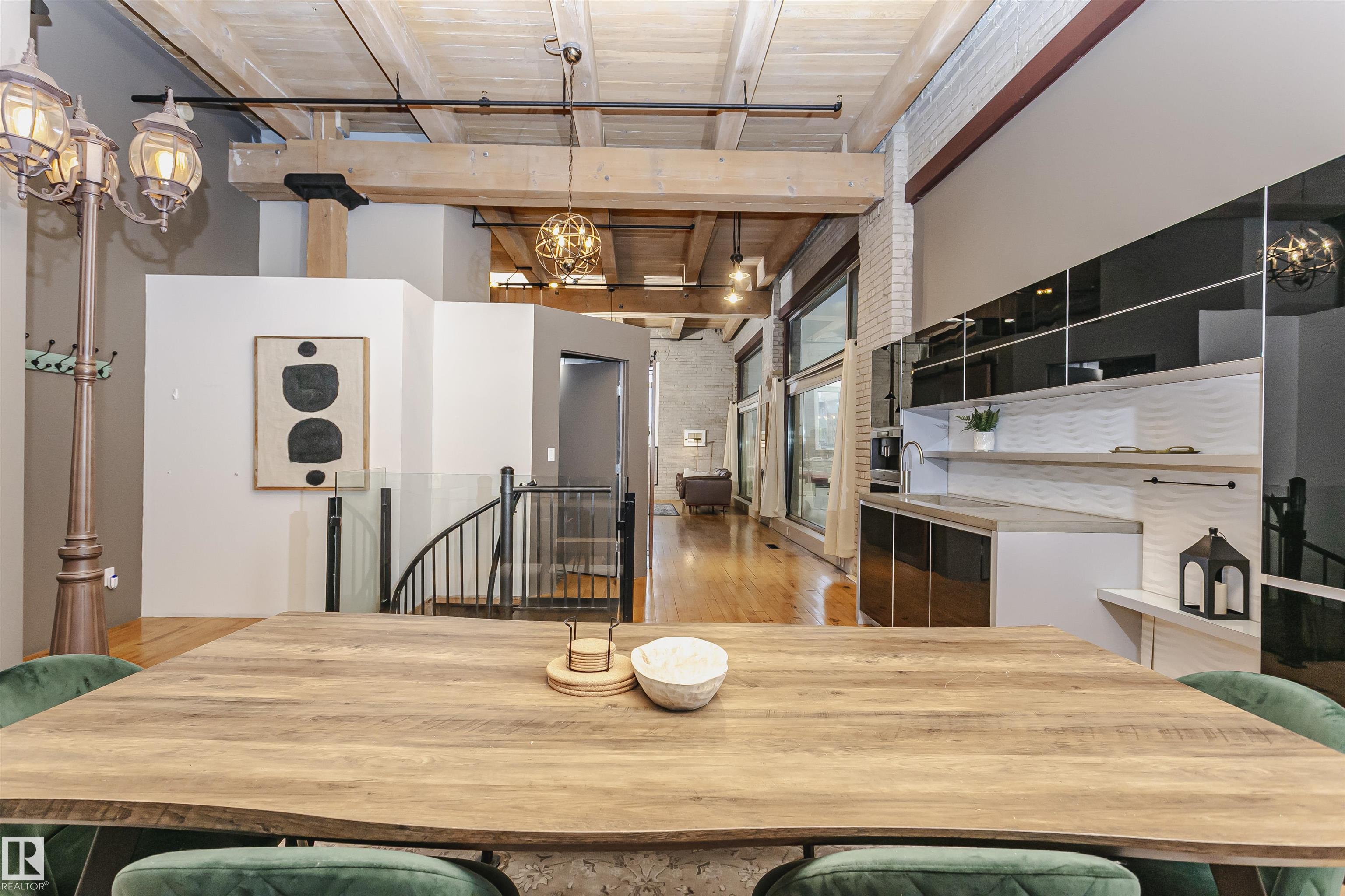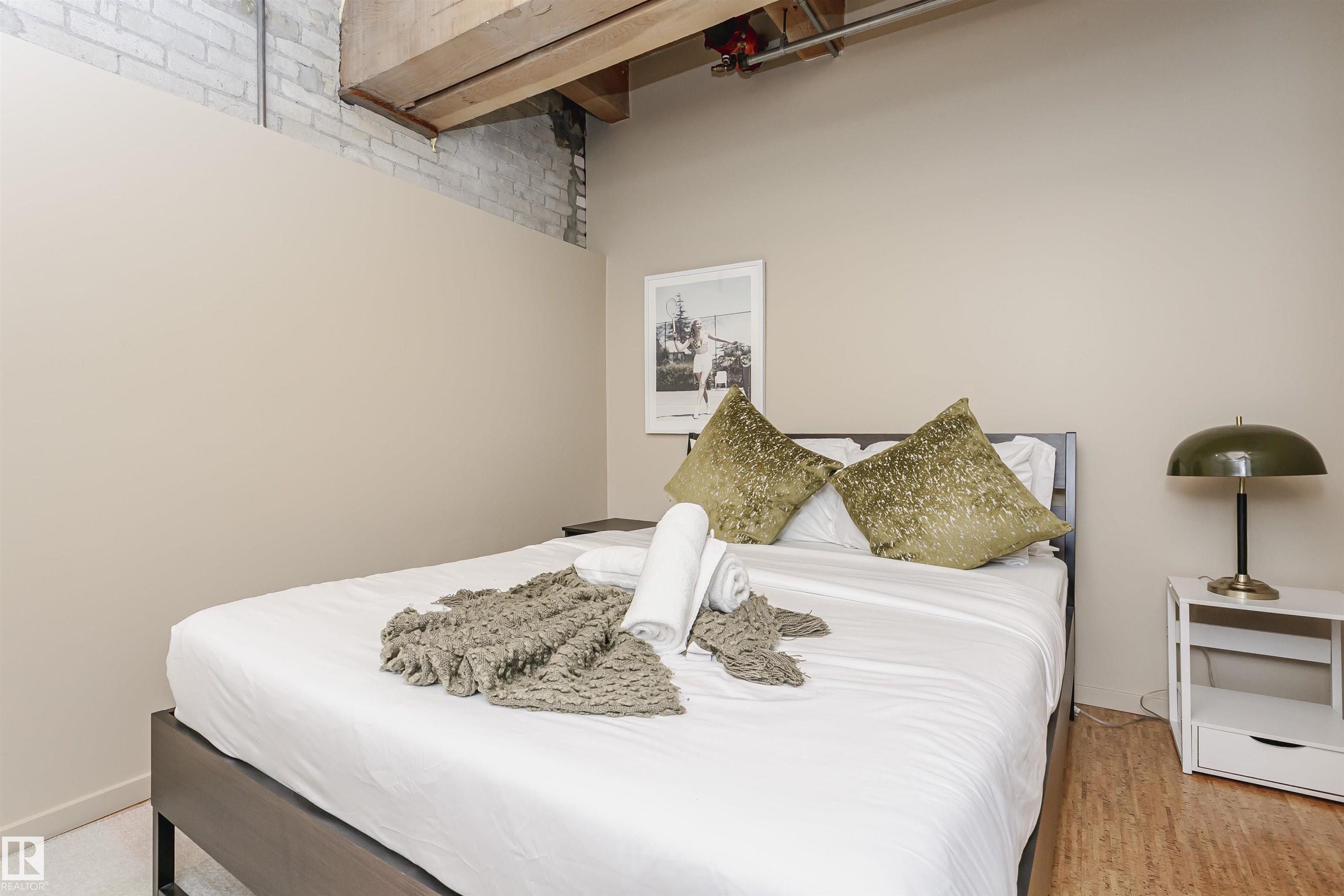 HERITAGE MEETS MODERN IN THE ICONIC JOHN DEERE SEVENTH STREET LOFTS! Discover a rare blend of Edmonton history and contemporary design in this stunning loft, set within the heritage side of the historic John Deere Building--one of Downtown's most recognizable architectural conversions. If you're craving something truly unique, this urban sanctuary delivers. Spanning 1,776 sq. ft. over two dramatically designed levels, this loft embraces its industrial roots with exposed brick, original concrete elements, 13-foot ceilings, and beautiful hardwood floors. The spacious open layout features 2 bedrooms, 2 full bathrooms, and in-suite laundry, all wrapped in authentic character you won't find in newer builds. The kitchen blends style with function, showcasing concrete countertops, modern cabinetry, and a layout perfect for entertaining. Enjoy the convenience and comfort of heated, secure underground parking--a must in downtown living. Located steps from Rogers Place, Ice District, and Farmers Market. WELCOME HOME.