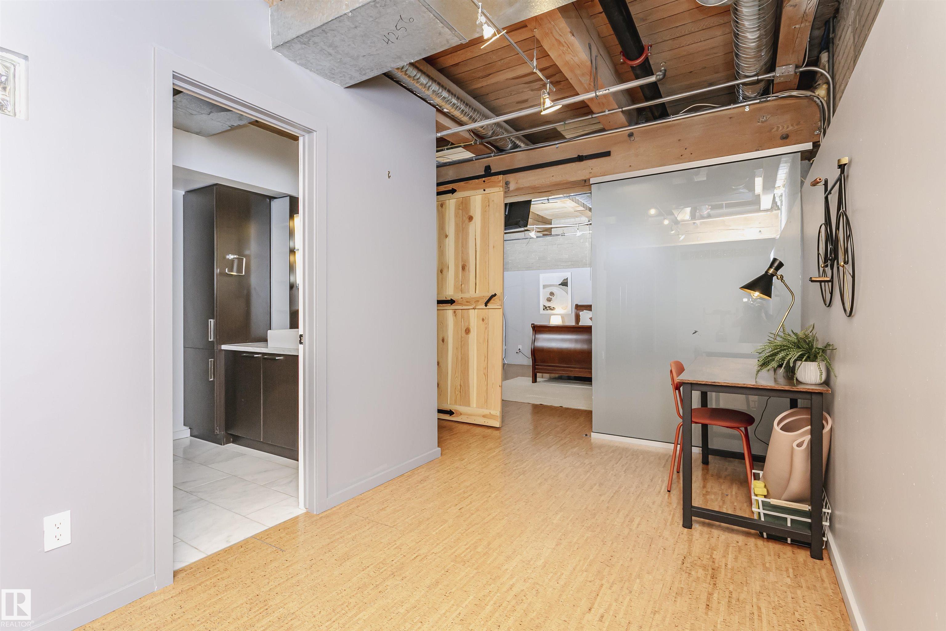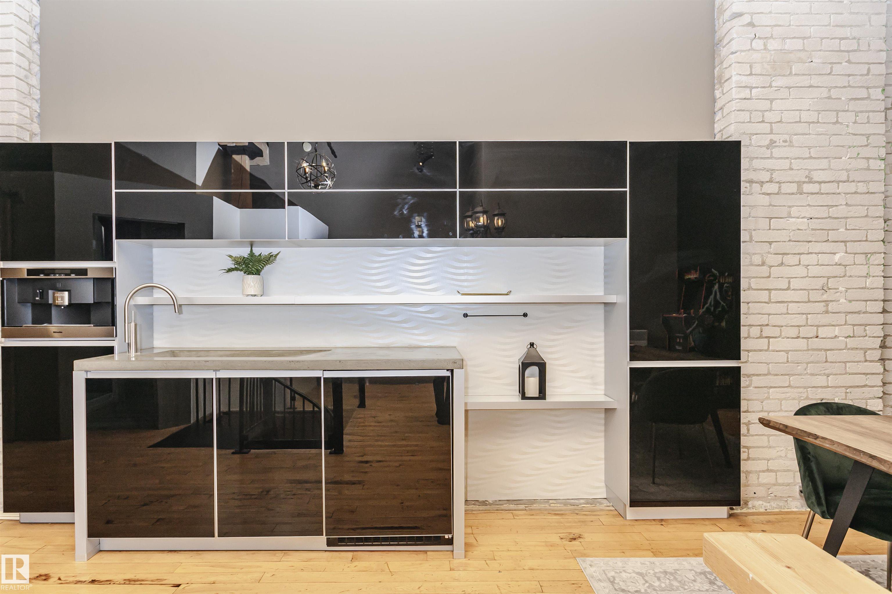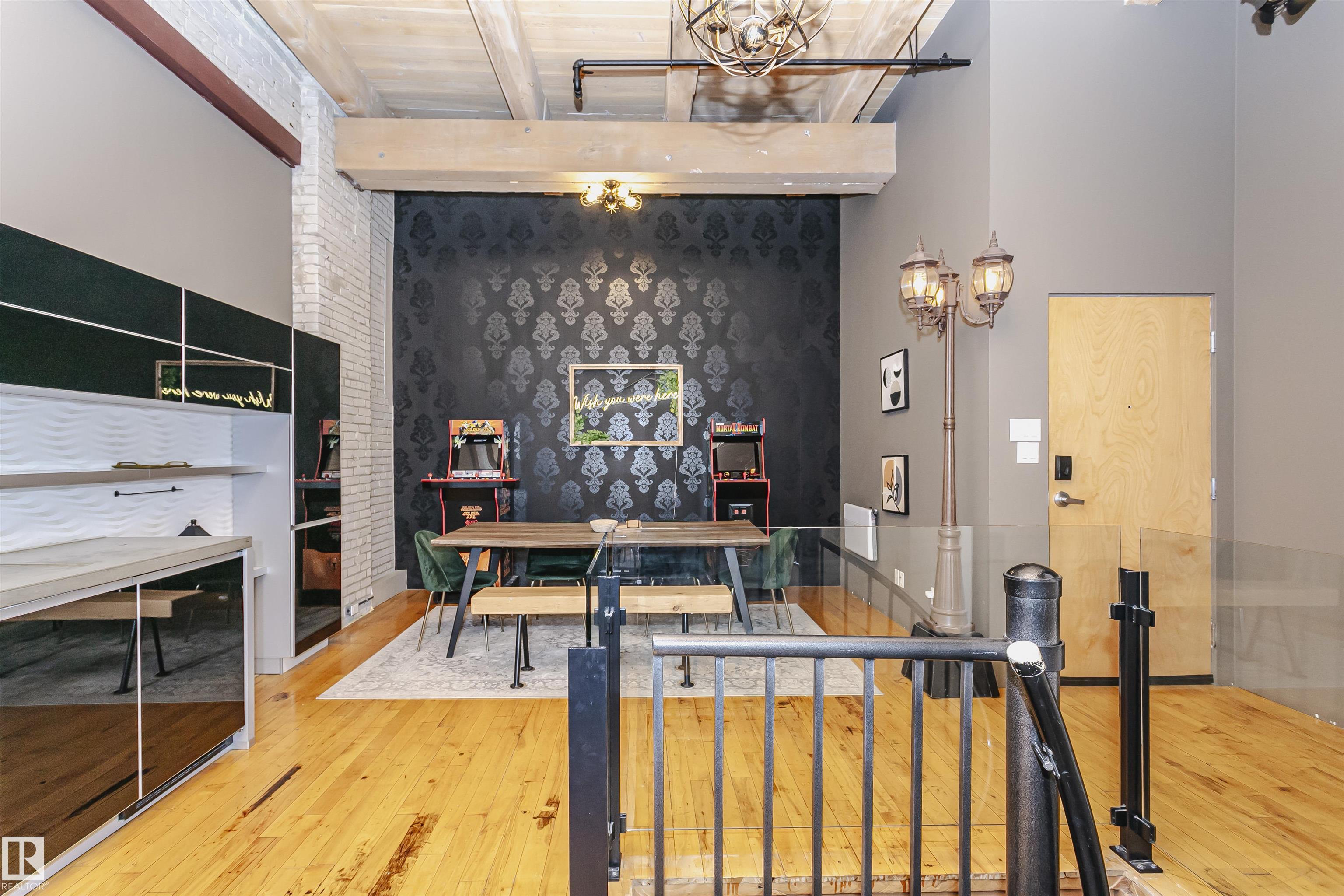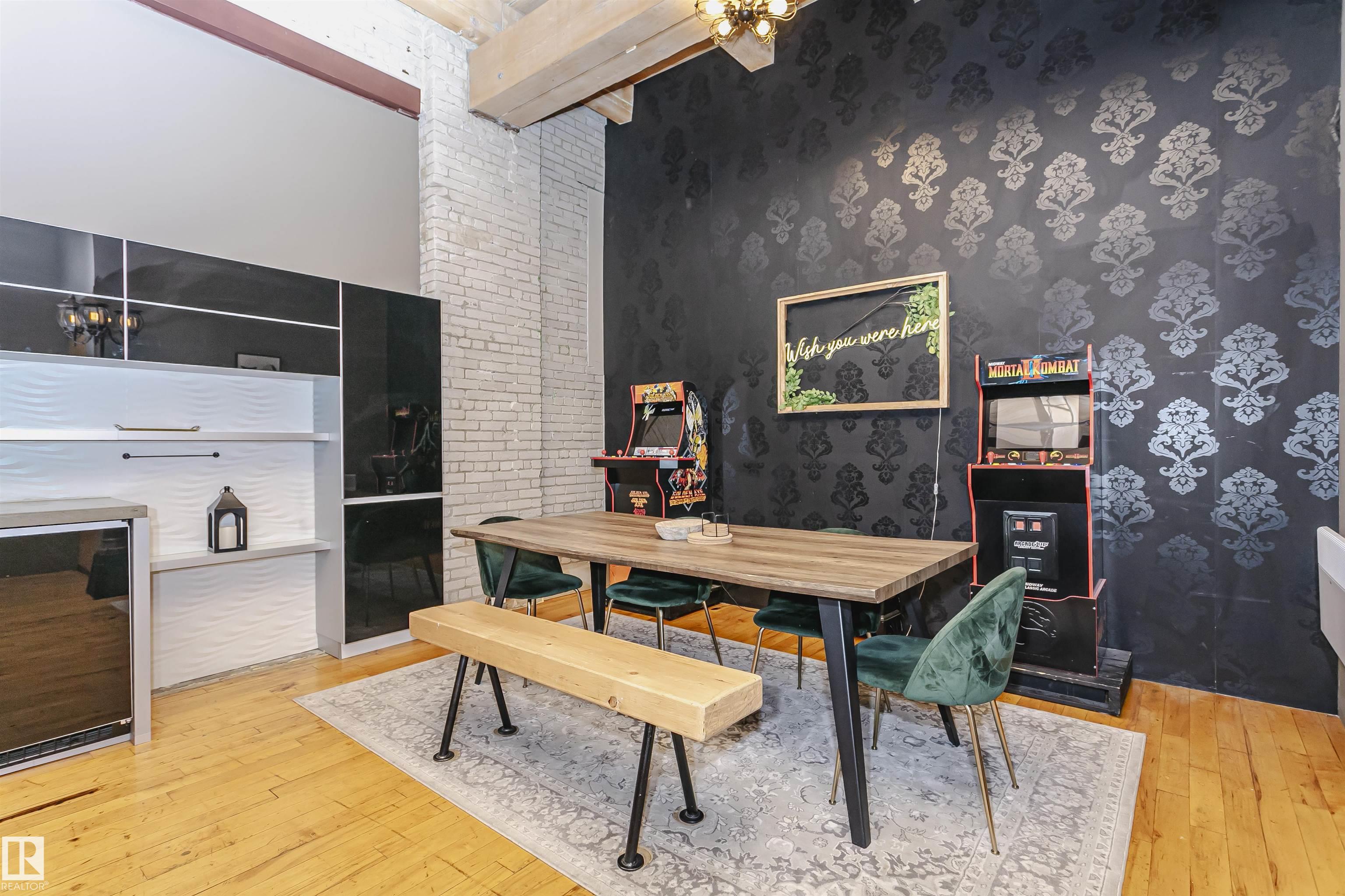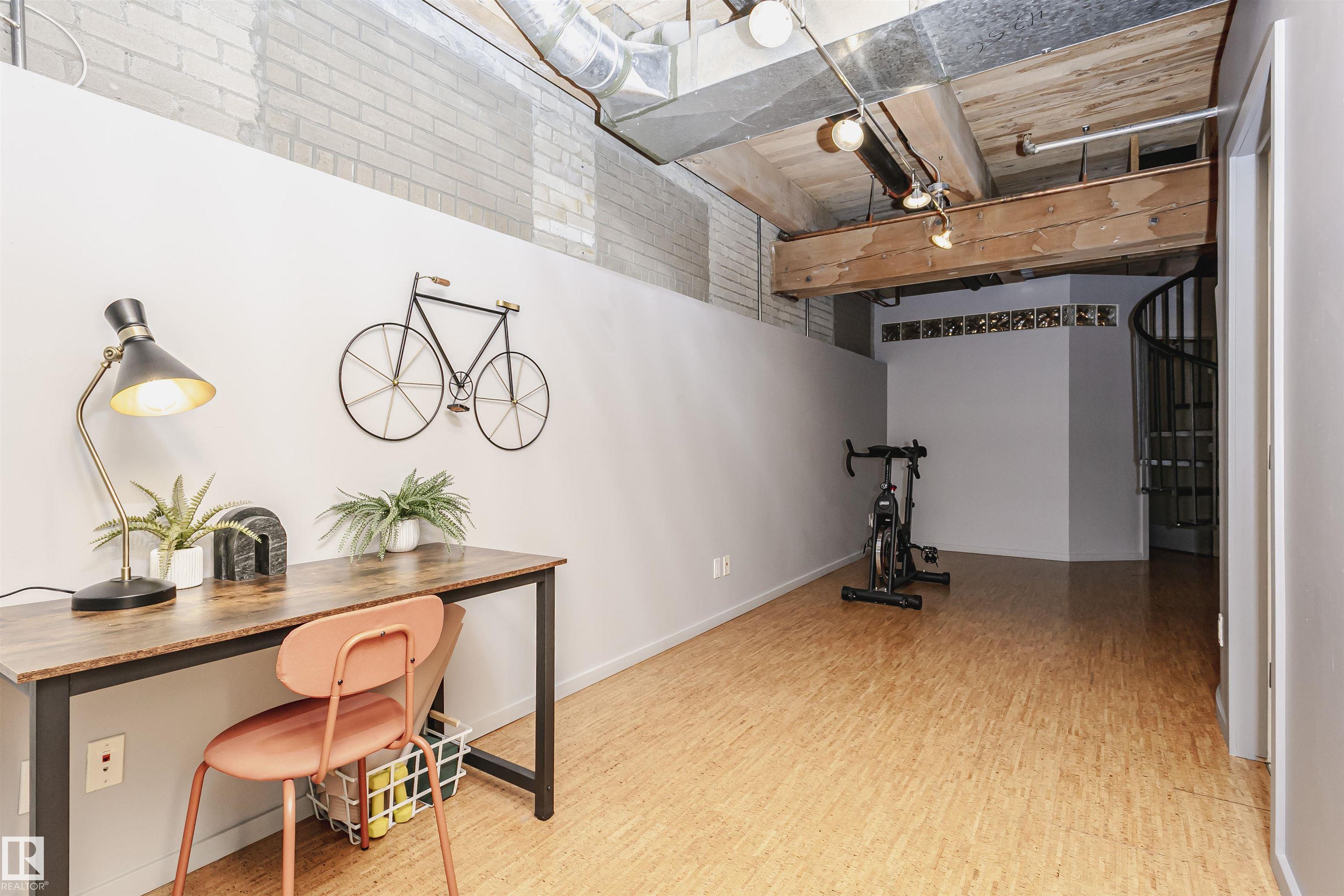 HERITAGE MEETS MODERN IN THE ICONIC JOHN DEERE SEVENTH STREET LOFTS! Discover a rare blend of Edmonton history and contemporary design in this stunning loft, set within the heritage side of the historic John Deere Building--one of Downtown's most recognizable architectural conversions. If you're craving something truly unique, this urban sanctuary delivers. Spanning 1,776 sq. ft. over two dramatically designed levels, this loft embraces its industrial roots with exposed brick, original concrete elements, 13-foot ceilings, and beautiful hardwood floors. The spacious open layout features 2 bedrooms, 2 full bathrooms, and in-suite laundry, all wrapped in authentic character you won't find in newer builds. The kitchen blends style with function, showcasing concrete countertops, modern cabinetry, and a layout perfect for entertaining. Enjoy the convenience and comfort of heated, secure underground parking--a must in downtown living. Located steps from Rogers Place, Ice District, and Farmers Market. WELCOME HOME.