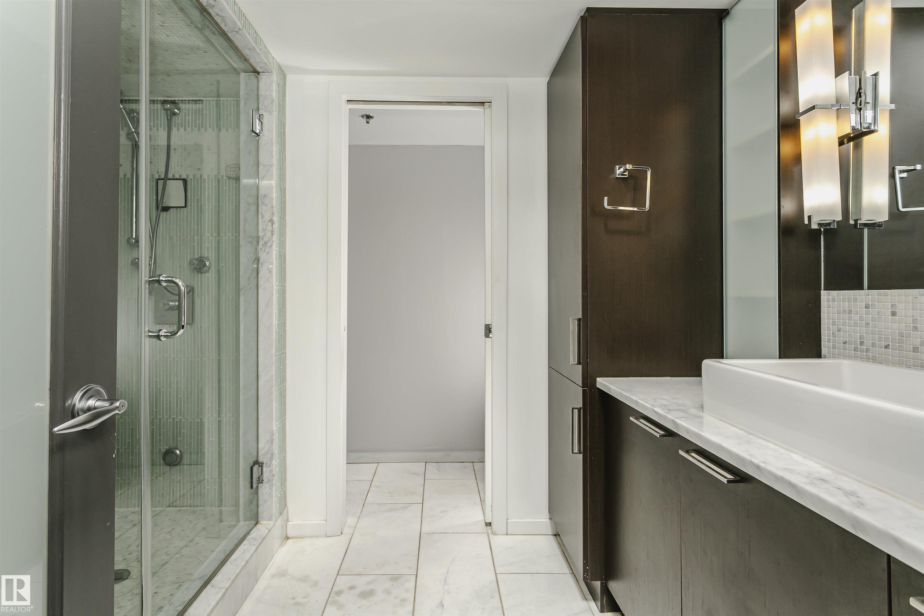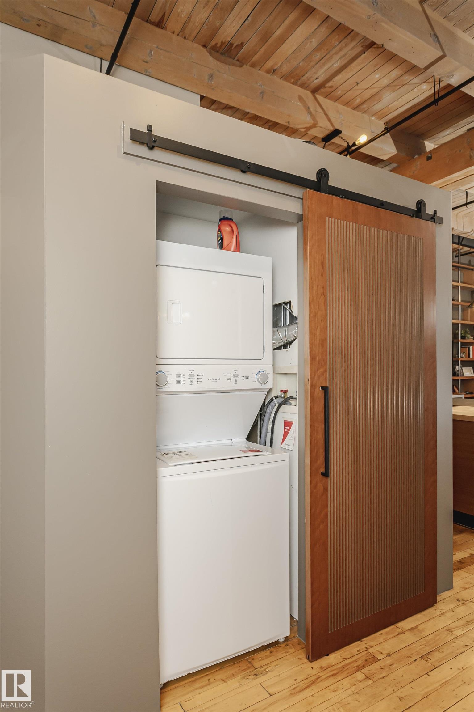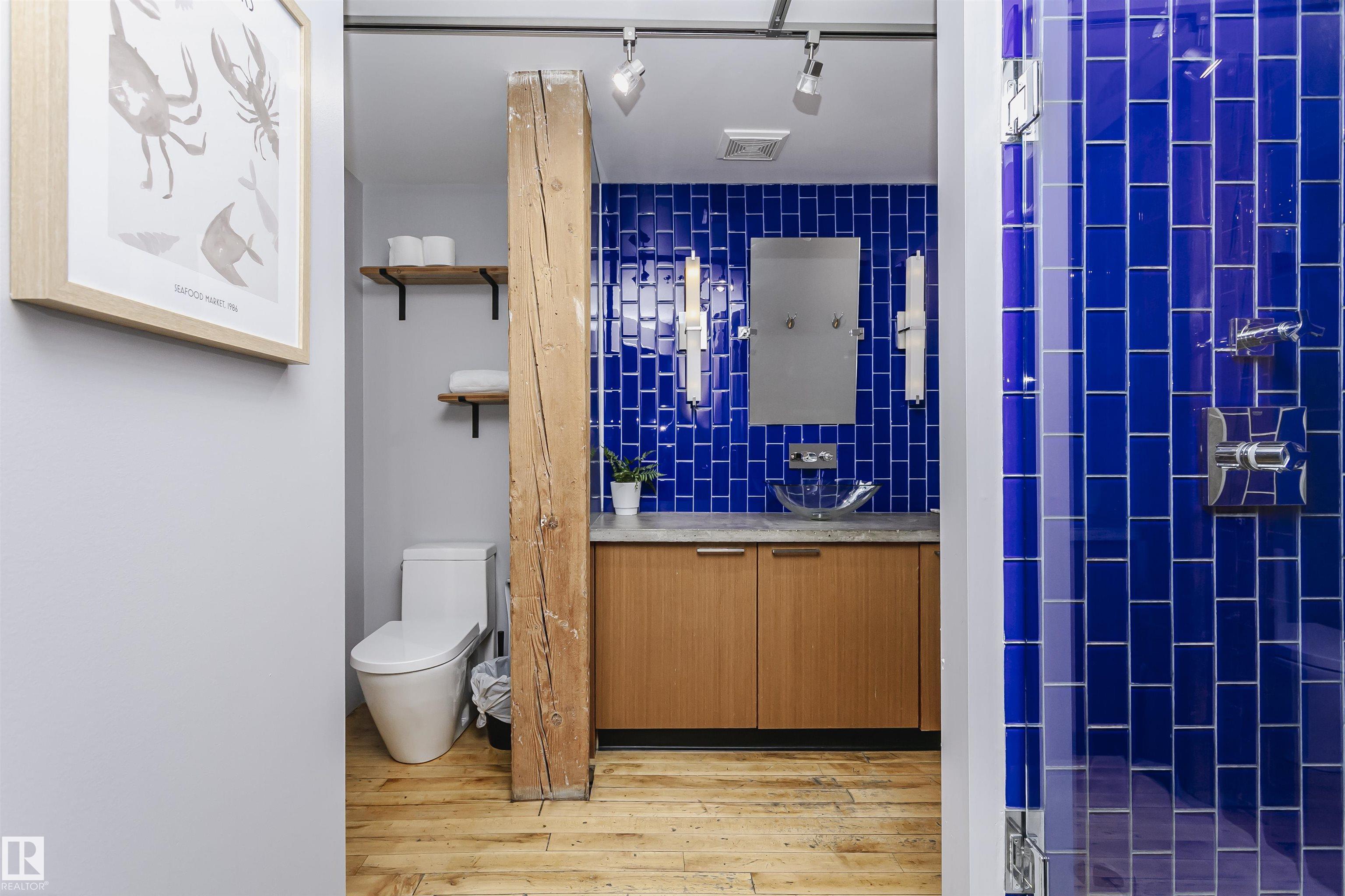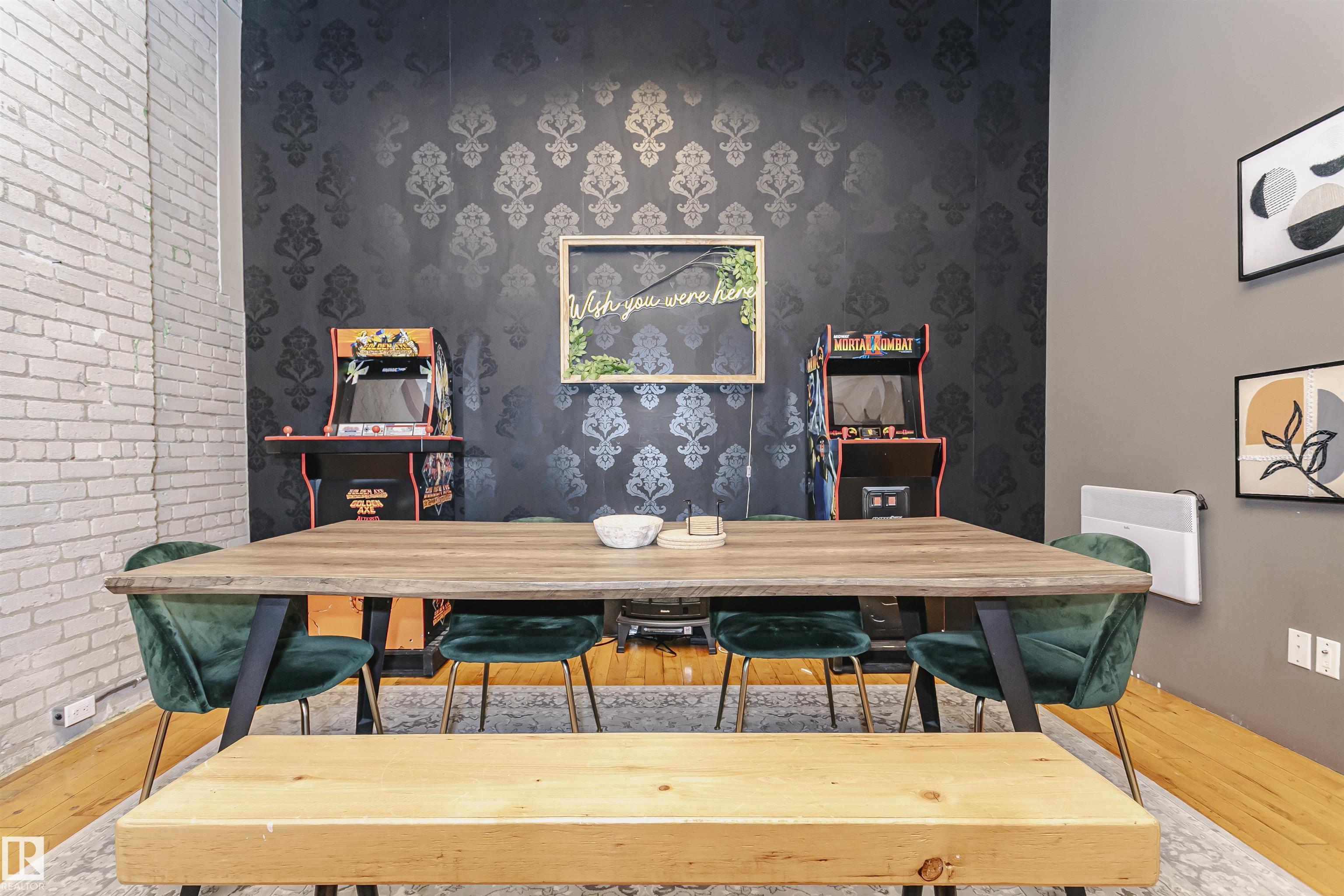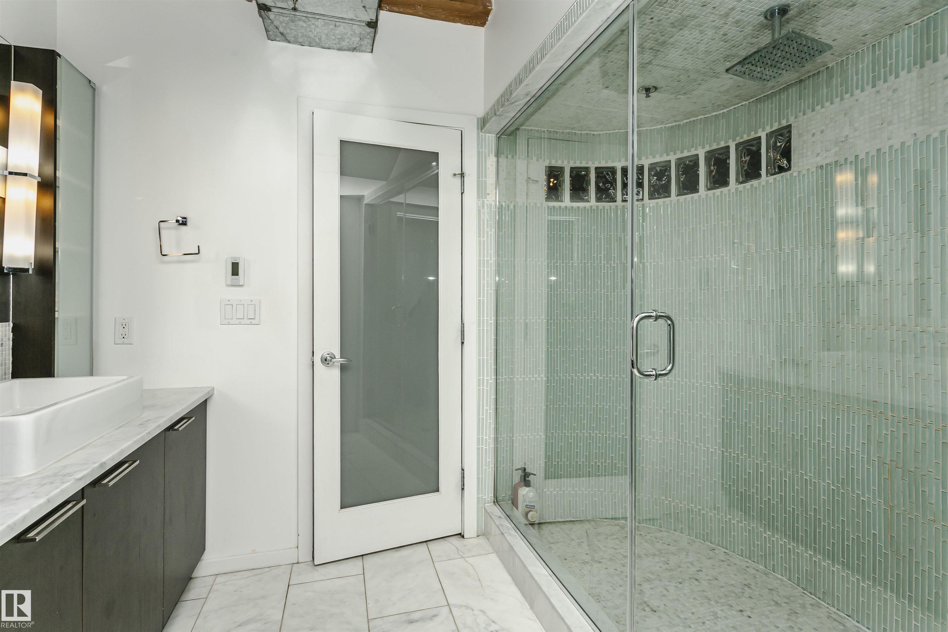 HERITAGE MEETS MODERN IN THE ICONIC JOHN DEERE SEVENTH STREET LOFTS! Discover a rare blend of Edmonton history and contemporary design in this stunning loft, set within the heritage side of the historic John Deere Building--one of Downtown's most recognizable architectural conversions. If you're craving something truly unique, this urban sanctuary delivers. Spanning 1,776 sq. ft. over two dramatically designed levels, this loft embraces its industrial roots with exposed brick, original concrete elements, 13-foot ceilings, and beautiful hardwood floors. The spacious open layout features 2 bedrooms, 2 full bathrooms, and in-suite laundry, all wrapped in authentic character you won't find in newer builds. The kitchen blends style with function, showcasing concrete countertops, modern cabinetry, and a layout perfect for entertaining. Enjoy the convenience and comfort of heated, secure underground parking--a must in downtown living. Located steps from Rogers Place, Ice District, and Farmers Market. WELCOME HOME.