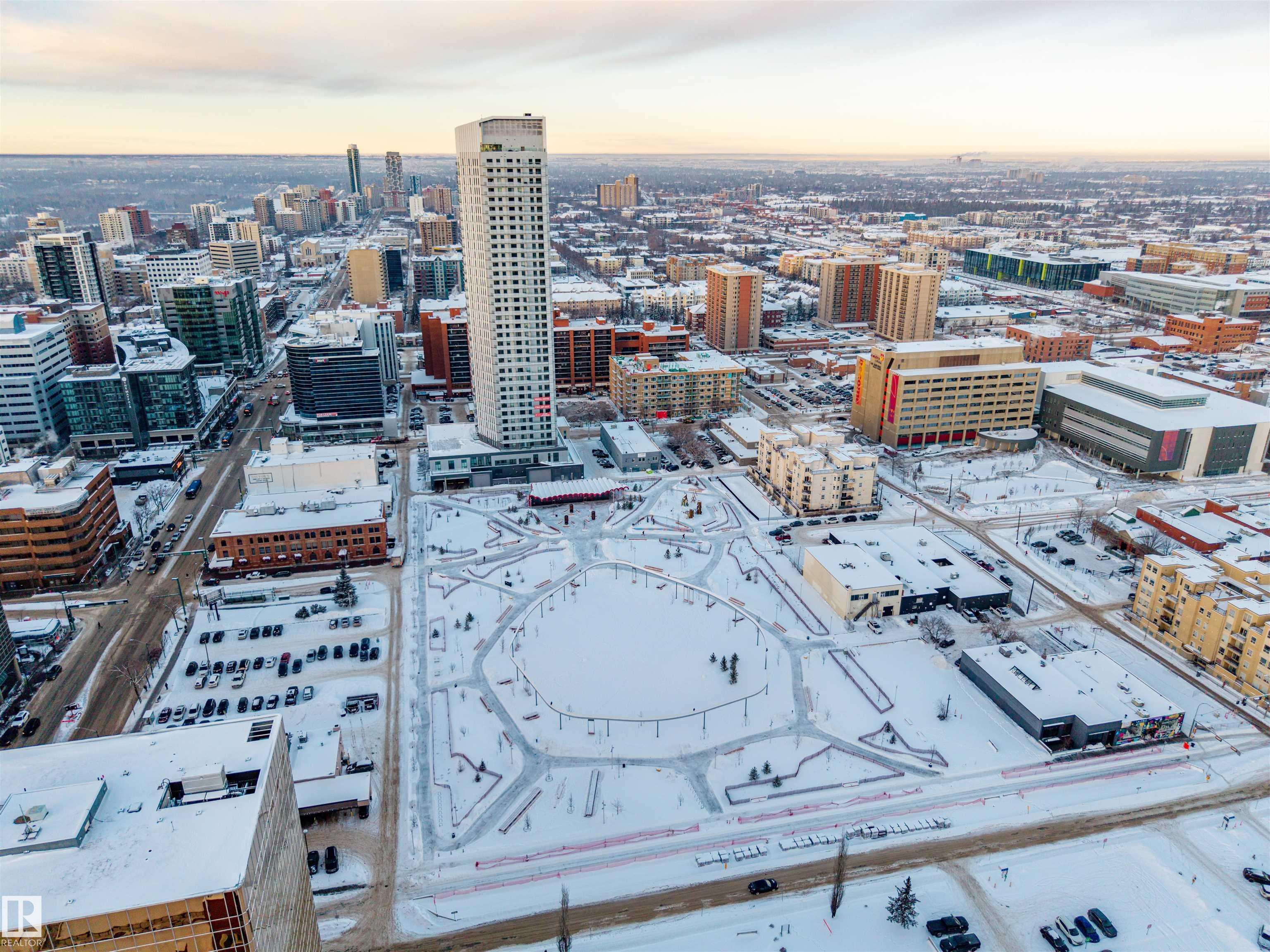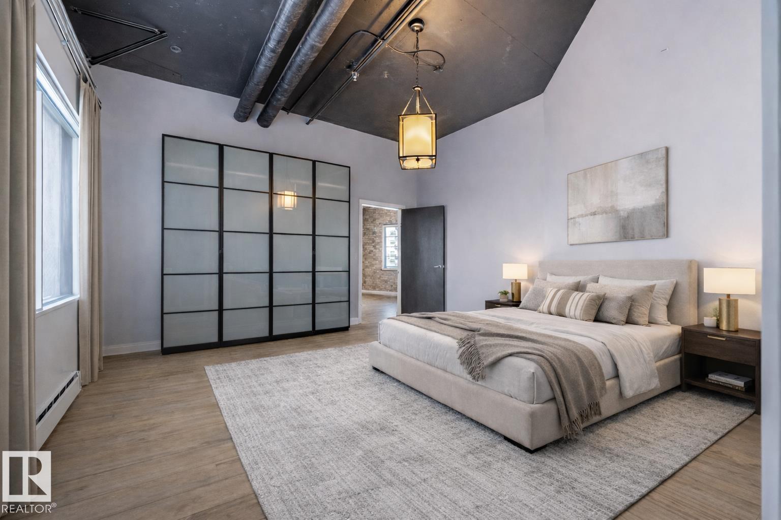 Chic loft-style living in the heart of downtown Edmonton. This stylish corner third-floor condo in the iconic Ten Building blends industrial character with modern comfort, featuring 10-foot ceilings, exposed concrete details, large north-facing windows & a striking exposed brick feature wall. The open-concept layout is anchored by a stunning kitchen with a huge island, SS appliances & an abundance of cabinetry perfect for entertaining. A versatile den offers the ideal space for a home office, creative studio, or wine room. 2 generously sized bedrooms, with the primary bedroom featuring a 4-piece ensuite with soaker tub, plus a second full 4-piece bath. Thoughtfully designed built-in shelving, in-suite laundry & underground parking add everyday convenience. Located steps from Rogers Place, Ice District, LRT, restaurants, caf‚s & downtown amenities--this is urban living at its best.