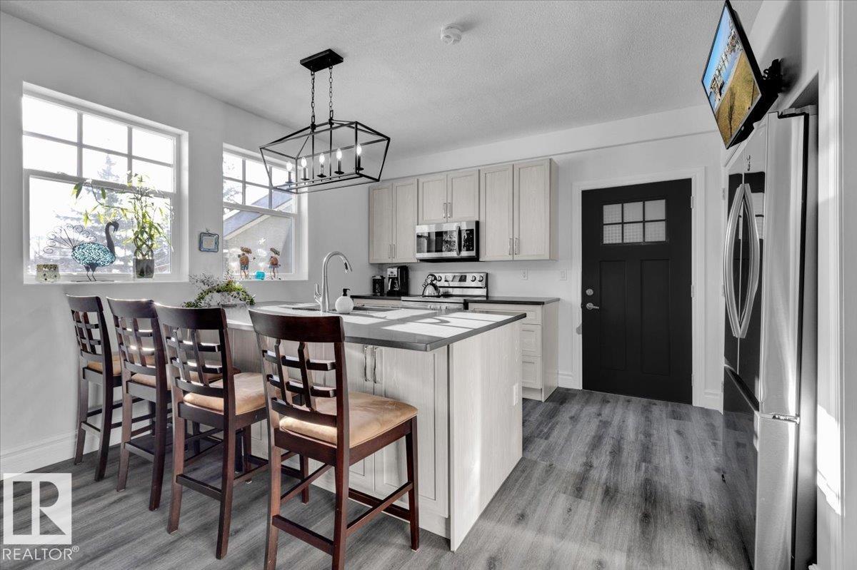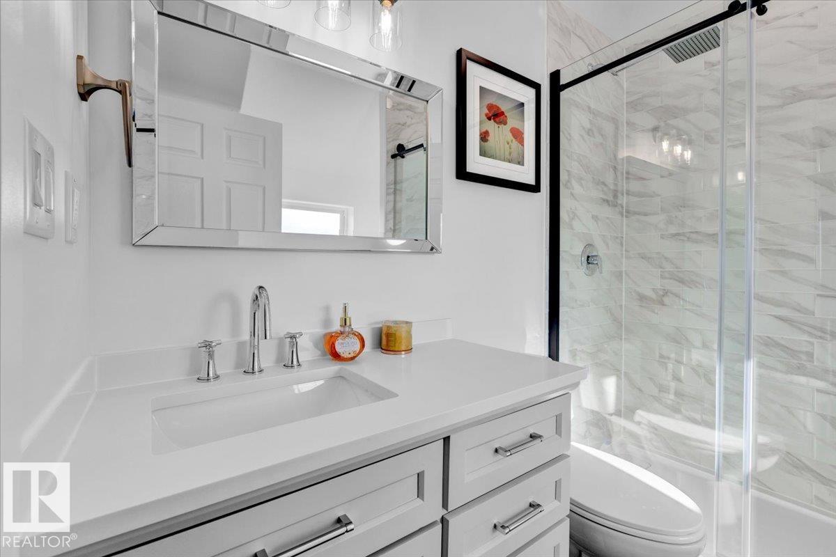 This beautifully renovated character home blends timeless charm with modern upgrades, ideal for first-time buyers or investors. Renovated completely with new insulation, shingles, a high-efficiency furnace, and a tankless hot water system for long-term comfort. Six spacious bedrooms across three levels, there's ample room for families or as an investment. The main floor offers a bright, open-concept kitchen with quartz countertops, four new stainless steel appliances, and a 4' x 8' peninsula with extra cabinetry and pantry. Sunlit living and dining areas feature modern vinyl plank and ceramic flooring. A flex room or fourth bedroom includes a roughed-in shower and powder room, perfect for guests or office. Upstairs offers a loft with vaulted ceilings, oversized triple-pane windows, and two bedrooms including a luxurious master suite with walk-in closet, ensuite, and upper-floor laundry. The separate-entry basement includes washer/dryer, shared kitchen, three bedrooms, each with a vanity sink and fridge.