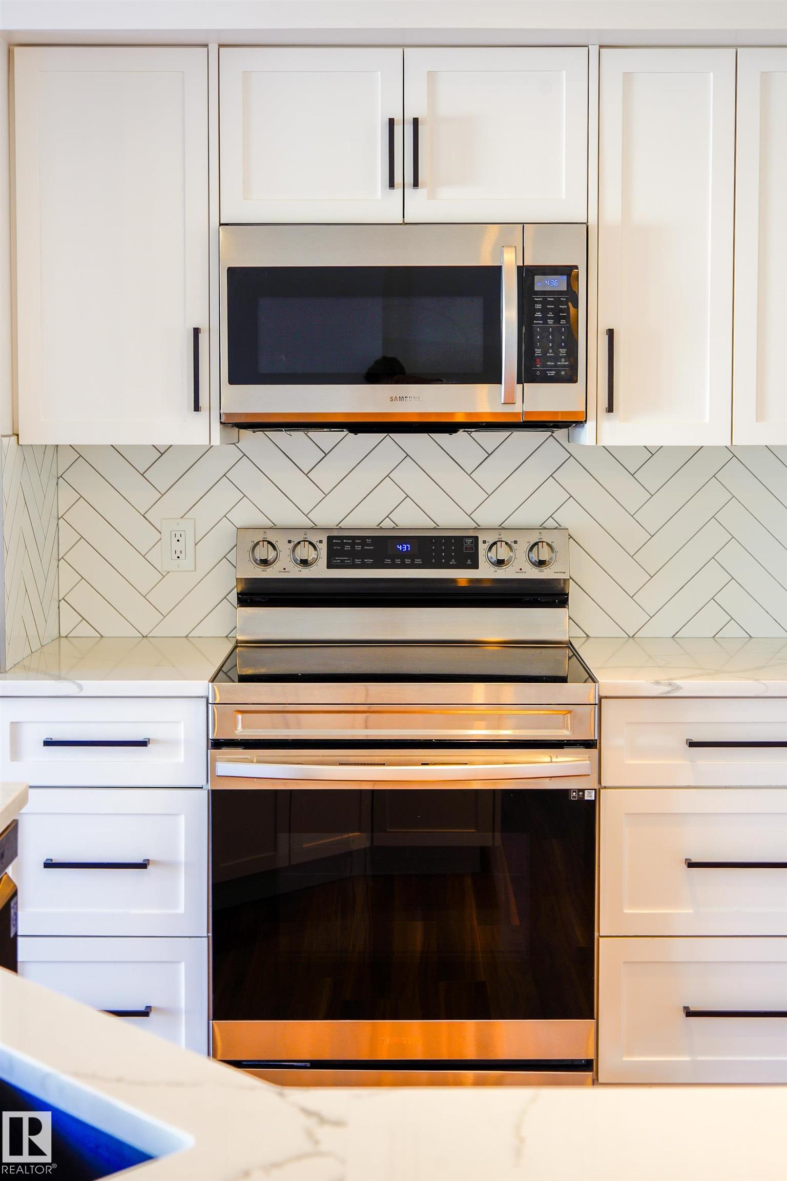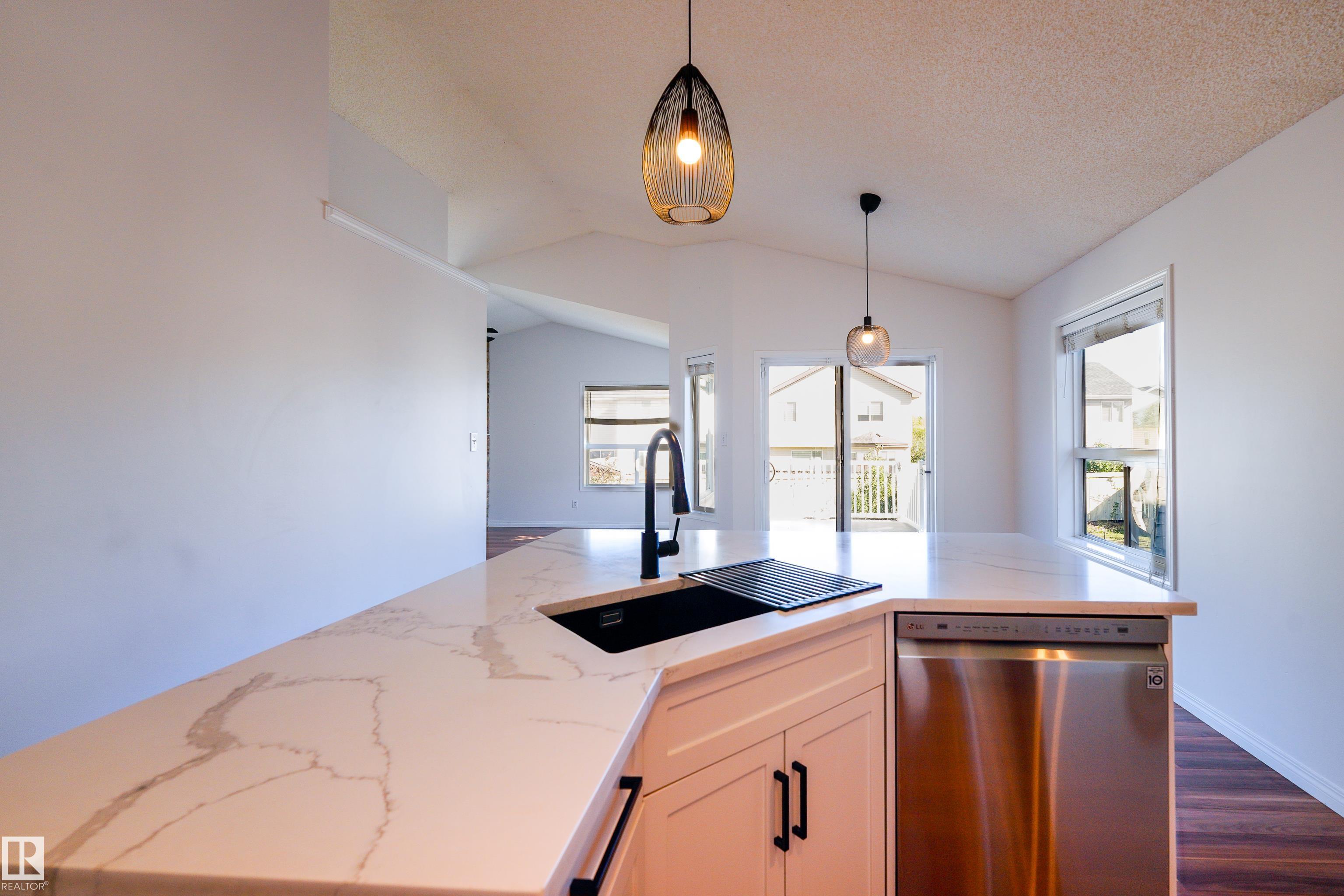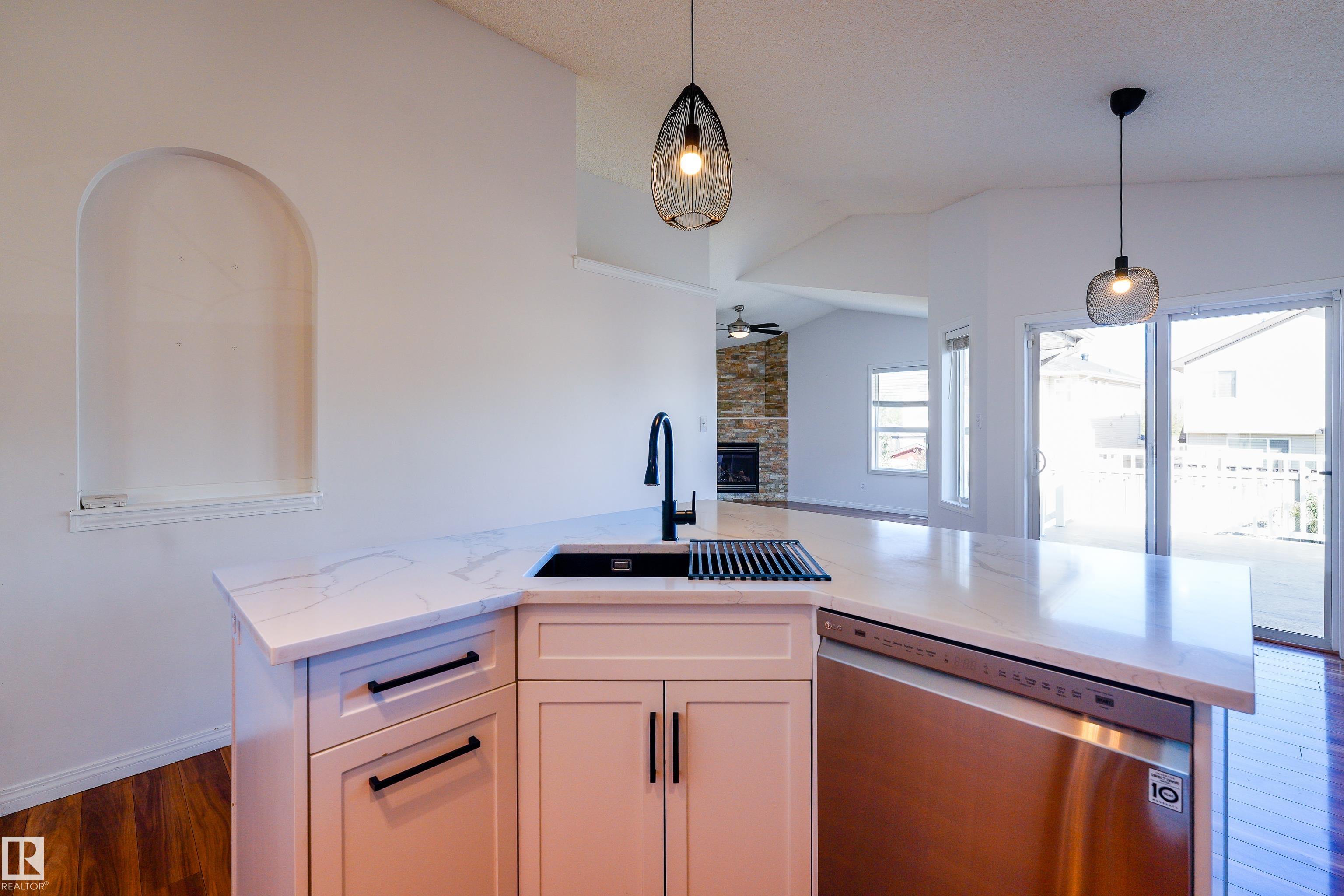 BEST VALUE HOME IN ELLERSLIE... RENOVATED KITCHEN, 4 BED, 3 BATHS, UPDATED ENSUITE, FINISHED BASEMENT & DOUBLE GARAGE with A/C! This stylish BI-LEVEL home in Ellerslie is perfect for a growing family with space, comfort, and upgrades galore. Cook like a pro in the modern kitchen with quartz counters, black faucet and hardware, white cabinets and 2021 stainless steel appliances. Retreat to the fresh ensuite with subway tile and sleek black fixtures. The fully finished basement shines with a huge rec room, large windows, and a spare bedroom/office--ideal for game nights, guests, or work-from-home. Major updates include NEWER shingles, washer, A/C, furnace & HWT (all 2022). Double garage with shelving plus a long pad fits a total of 4 vehicles! Just minutes to parks, schools, trails, South Edmonton Common, grocery stores, and quick Anthony Henday access. With natural light, smart layout, and family-friendly vibes, this home is truly move-in ready--don't wait, take a look today, and get ready to move in!