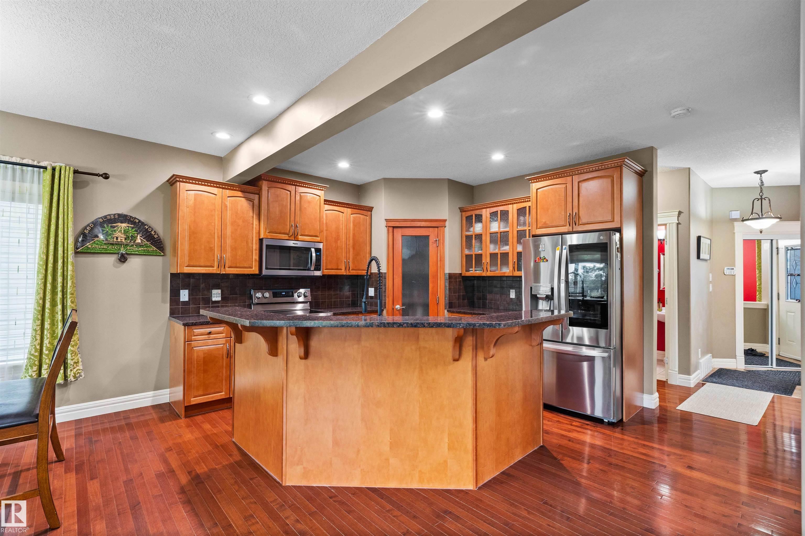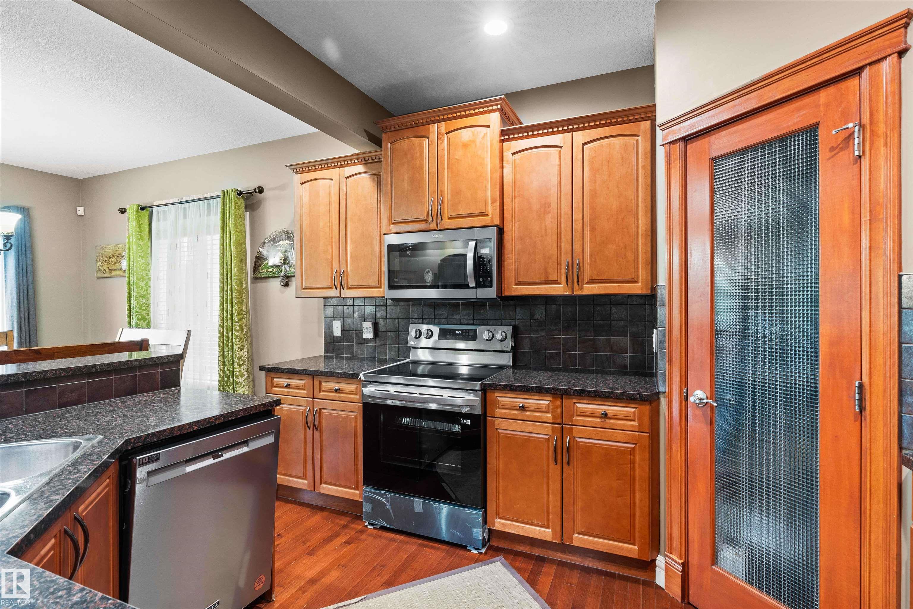 WOW! 6-bedroom, 4-bathroom home BACKING TO PARK in one of South Edmonton's most desirable communities -- Ellerslie! Offering 2,800 sq ft of fully finished living space, this home backs onto serene green space & offers the perfect blend of elegance & functionality. Step inside and be greeted by 9-ft ceilings, a bright & open floor plan, & a formal dining area perfect for entertaining. The main floor features convenient laundry, a stylish kitchen w/NEW APPLIANCES & an inviting living room drenched in natural light thanks to large windows overlooking the massive deck and peaceful backyard. Upstairs you'll find (4 BDRMS), a spacious bonus room, a luxurious primary suite with a full ensuite, + 3 more generously sized bedrooms & a 2nd full bath. The fully finished basement expands your living space with 2 additional bedrooms, a full bath, a cozy family room, & gym -- ideal for growing families or guests. With new shingles, a fully finished basement, new appliances, and now quick possession ready, this is the one!
