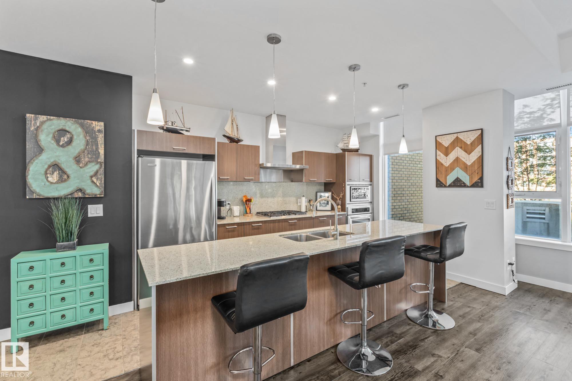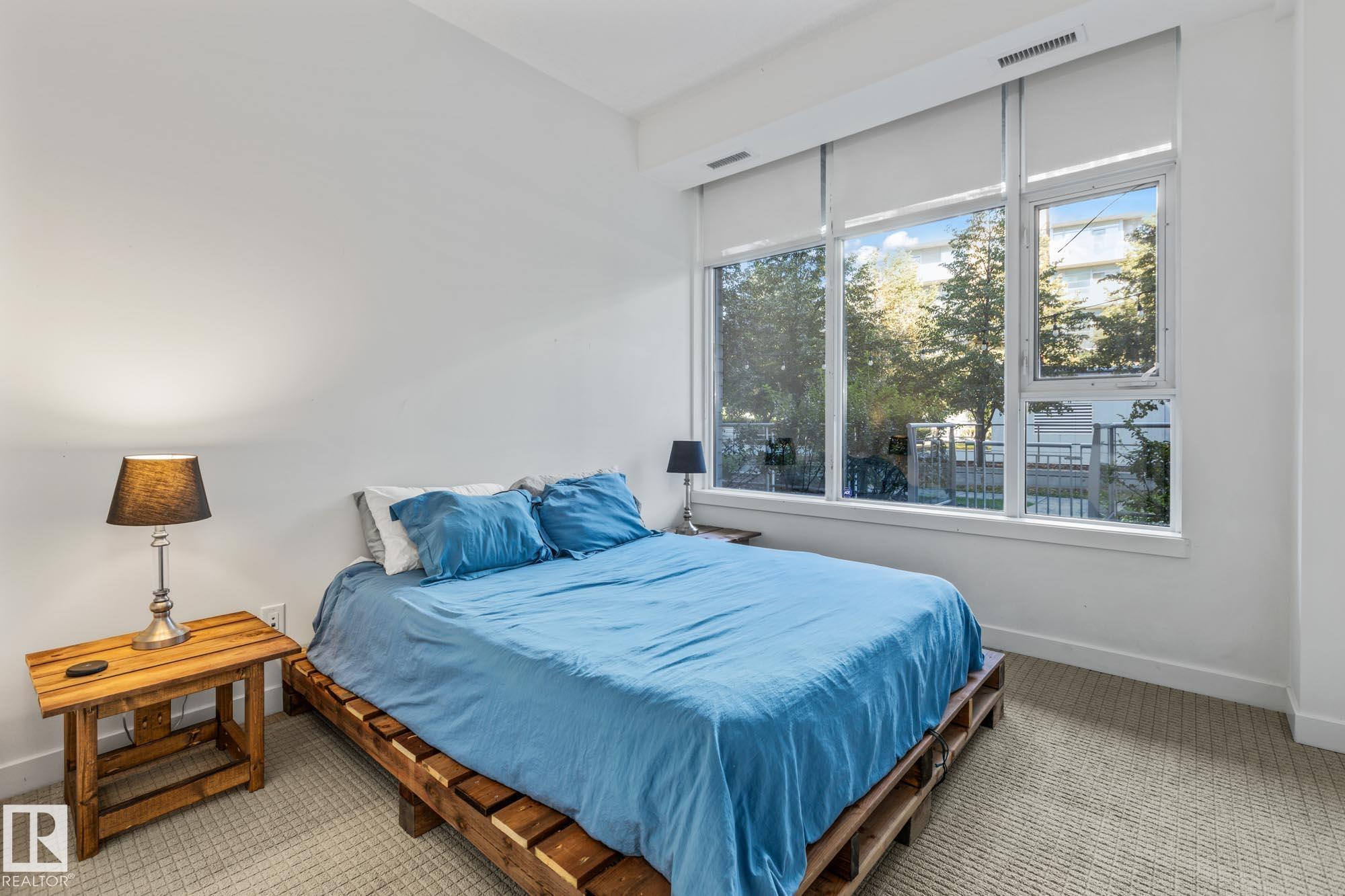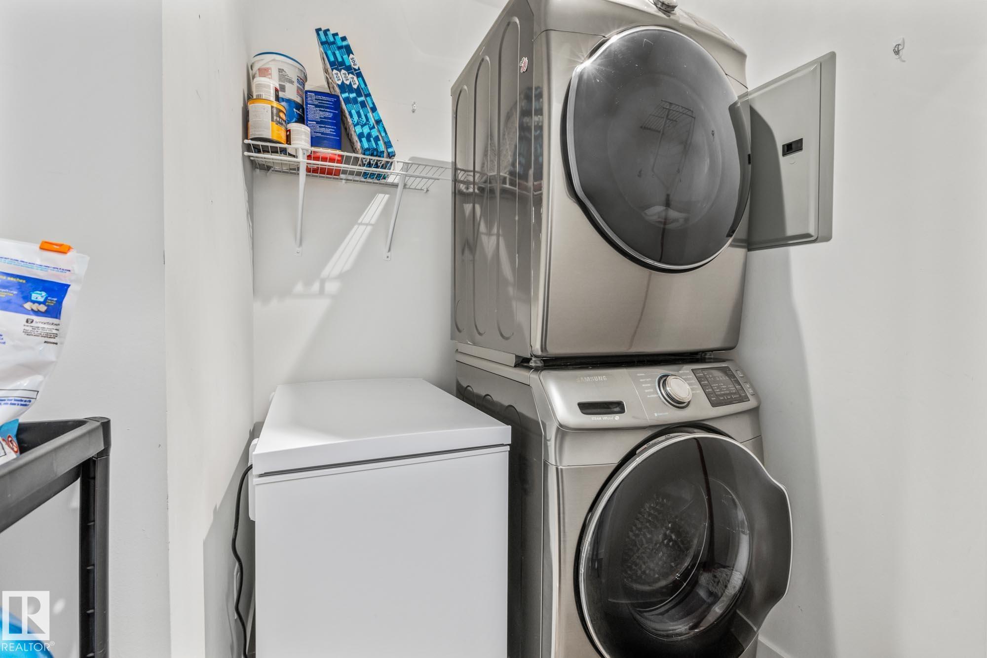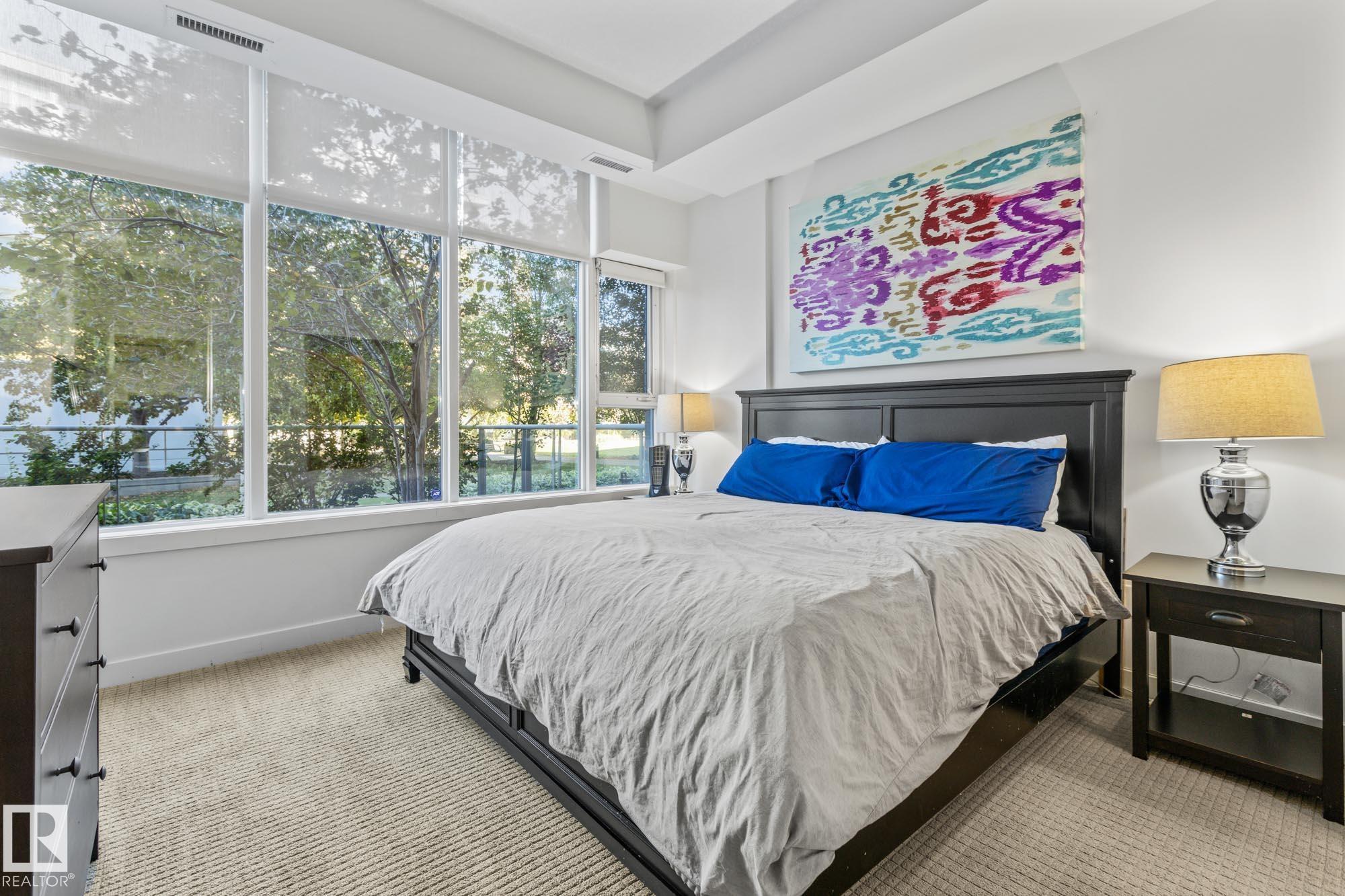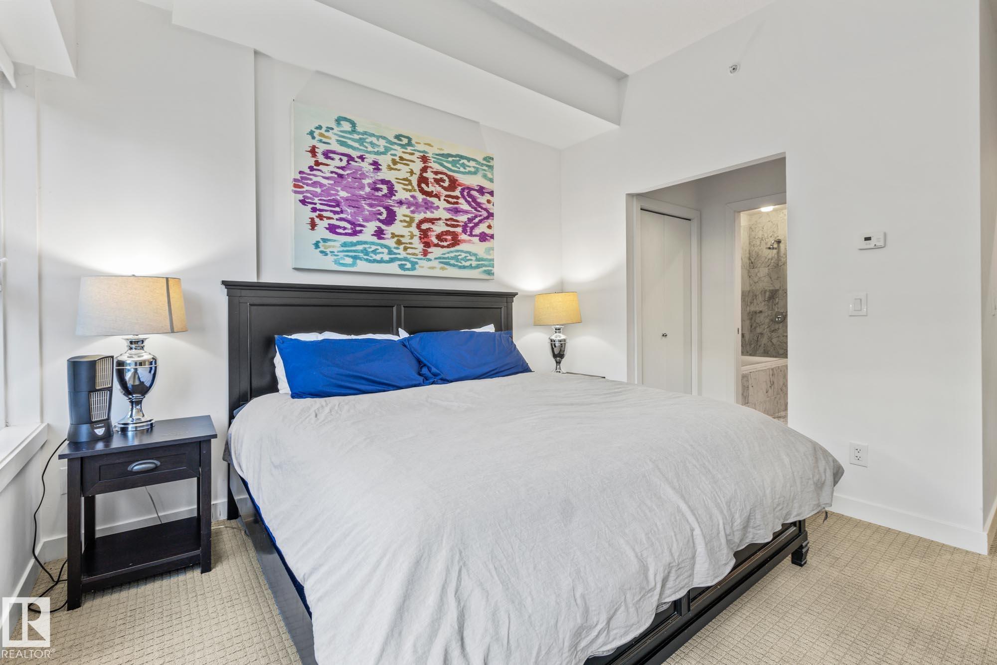This STUNNING 2 bedroom 2 bathroom condo is located in one of Edmonton's desired locations, with easy access to the LRT, major roadways, shopping, restaurants, banking and professional services. This unit comes with 2 (titled) HEATED UNDERGROUND PARKING STALLS (located side by side), titled storage cage, access to the fully equipped fitness room, a private entrance, and a large landscaped private patio with a natural gas BBQ hook up. The kitchen has stainless steel appliances, a countertop gas stove, built in wall oven and microwave and ample room for cooking and entertaining at the massive island which is completed with granite countertops. Down the hall is a laundry room with a full sized washer and dryer and a 4-piece bathroom as well as two large bedrooms. Both bedrooms are carpeted and the bathrooms are finished with marble and granite. The primary bedroom has dual closets, and a luxurious 5-piece en-suite featuring a huge soaker tub and double sinks. Be ready to be impressed by this amazing home!