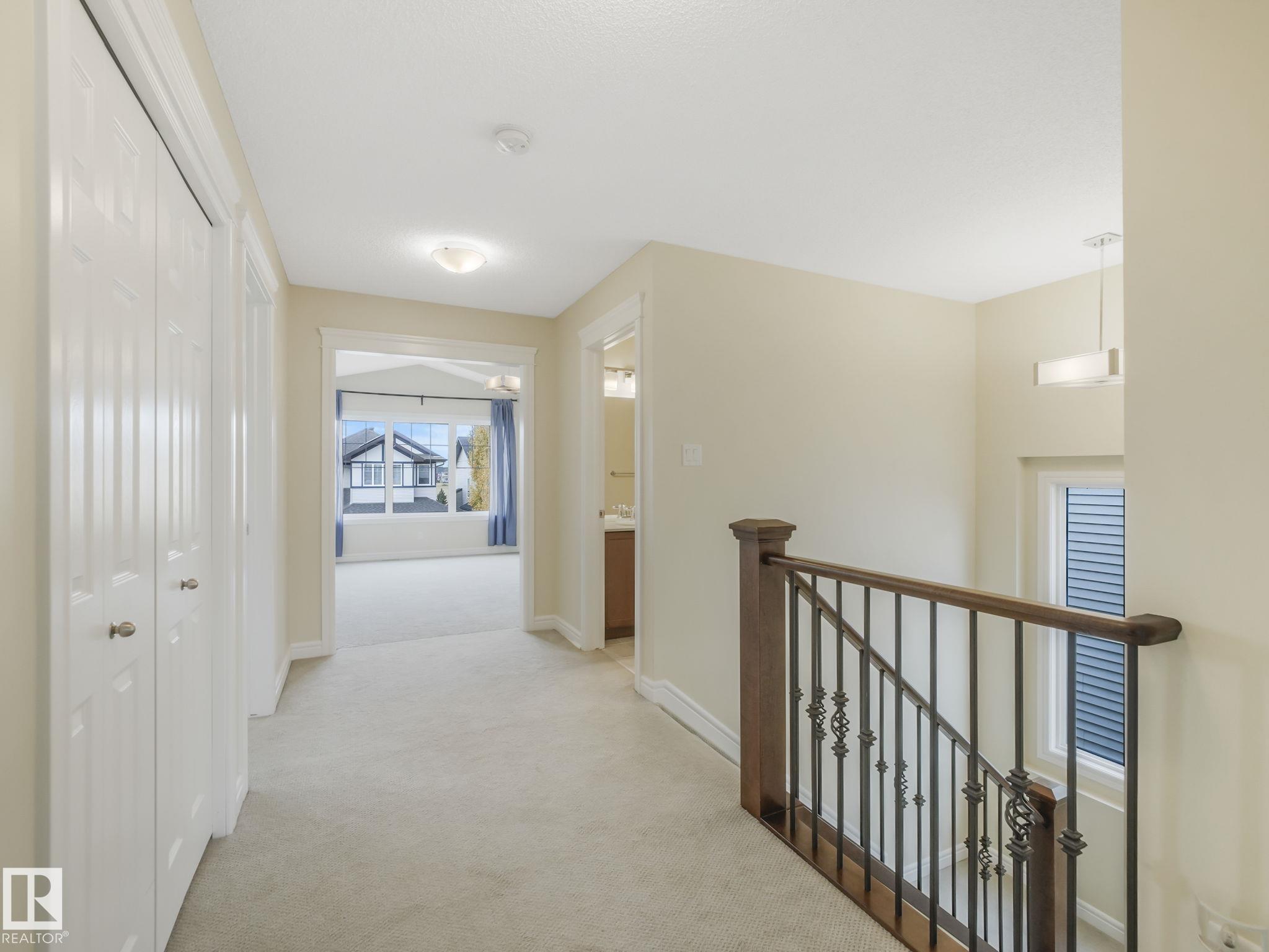 Welcome to Glenridding Heights! This beautifully maintained 2,360 sq ft two-storey home offers exceptional comfort and modern living. The main floor features impressive 9-foot ceilings, a spacious living room, and an extensive contemporary kitchen with a large island and generous dining space--perfect for entertaining and family gatherings. Upstairs, you'll be greeted by a bright west-facing bonus room, flooded with afternoon sunlight. The second floor also includes three well-proportioned bedrooms. The master suite boasts a double-sink vanity, custom cabinetry, and a separate shower and bathtub for added luxury. Upgrades include hardwood flooring and stainless steel appliances. Located in a sought-after area close to parks and schools, with quick access to Anthony Henday Drive, this home is truly move-in ready. Don't miss out--your search ends here!