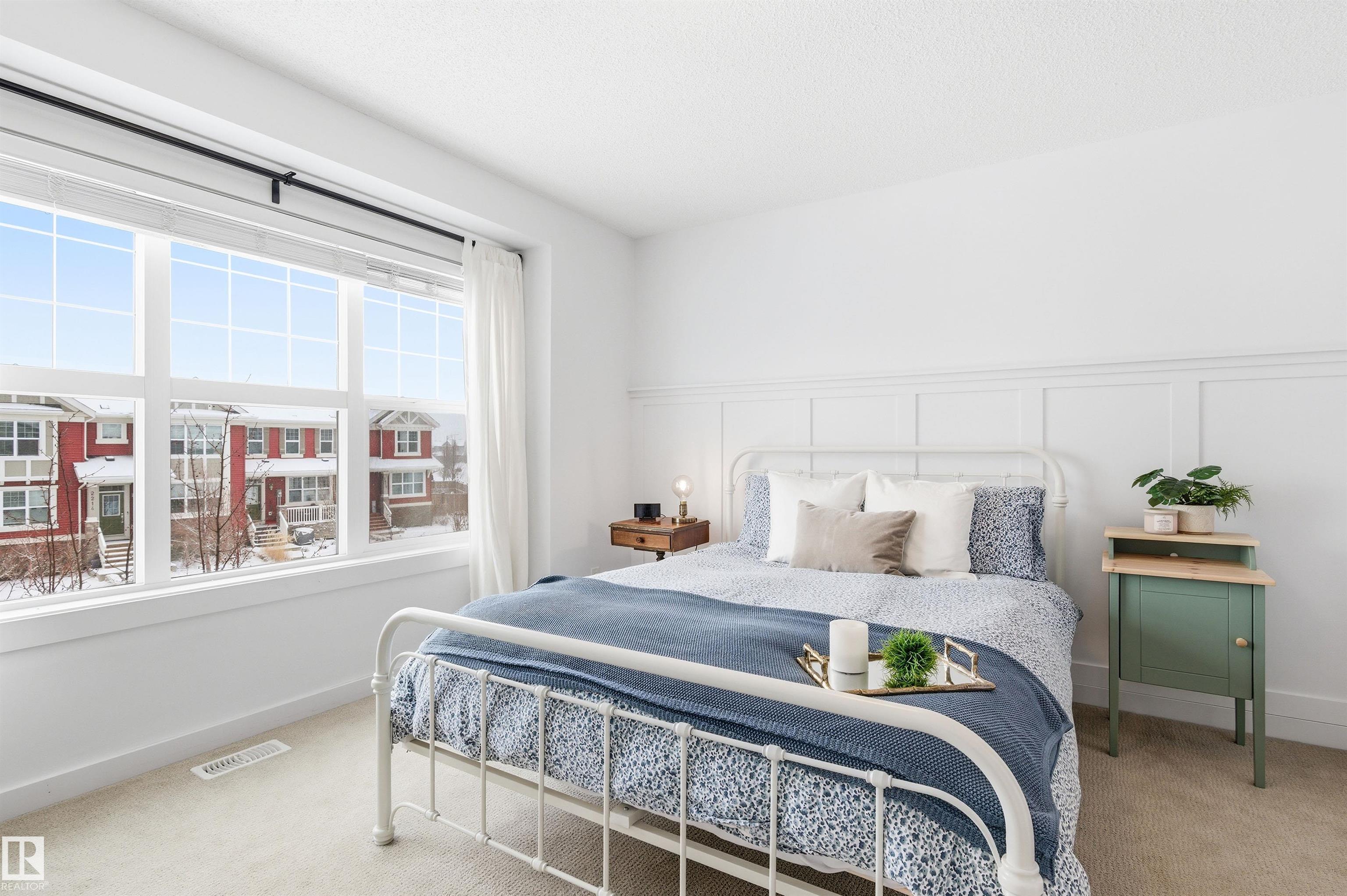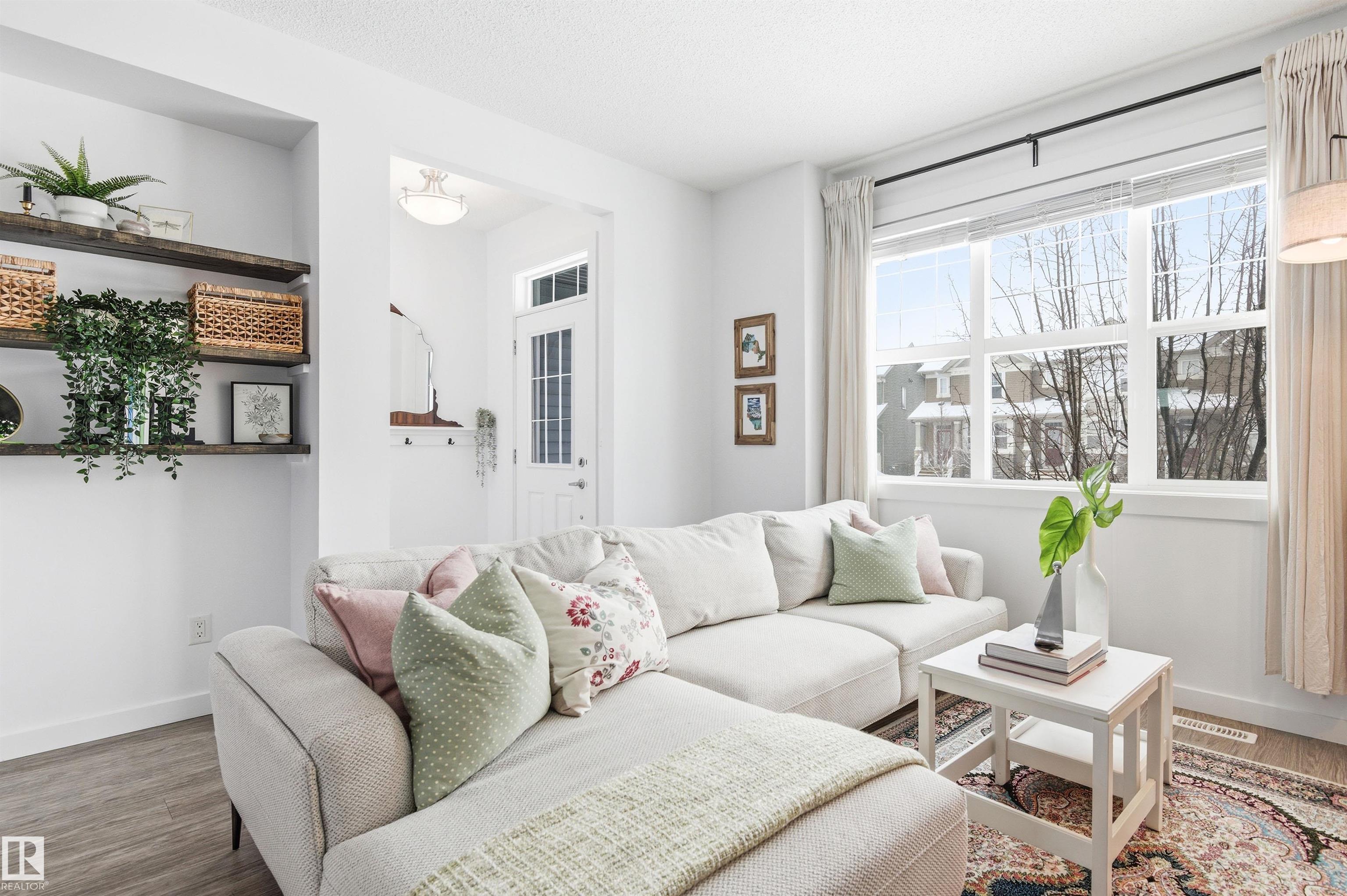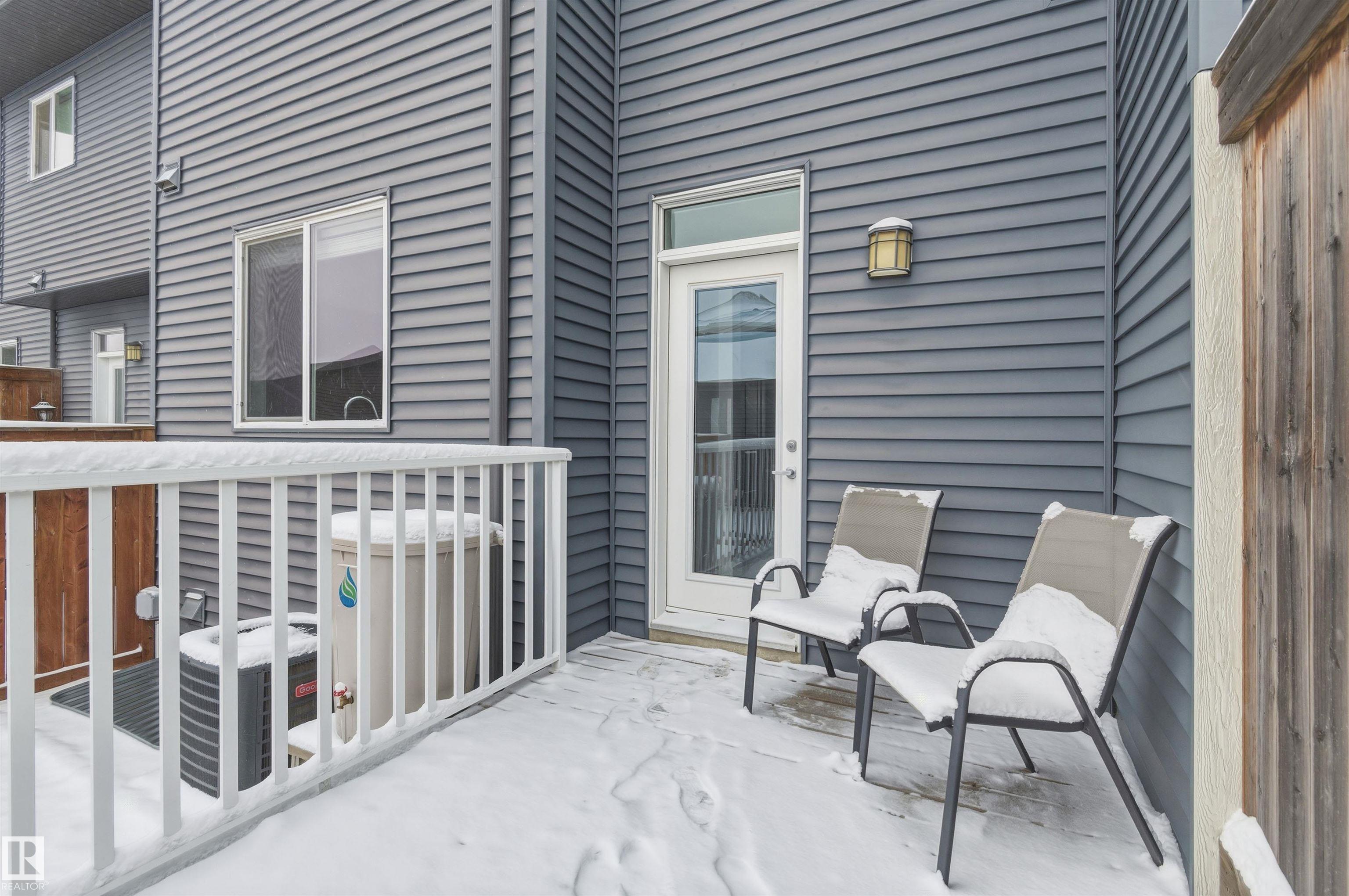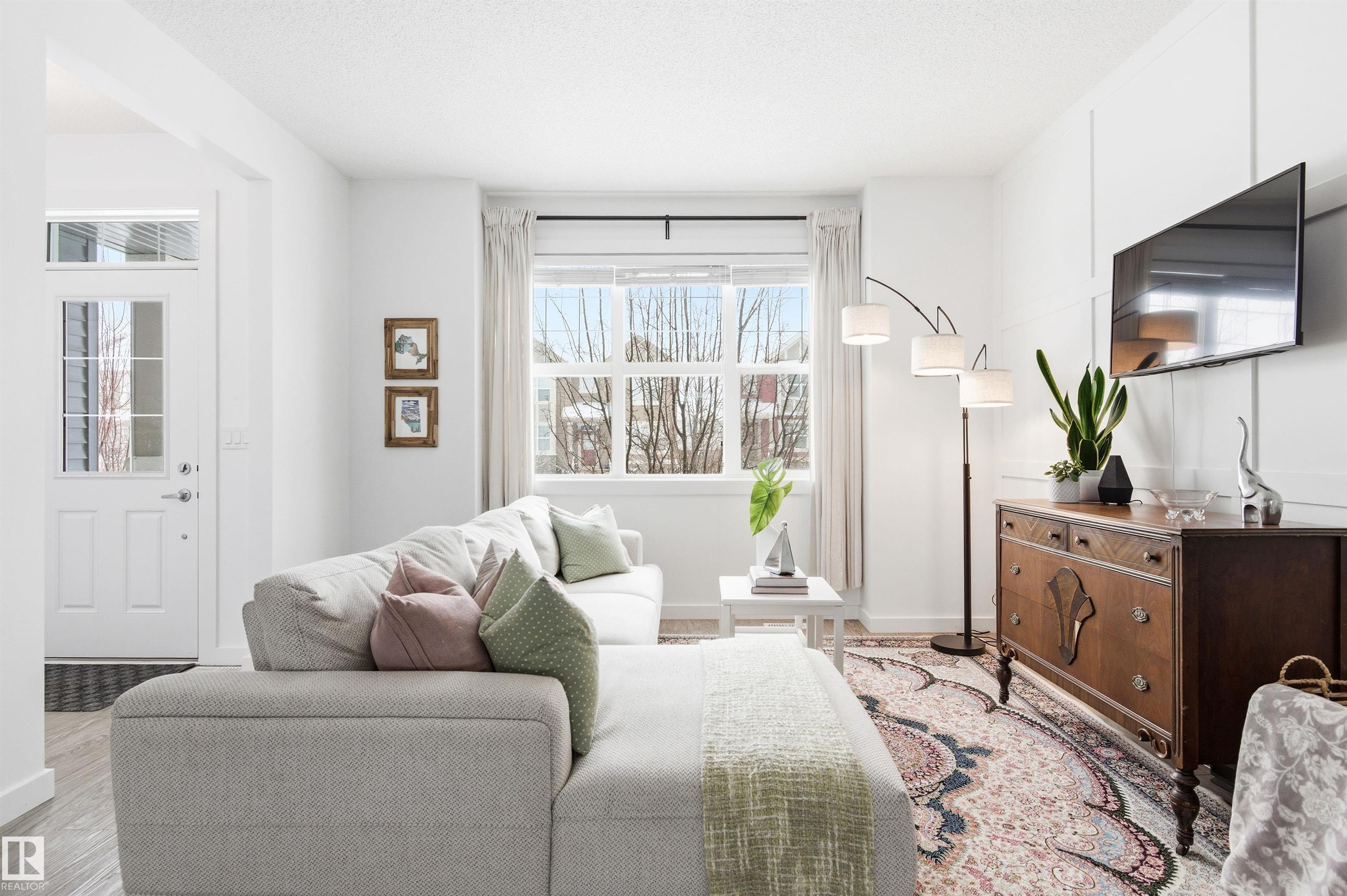 Stylish and functional attached townhouse-style home in a highly convenient Southwest Edmonton location! Offering over 1,400 sq ft of well-designed living space, this property features a bright and open main floor with a spacious living room, dedicated dining area, and a practical kitchen complete with pantry and access to the sunny south-facing backyard. Upstairs, you'll find a generous primary bedroom with walk-in closet and ensuite, a second bedroom, full bathroom, and a versatile den/office space perfect for working from home. Enjoy everyday comfort with AIR CONDITIONING, plus the added value of a DOUBLE GARAGE and NO CONDO FEES. The sunny south backyard is ideal for relaxing or entertaining. Located close to schools, parks, shopping, and major commuter routes, this is an excellent opportunity for first-time buyers or young families seeking a move-in-ready home in a prime SW location!