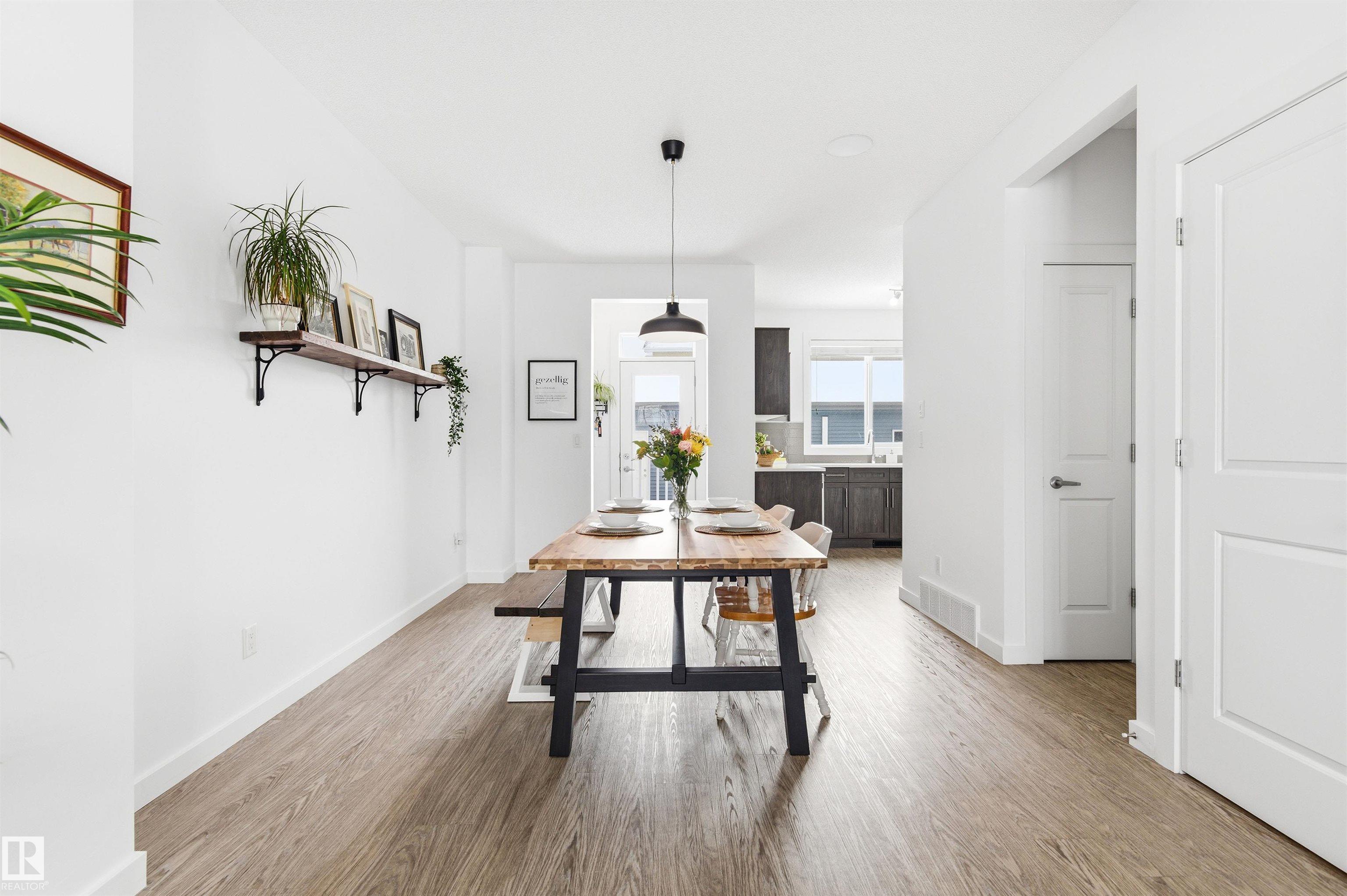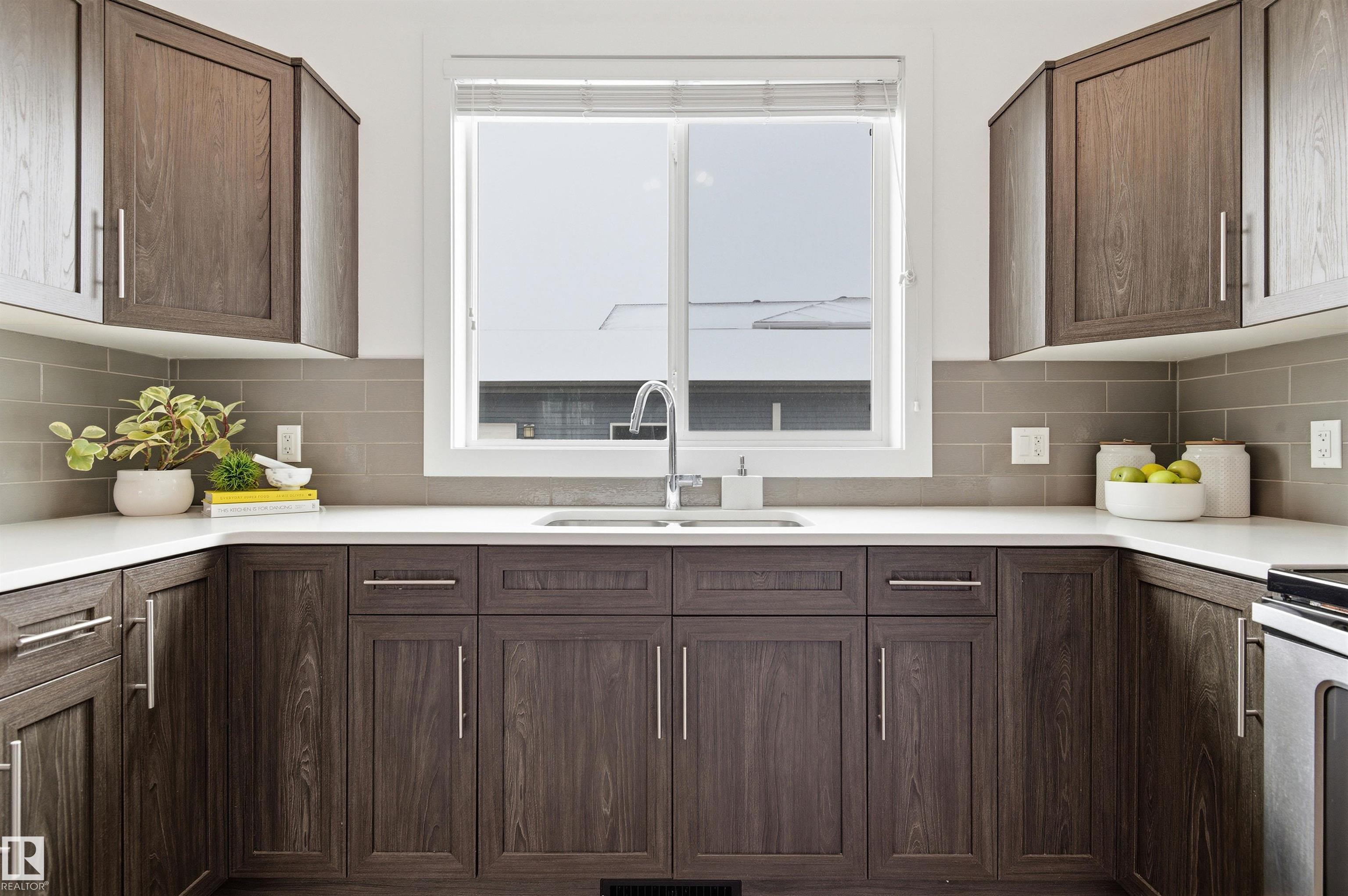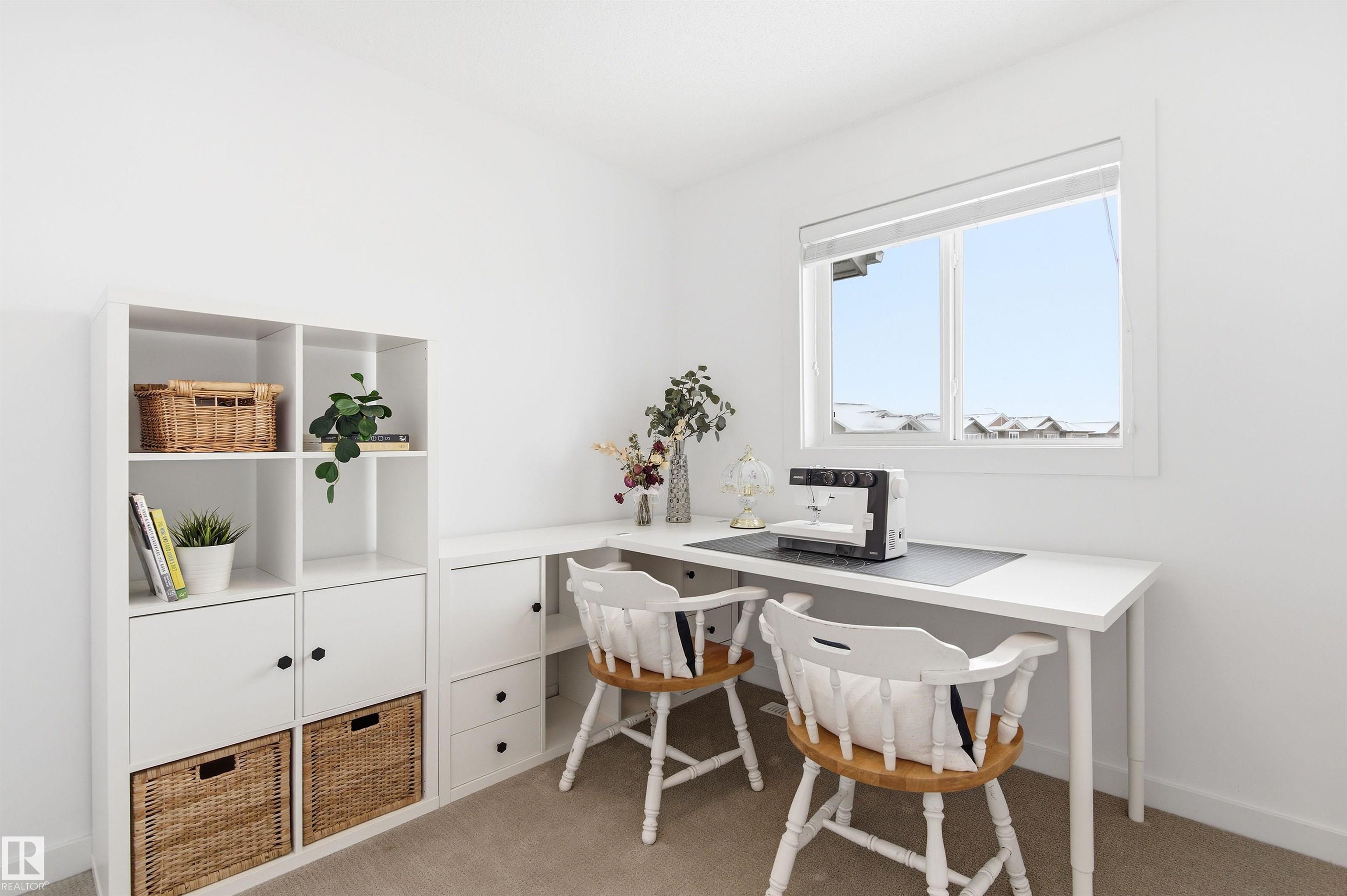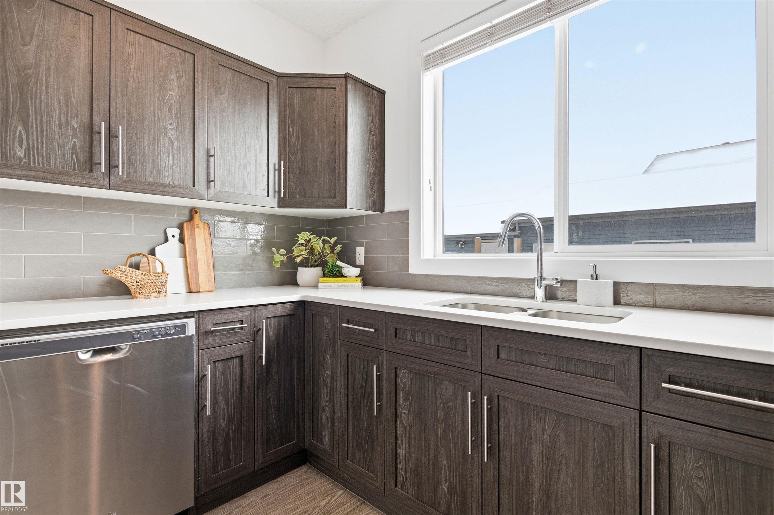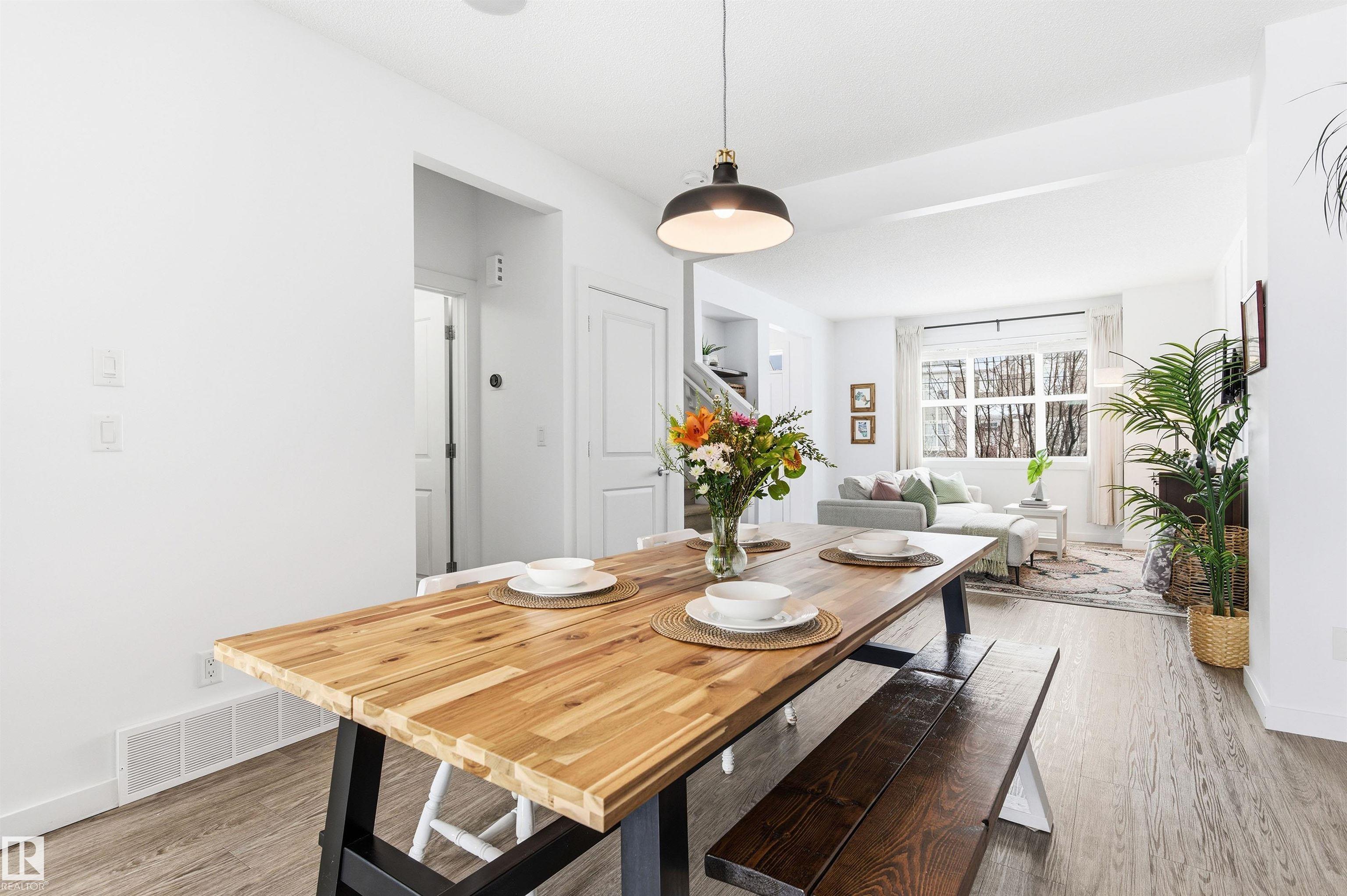 Stylish and functional attached townhouse-style home in a highly convenient Southwest Edmonton location! Offering over 1,400 sq ft of well-designed living space, this property features a bright and open main floor with a spacious living room, dedicated dining area, and a practical kitchen complete with pantry and access to the sunny south-facing backyard. Upstairs, you'll find a generous primary bedroom with walk-in closet and ensuite, a second bedroom, full bathroom, and a versatile den/office space perfect for working from home. Enjoy everyday comfort with AIR CONDITIONING, plus the added value of a DOUBLE GARAGE and NO CONDO FEES. The sunny south backyard is ideal for relaxing or entertaining. Located close to schools, parks, shopping, and major commuter routes, this is an excellent opportunity for first-time buyers or young families seeking a move-in-ready home in a prime SW location!