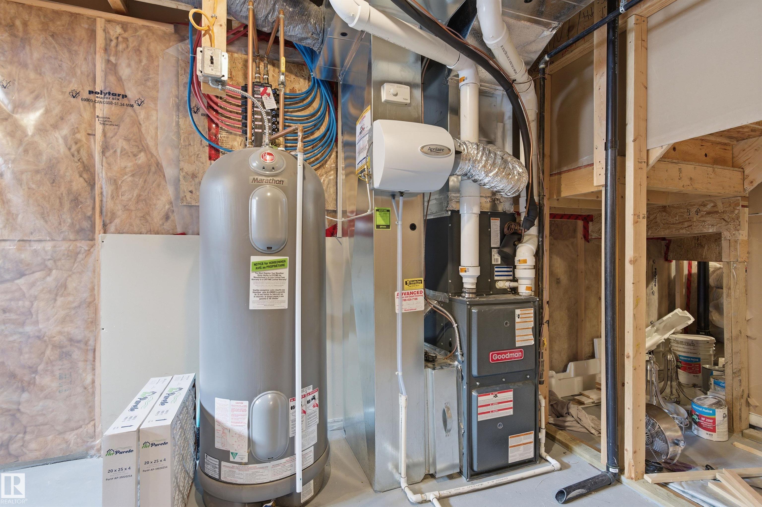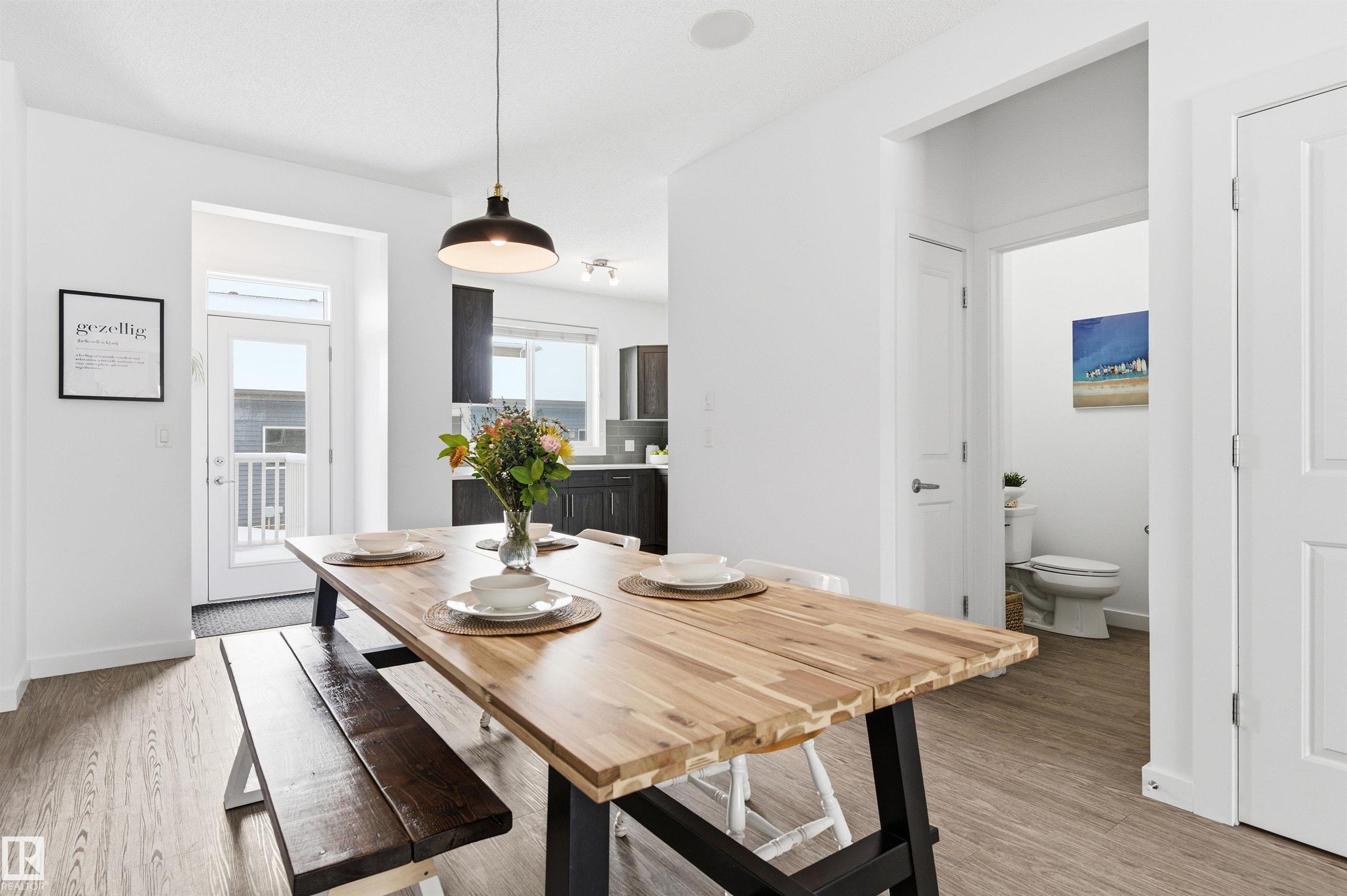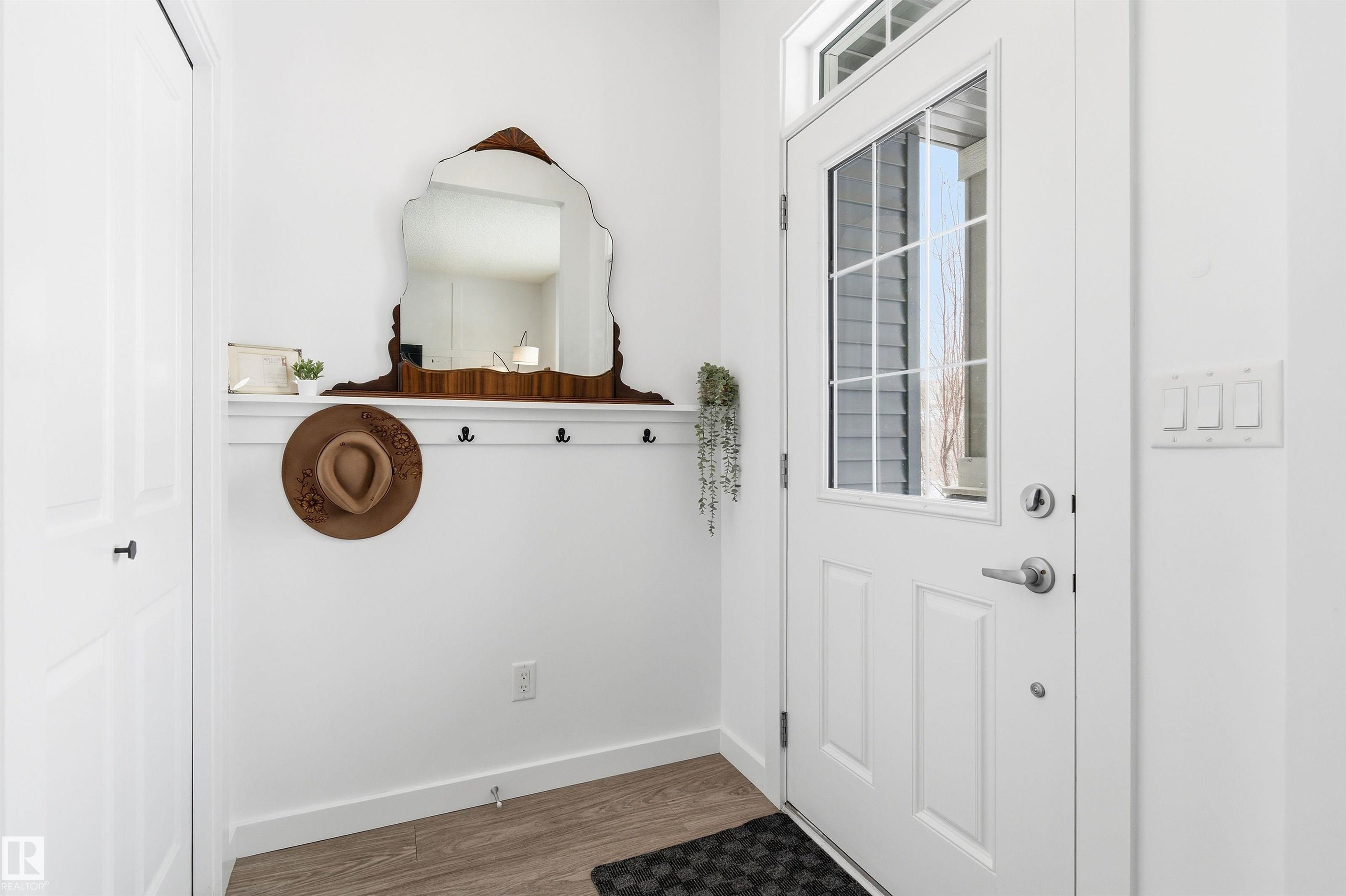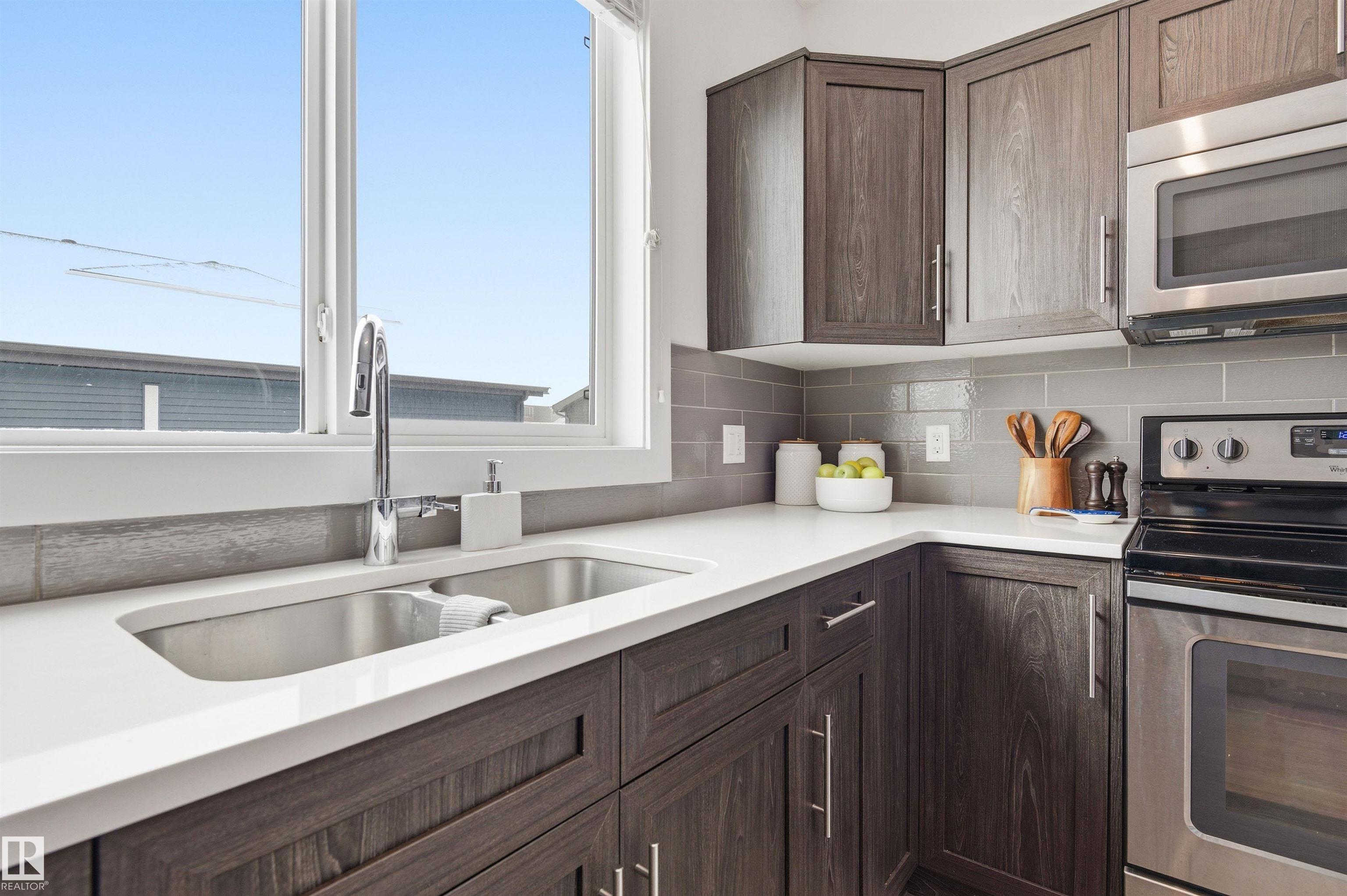 Stylish and functional attached townhouse-style home in a highly convenient Southwest Edmonton location! Offering over 1,400 sq ft of well-designed living space, this property features a bright and open main floor with a spacious living room, dedicated dining area, and a practical kitchen complete with pantry and access to the sunny south-facing backyard. Upstairs, you'll find a generous primary bedroom with walk-in closet and ensuite, a second bedroom, full bathroom, and a versatile den/office space perfect for working from home. Enjoy everyday comfort with AIR CONDITIONING, plus the added value of a DOUBLE GARAGE and NO CONDO FEES. The sunny south backyard is ideal for relaxing or entertaining. Located close to schools, parks, shopping, and major commuter routes, this is an excellent opportunity for first-time buyers or young families seeking a move-in-ready home in a prime SW location!