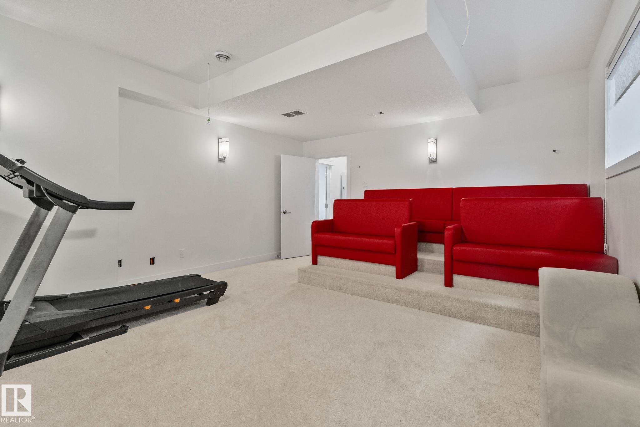 Step into one of Jagare Ridge's most impressive homes, where prestige meets space and thoughtful design. Set on a walkout lot with golf course views, this home offers over 4600 sq ft of finished living space across three levels, including a walkout basement with a second kitchen and rear entrance. The moment you enter, the two-storey open foyer and glass railings fill the home with light and create an expansive, airy feel. Main-floor living areas feature two fireplaces, generous gathering spaces, and a dedicated office, while upstairs provides spacious bedrooms for the whole family. The basement is designed for entertainment, with tiered theatre-style seating in the media room, and added flexibility for older children or extended family. Step outside to the large sun deck and patio, and enjoy the premium surroundings steps from the golf course. A high-efficiency solar system reduces energy costs and adds lasting value, making this home both luxurious and smartly designed.