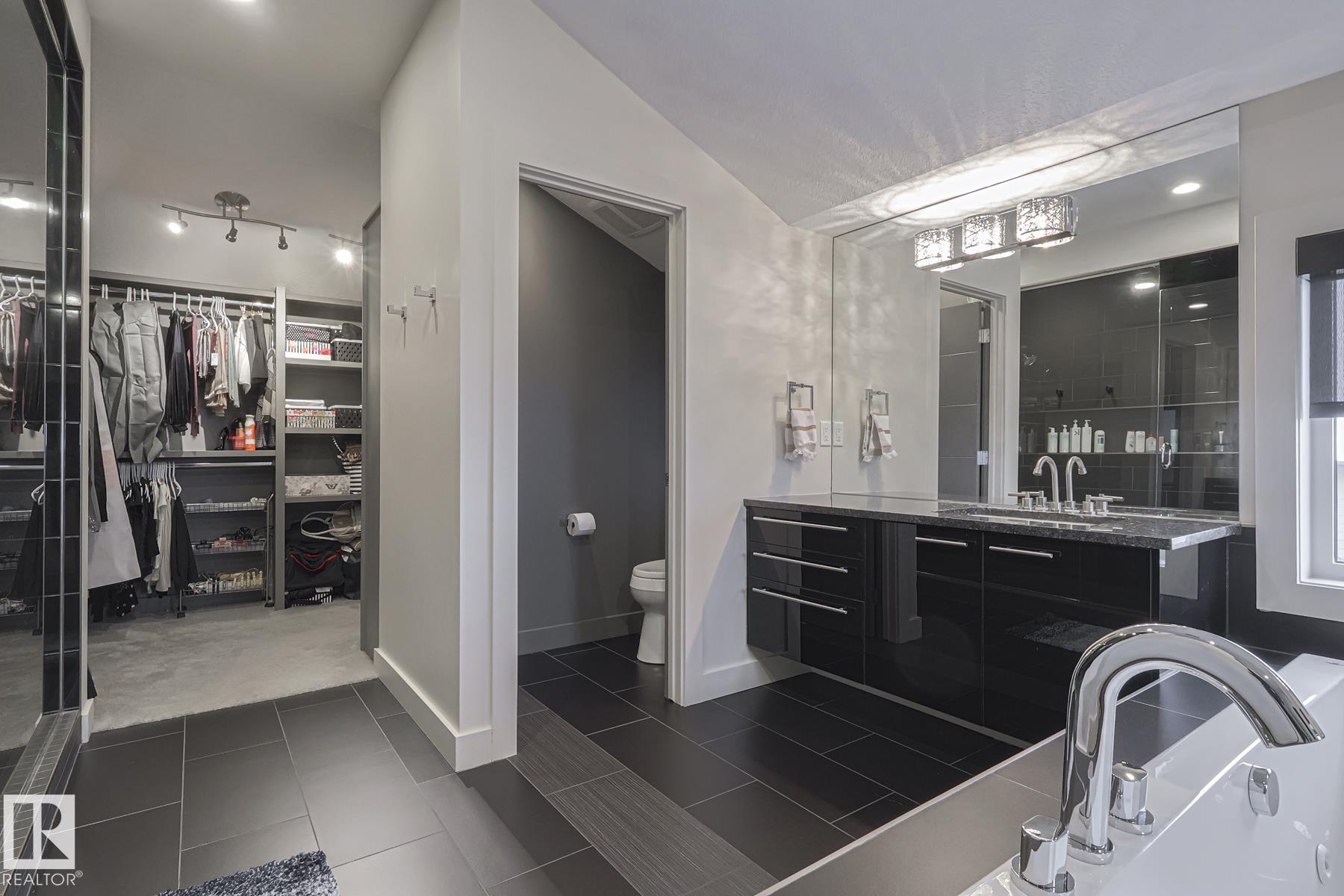 MODERN SHOWHOME CONDITION IN PRESTIGIOUS JAGARE RIDGE, 5 bedrooms and 4 and half bathrooms home with TRIPLE tandem ATTACHED GARAGE. Total over 4,060 sq ft of living space. Designed with attention to details - MANY UPGRADES - real hardwood floors, oversized windows, extra deep closet spaces, custom window coverings, and more. STUNNING KITCHEN offers Ceasarstone countertops, upgraded appliances - brand new built-in microwave, built-in oven, gas stove, integrated hood fan. Stylish cabinets and backsplash. Spacious living room open to the kitchen and breakfast nook offers modern gas fireplace. MAIN FLOOR OFFICE / BEDROOM. Upstairs family room leads to 4 bedrooms, two of them with ensuites, laundry room with generous storage space. PRIMARY BEDROOM SPA LIKE ENSUITE with huge jacuzzi, sinks for her and him, glass facing shower with many shower heads, and walk-in closet. FULLY FINISHED BASEMENT offers wet bar, designated GYM, recreation room, bedroom and full bathroom. Walking distance to park, lake, golf course.