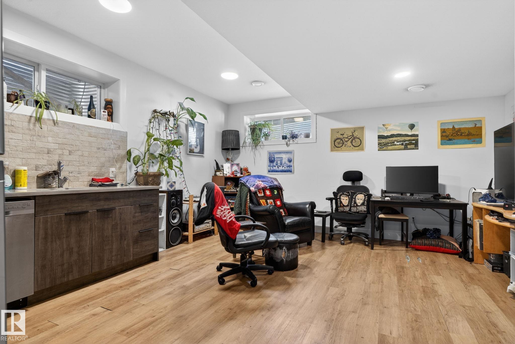 This centrally located, modern infill in the heart of Idylwylde sits along a beautiful, canopy tree-lined streets. Designed with meticulous attention to detail, the home offers timeless finishes and a functional floor plan packed with luxury upgrades, making it perfect for a growing family or a professional couple. The interior showcases engineered hardwood floors, a custom lighting package, upgraded fixtures, and custom-designed cabinetry. At the heart of the home is an oversized chef's kitchen featuring high-end appliances, a gas stove, a large island with seating for four, and a spacious area for dining and entertaining. Offering over 2700 square feet of fully developed living space, the layout includes three upstairs bedrooms, 3.5 baths, and a fully finished basement (with a separate entrance) complete with a second kitchen. Just a short 10-minute drive to downtown or Whyte Ave, this incredible property is finished with a stunning exterior and a double detached garage.