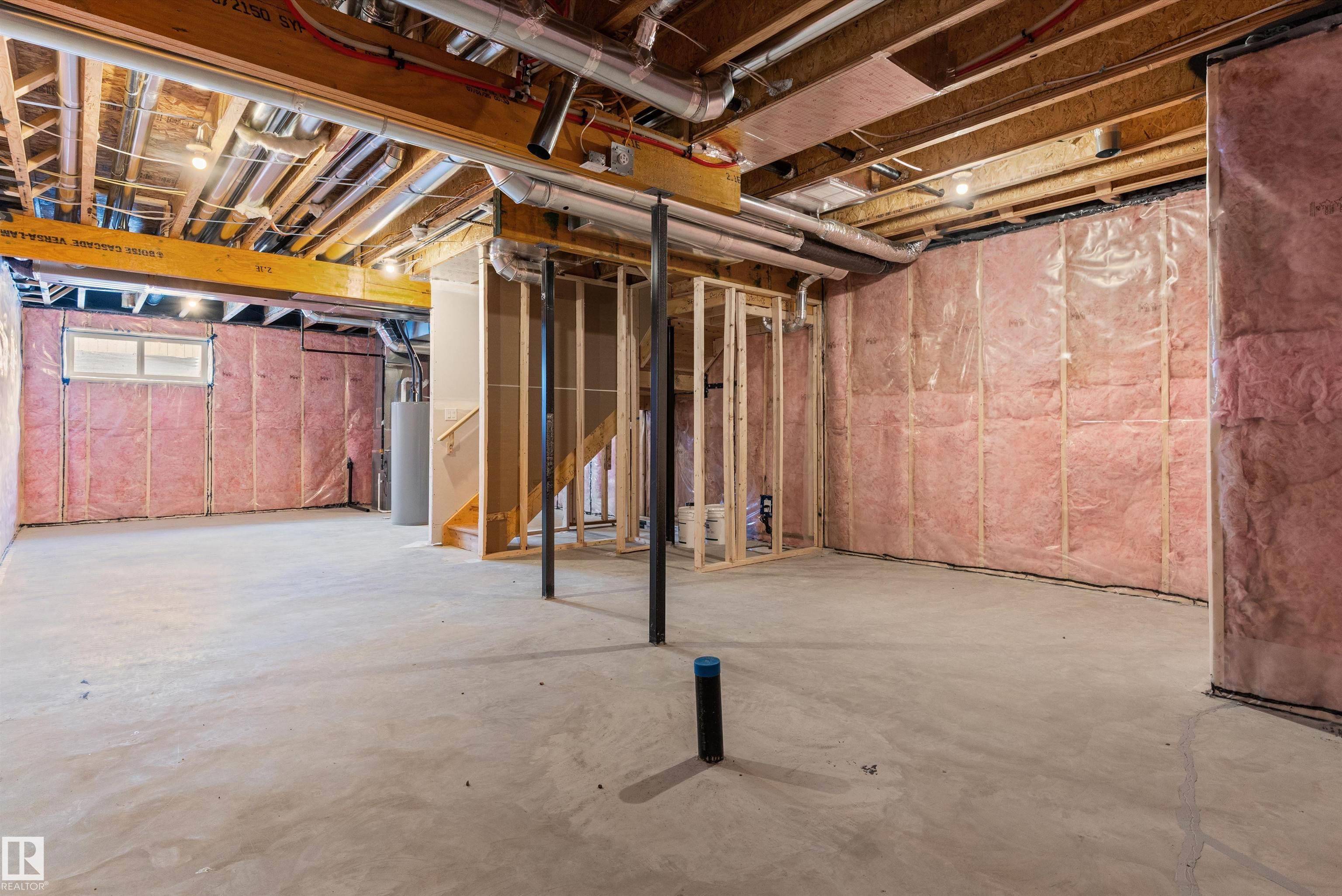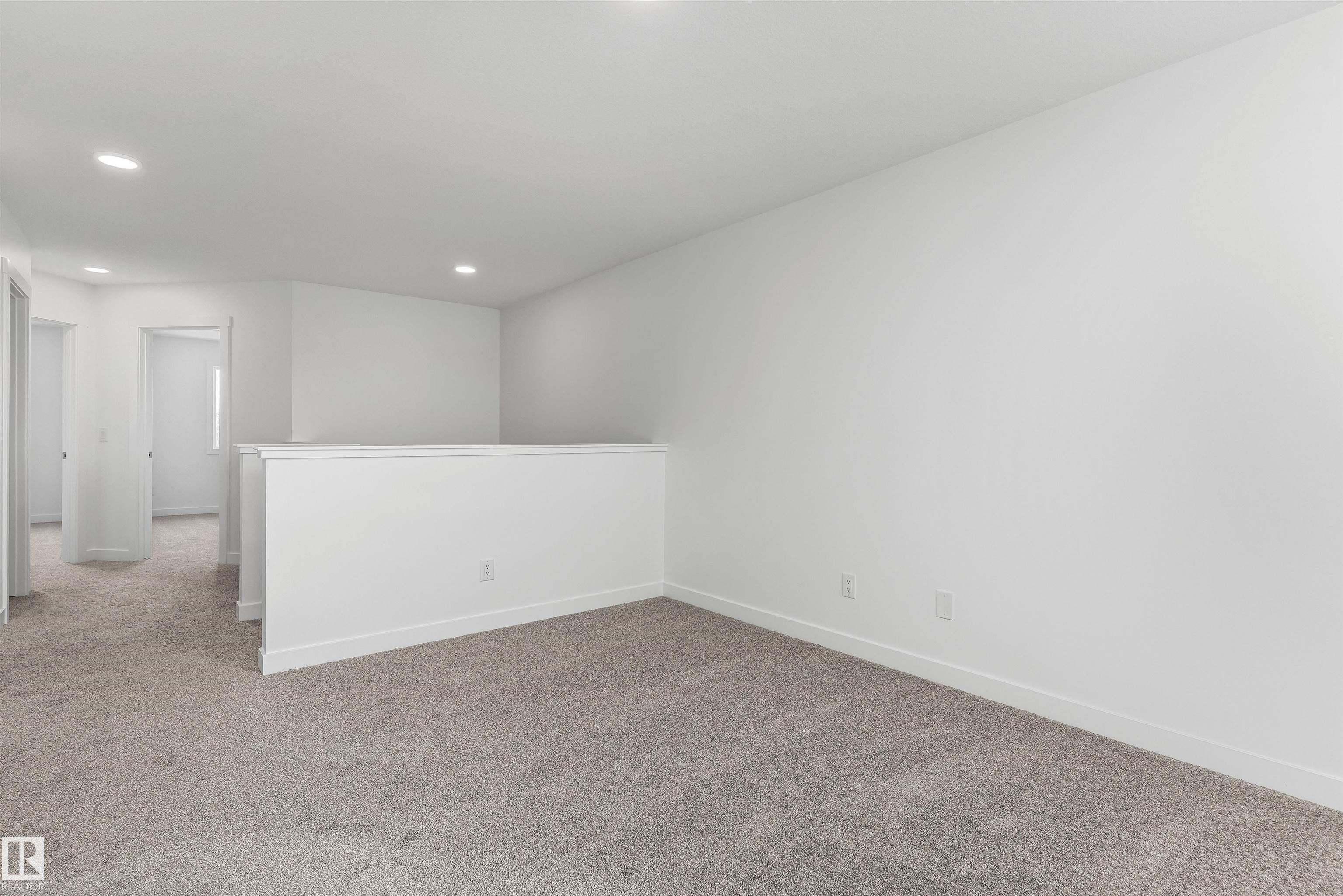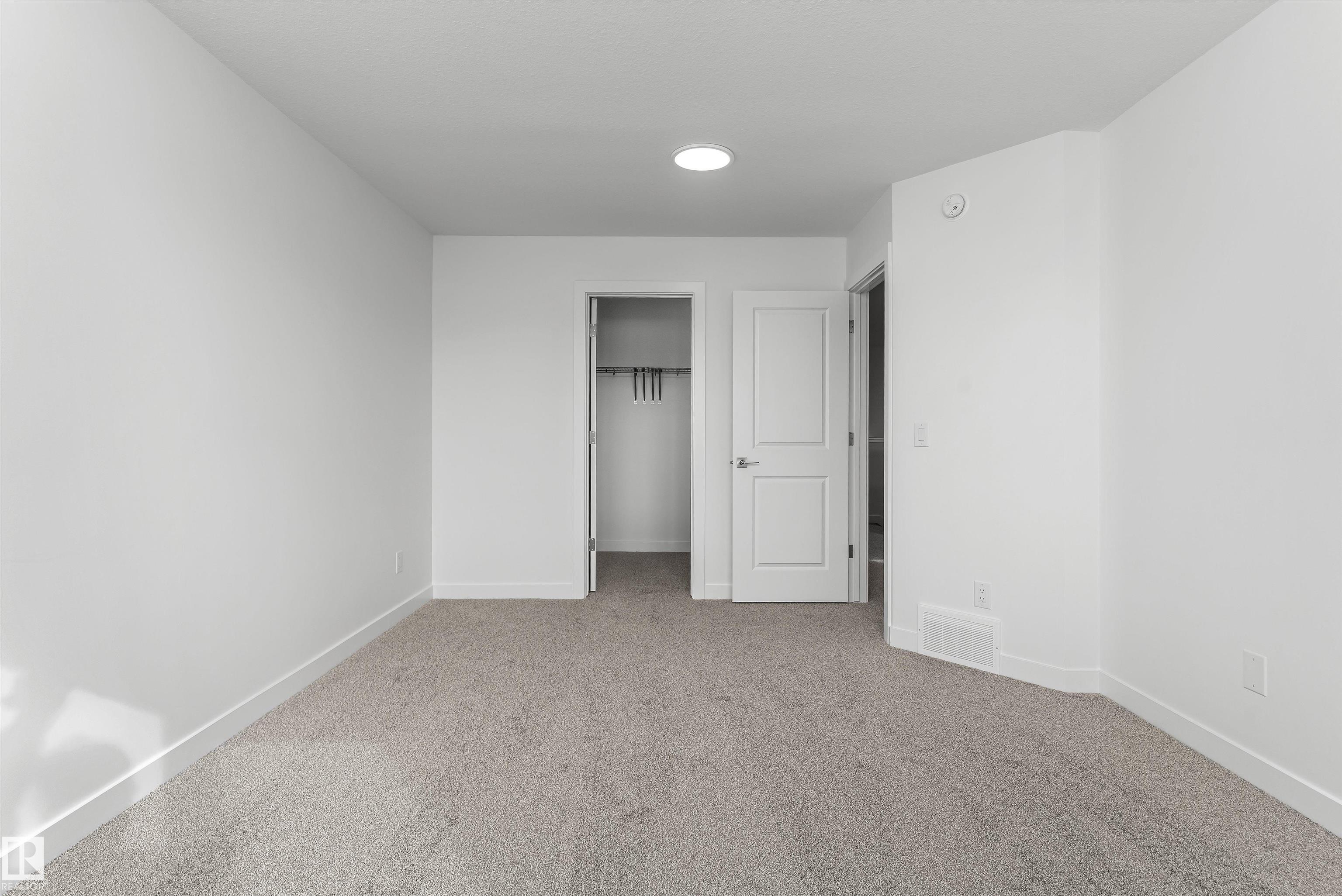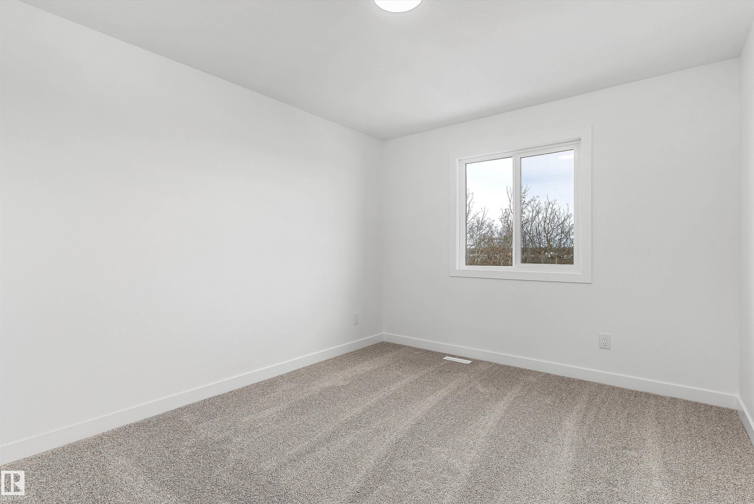 Built by Sterling Homes, this front-attached home in College Woods at Lakeview offers bright, modern living near trails, greenspace, and natural calm. Triple-pane windows and 9' ceilings fill the open-concept main floor with light, from the foyer to the spacious great room with electric fireplace. The kitchen features quartz countertops, a large island, ceiling-height cabinetry with crown moulding, chimney hood fan, built-in microwave, and corner pantry--ideal for daily living and entertaining. A garden door opens to the backyard with a convenient half bath on the main level. Upstairs, the primary suite includes a walk-in closet and 4-piece ensuite with double sinks and glass shower. A central bonus room, upper laundry, full bath, and two bedrooms complete the layout. Finished with luxury vinyl plank flooring, upgraded railings, side entrance, double attached garage with floor drain, and basement rough-ins, this home offers comfort in a peaceful, nature-inspired community.