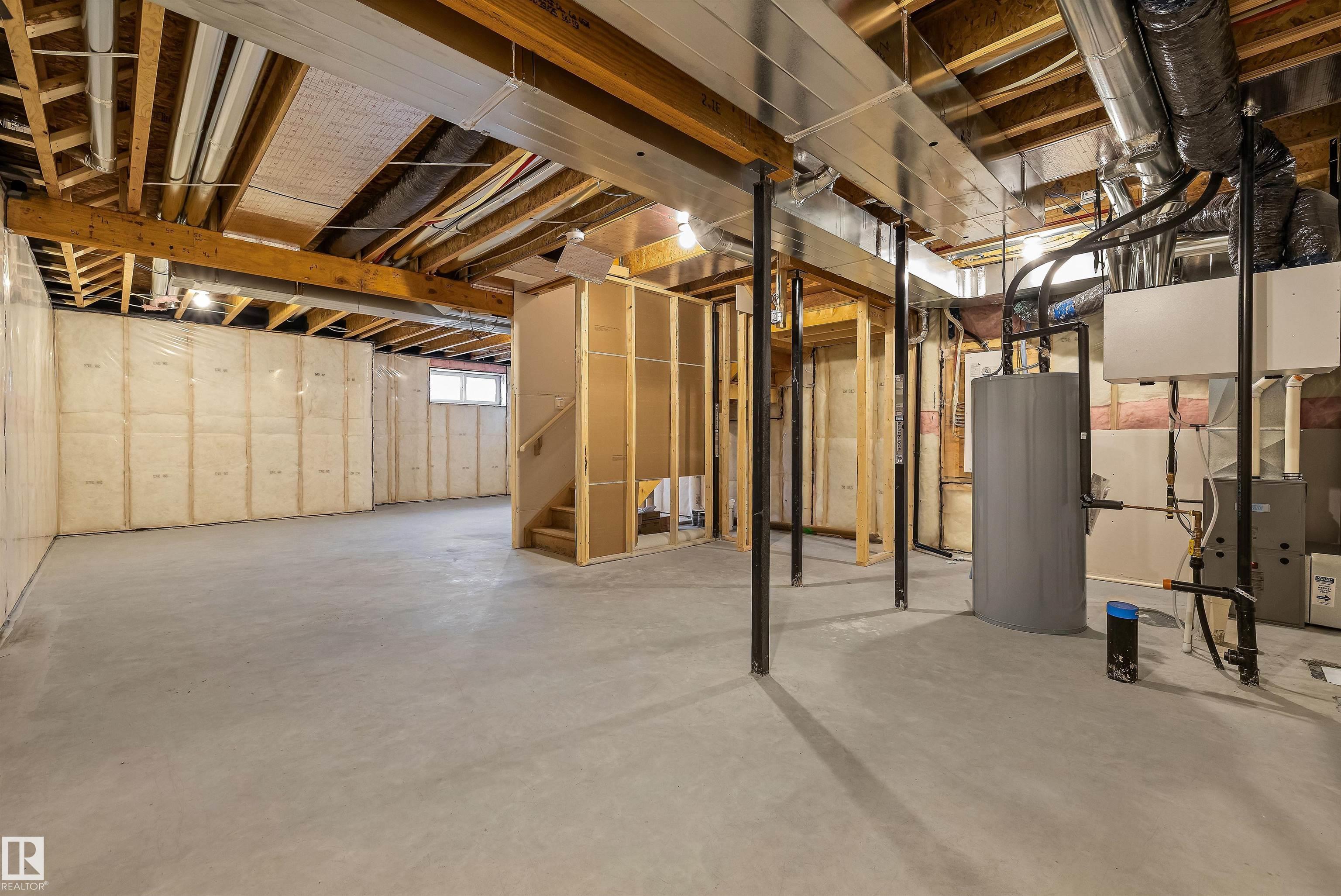 Built by Sterling Homes, this front-attached home in Lakeview offers bright, modern living with a family-friendly layout. Triple-pane windows and 9' ceilings enhance the open main floor, where a welcoming foyer leads to a stylish kitchen with quartz counters, a large island, ceiling-height cabinetry, chimney hood fan, built-in microwave, and walk-through pantry to the mudroom. The great room features an electric fireplace and large rear windows, with patio doors off the dining nook. A half bath and built-in bench add convenience. Upstairs includes a spacious primary suite with walk-in closet and 3-piece ensuite, bonus room, full bath, laundry, and two bedrooms. LVP flooring, upgraded railings, side entrance, double garage with drain, and basement rough-ins complete this practical, stylish home.