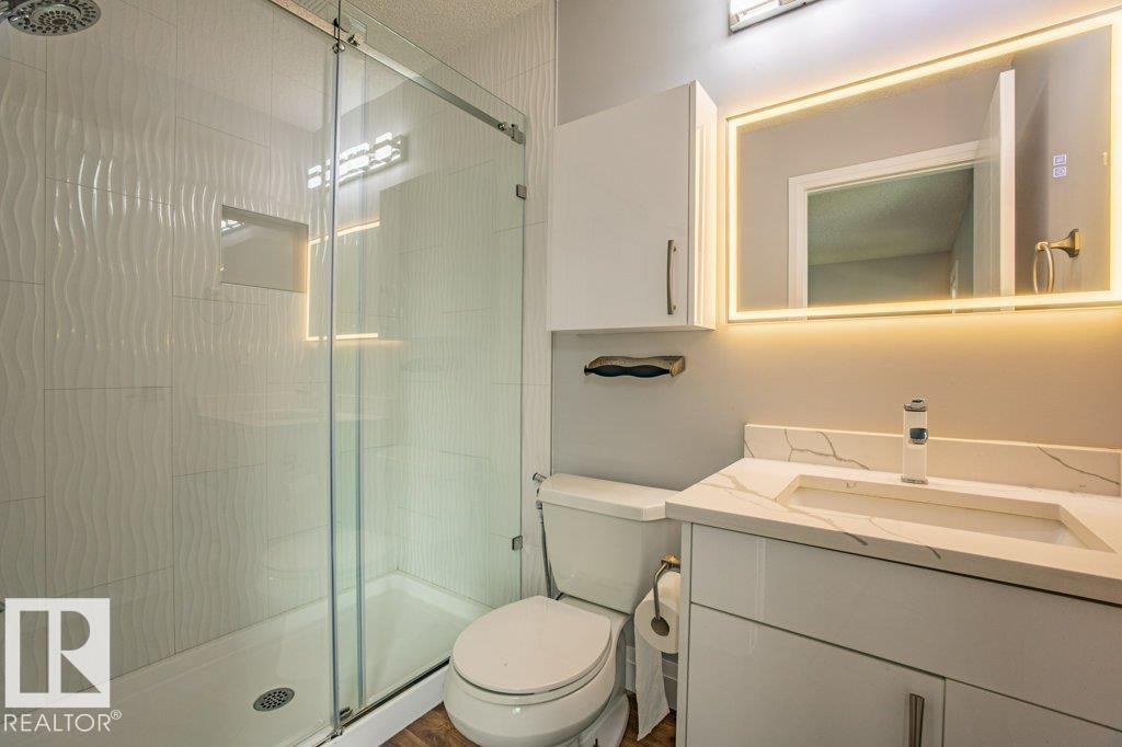 Fully Renovated Bi-Level Home with Modern Upgrades in Larkspur. This beautifully updated bi-level home offers a modern kitchen with sleek waterfall countertops,high-end appliances, and a spacious eating area that opens to a raised deck--perfect for outdoor entertaining. Upstairs, you'll find 3 generous bedrooms and 2 fully renovated bathrooms, combining comfort and contemporary style. The cozy living room provides a warm, inviting space for relaxation. Additional features include a double attached garage, well-maintained landscaping, and a concrete pathway leading to the fully fenced backyard, ensuring privacy and easy access from both sides. Central air conditioning adds comfort year-round. The finished basement is a standout, with a large rec room and fireplace, 2 additional bedrooms, a full bath, and a storage room. With a prime location near shopping, schools, and the Whitemud Freeway, this home offers both convenience and charm. You'll be impressed by the quality and attention to details throughout!