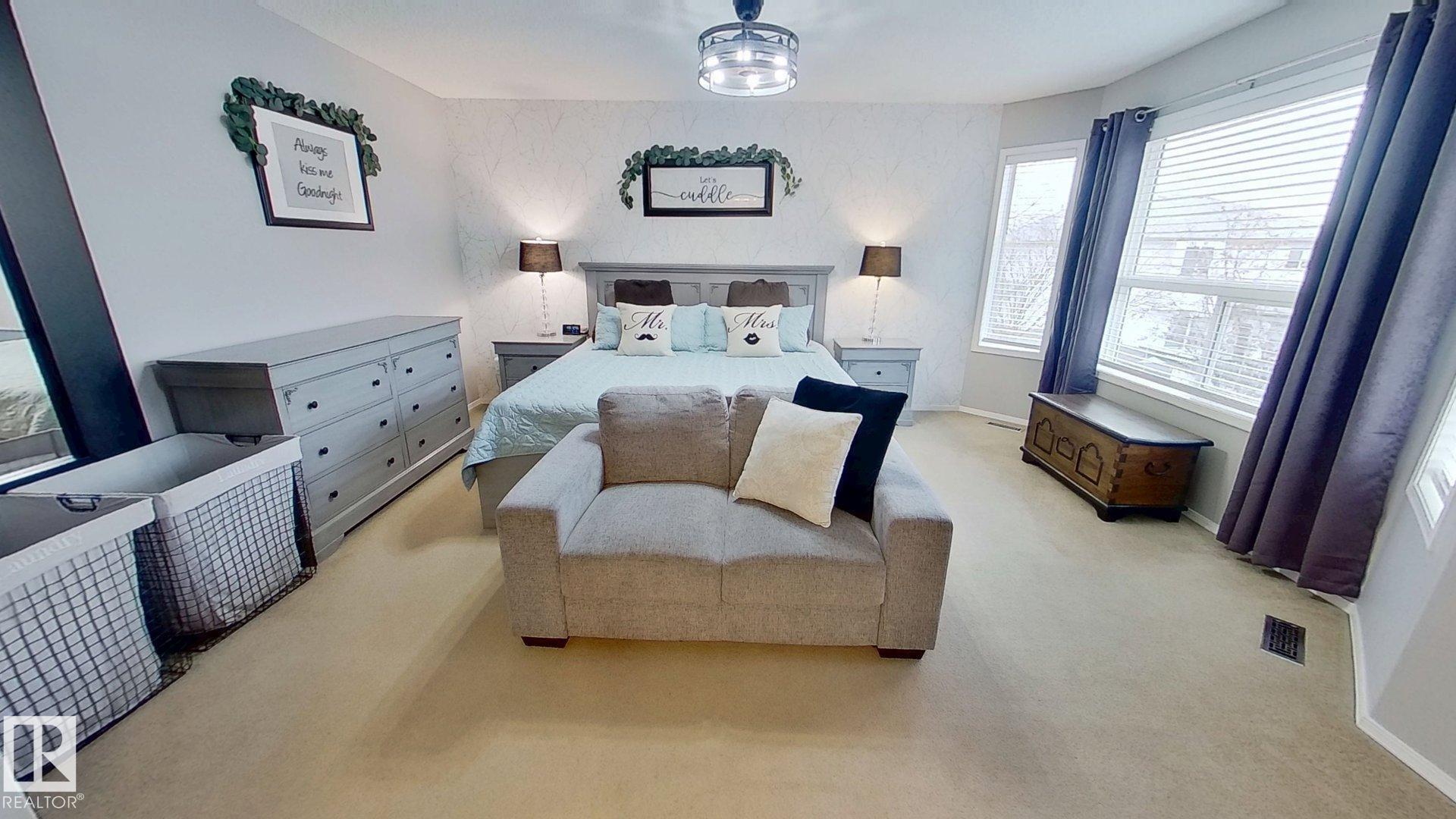 LOCATION LOCATION LOCATION Cul-de-sac. Backs on to green space with 2 schools (Velma Baker K-6 & Thelma Chalifoux 7-9) with gate access, Larkspur skating rink, soccer fields and off leash. 1500 Sq above ground. Upper level has large master with seating area walk-in closet and ensuite, 2bedrooms and full bathroom. Main floor, newly renovated, open concept, granite kitchen counters, stainless steel appliances, dining room, main floor 2 piece bathroom. Mudroom entry off garage, newer washer/dryer. Walkout of dining to a large covered outdoor living room on a 12ž 18 composite deck, lower paved stone deck with bar and canopy. Artificial turf 19'x7' fenced dog run. 8ž10 shed with large partially treed private lot. Basement full gym, games room, bedroom and 3 piece bathroom. New roof 2018, new he furnace 2021, new central AC 2023, forced air natural gas heated/insulated garage, new fence 2023, water tank replaced in 2015 with humidifier. Freshly painted, neutral decor on main and upper floors