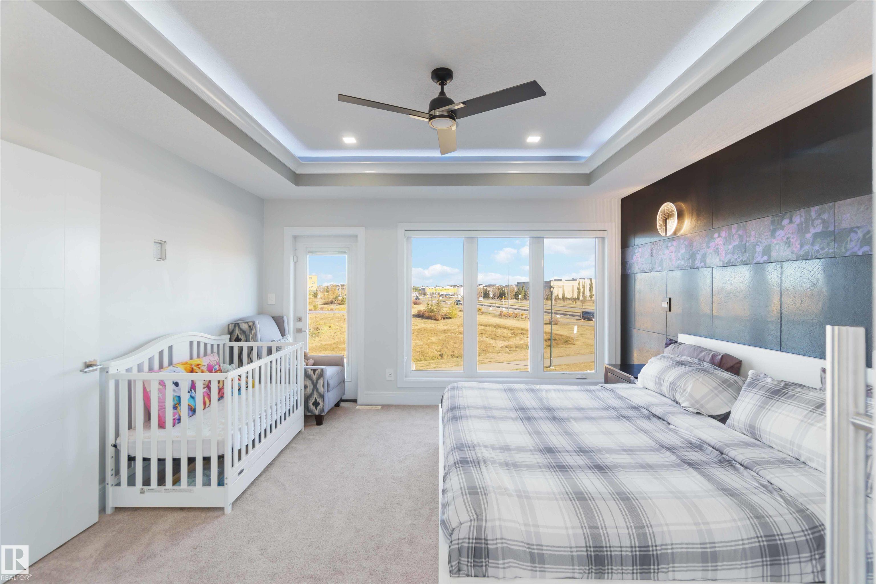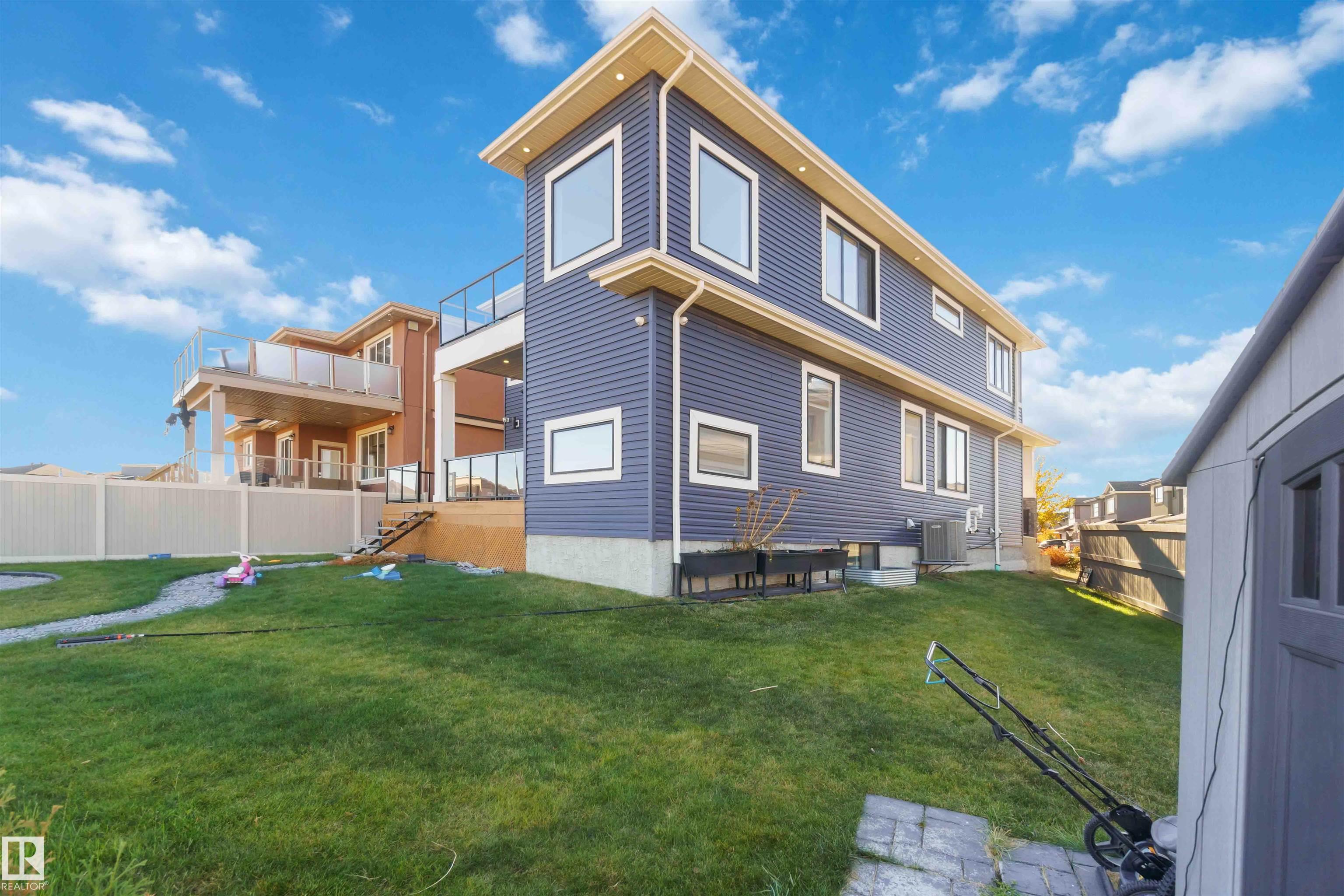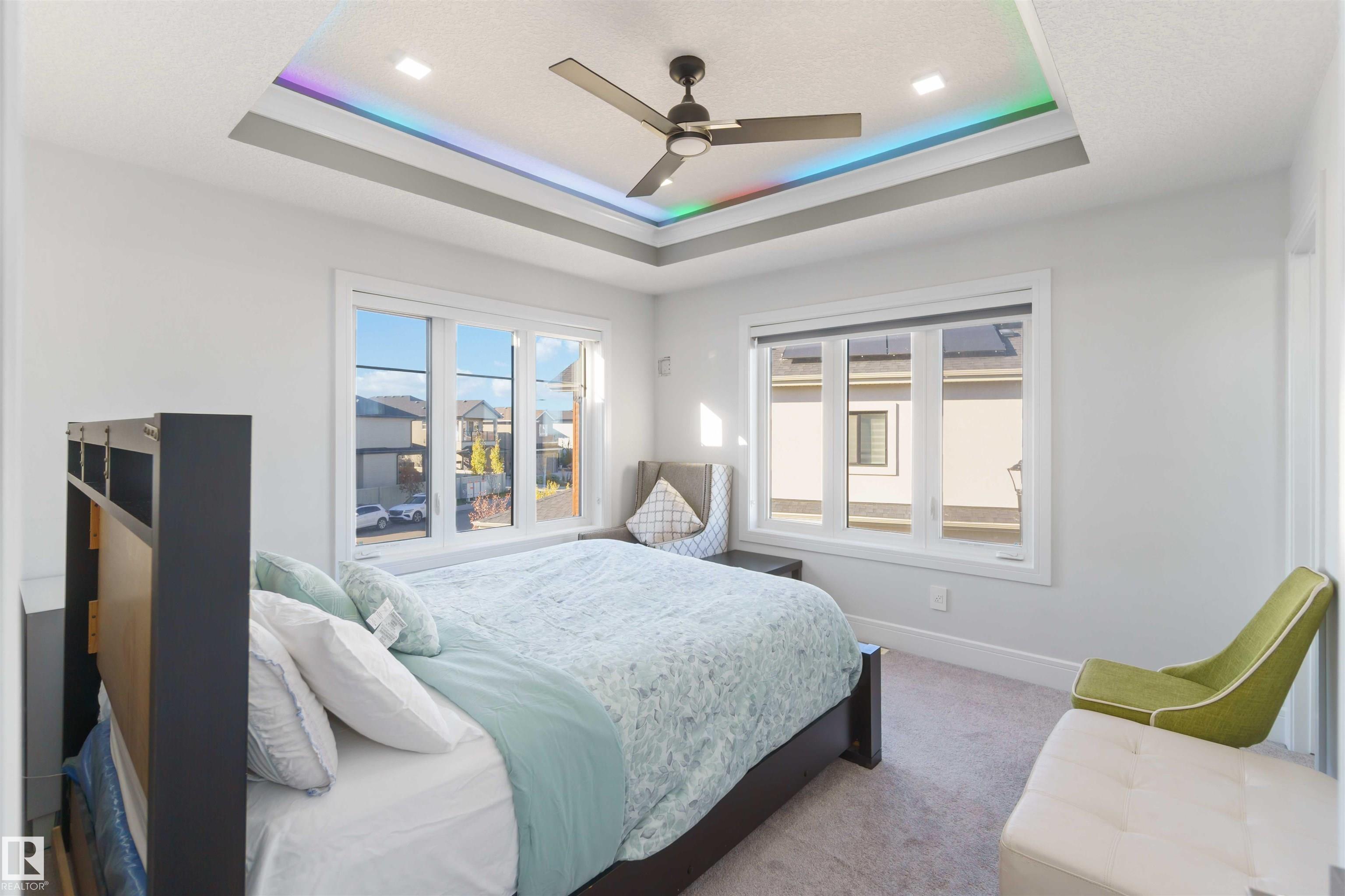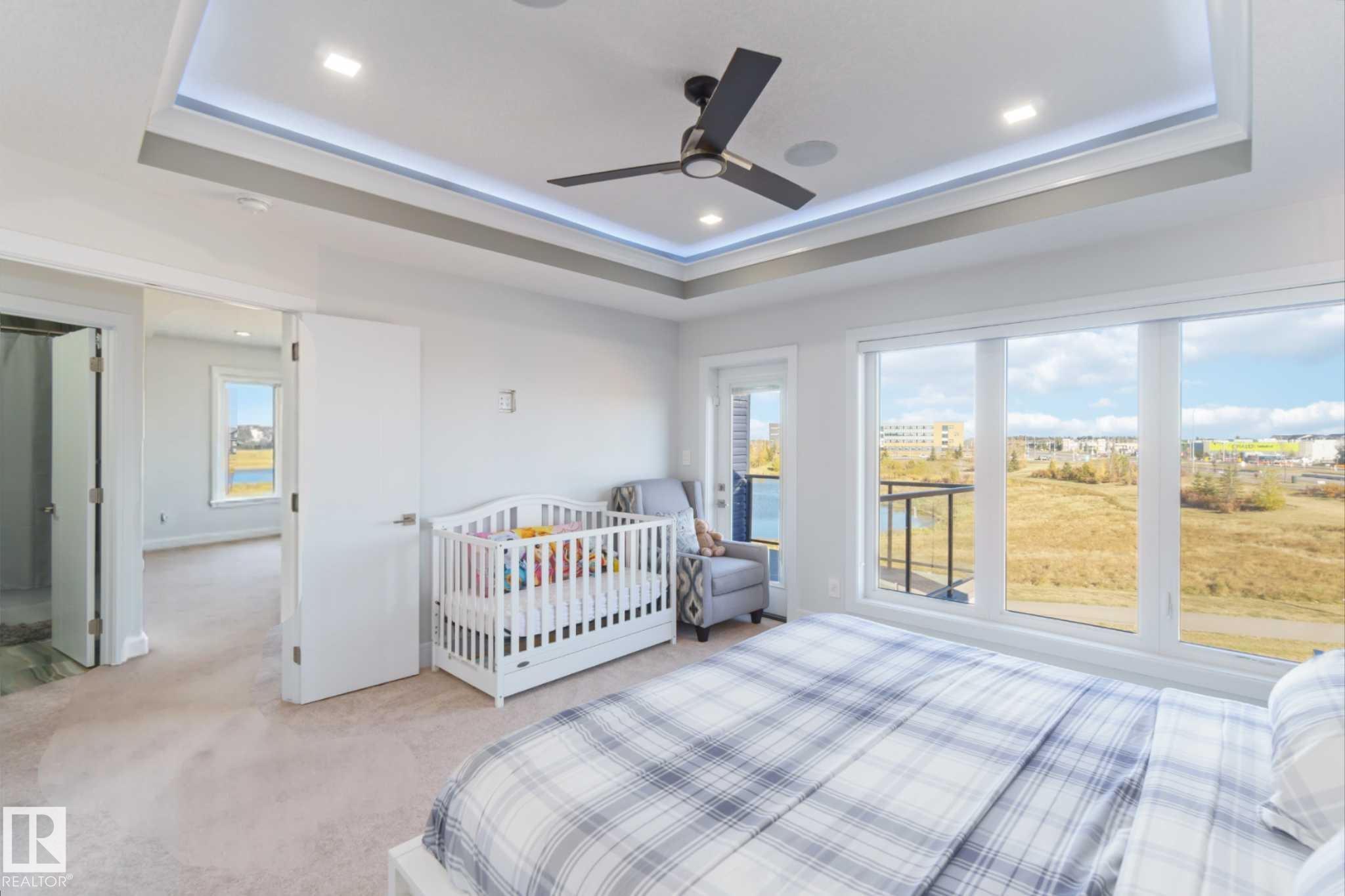 Welcome to this stunning 6 bed, 5.5 bath luxury 2-storey home in the desirable Laurel community! The main floor boasts soaring 10' ceilings, a spacious living area, large dining room, a bedroom with ensuite, 2-pc bath, and a chef's dream kitchen featuring a granite island with induction cooktop and stainless steel appliances. Beautiful tile flooring throughout. Upstairs offers a spacious primary suite with walk-in closet & spa-like ensuite, plus two more bedrooms--one with an ensuite--and another full bath. Enjoy in-floor heating in both upstairs ensuites and relax on either of the two balconies. The legal 2 bed, 1 bath basement suite with tenants already in place offers fantastic income potential. Outside, enjoy a partially covered deck, oversized double garage, and a huge backyard backing onto a pond and walking trail. Extras include pot lights throughout, solar panel & central vac rough-ins. Close to schools, shopping, parks, and quick access to Whitemud & Anthony Henday. All this home needs is YOU!
