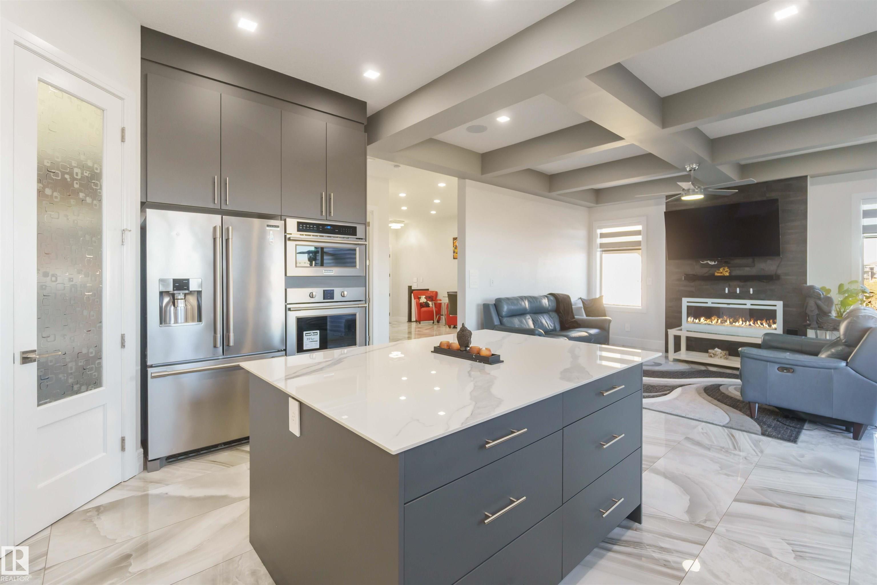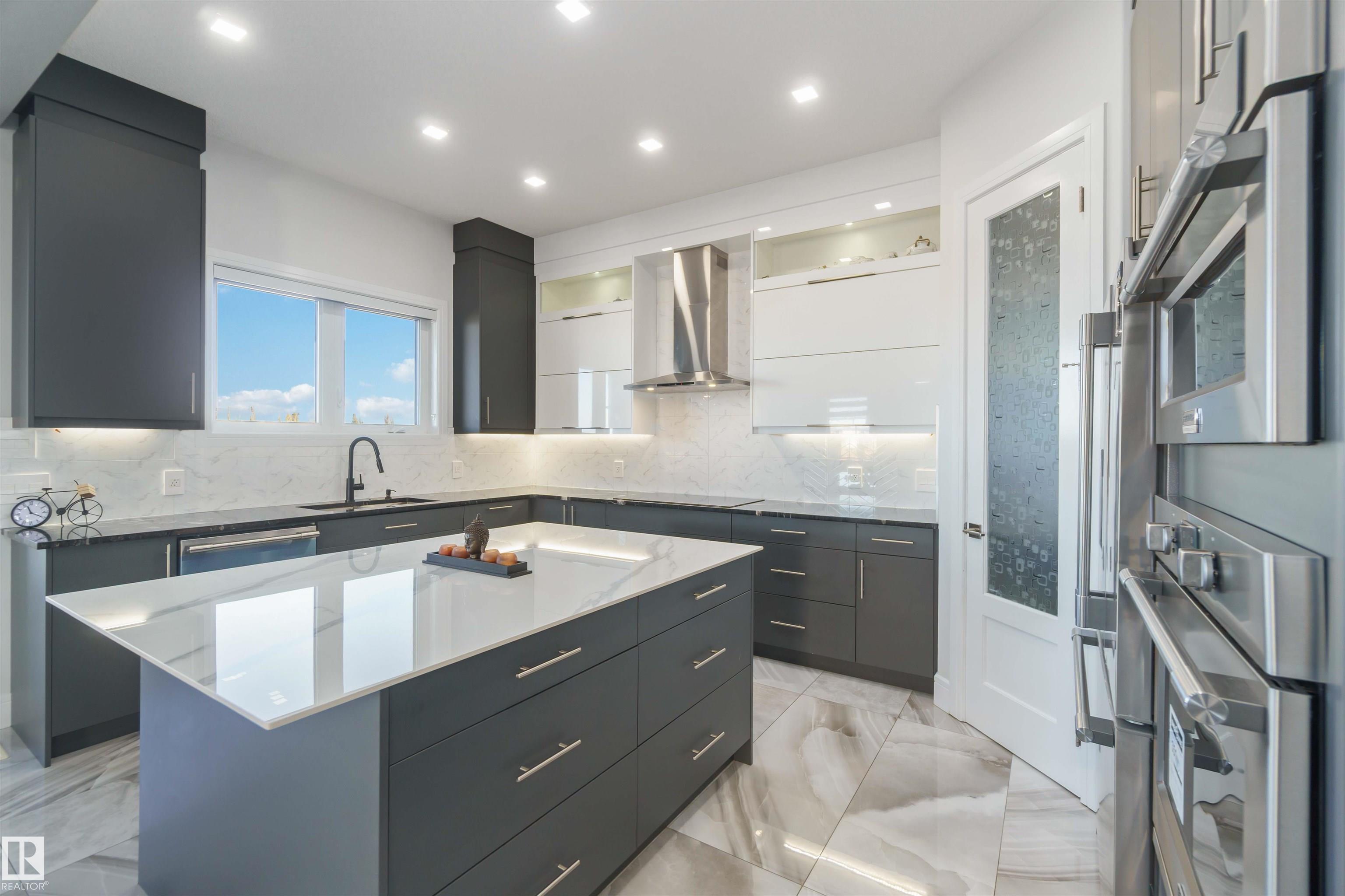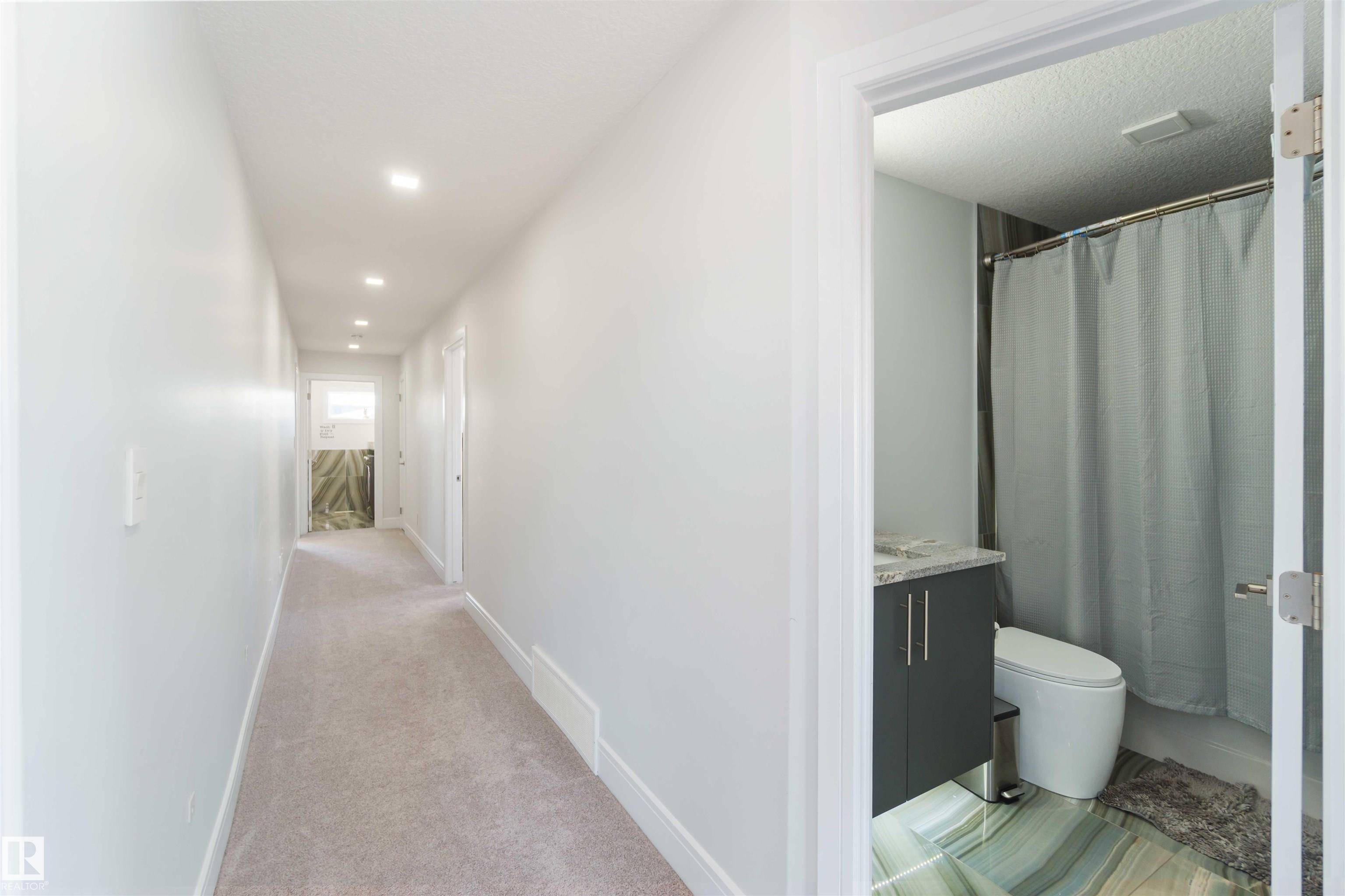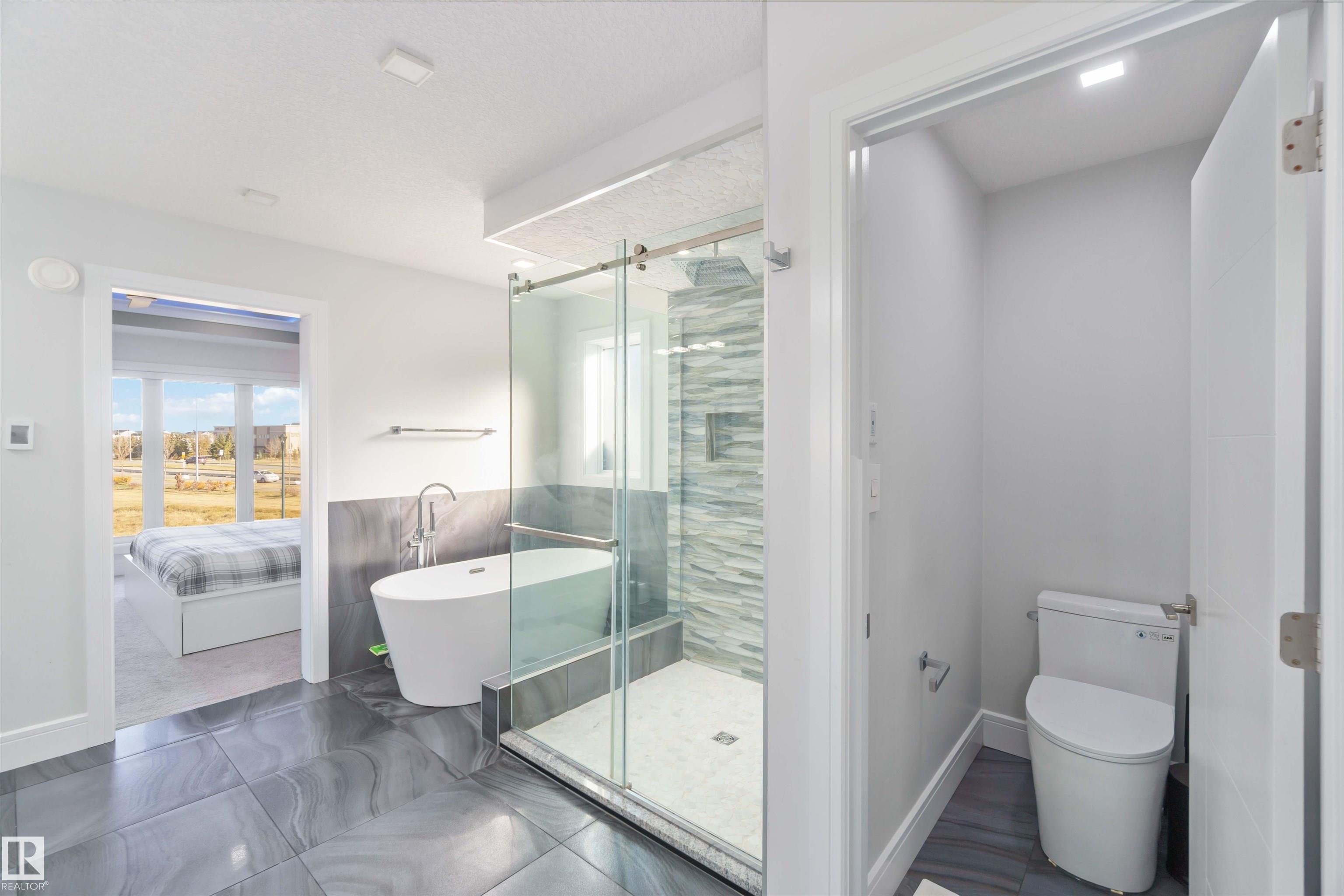 Welcome to this stunning 6 bed, 5.5 bath luxury 2-storey home in the desirable Laurel community! The main floor boasts soaring 10' ceilings, a spacious living area, large dining room, a bedroom with ensuite, 2-pc bath, and a chef's dream kitchen featuring a granite island with induction cooktop and stainless steel appliances. Beautiful tile flooring throughout. Upstairs offers a spacious primary suite with walk-in closet & spa-like ensuite, plus two more bedrooms--one with an ensuite--and another full bath. Enjoy in-floor heating in both upstairs ensuites and relax on either of the two balconies. The legal 2 bed, 1 bath basement suite with tenants already in place offers fantastic income potential. Outside, enjoy a partially covered deck, oversized double garage, and a huge backyard backing onto a pond and walking trail. Extras include pot lights throughout, solar panel & central vac rough-ins. Close to schools, shopping, parks, and quick access to Whitemud & Anthony Henday. All this home needs is YOU!