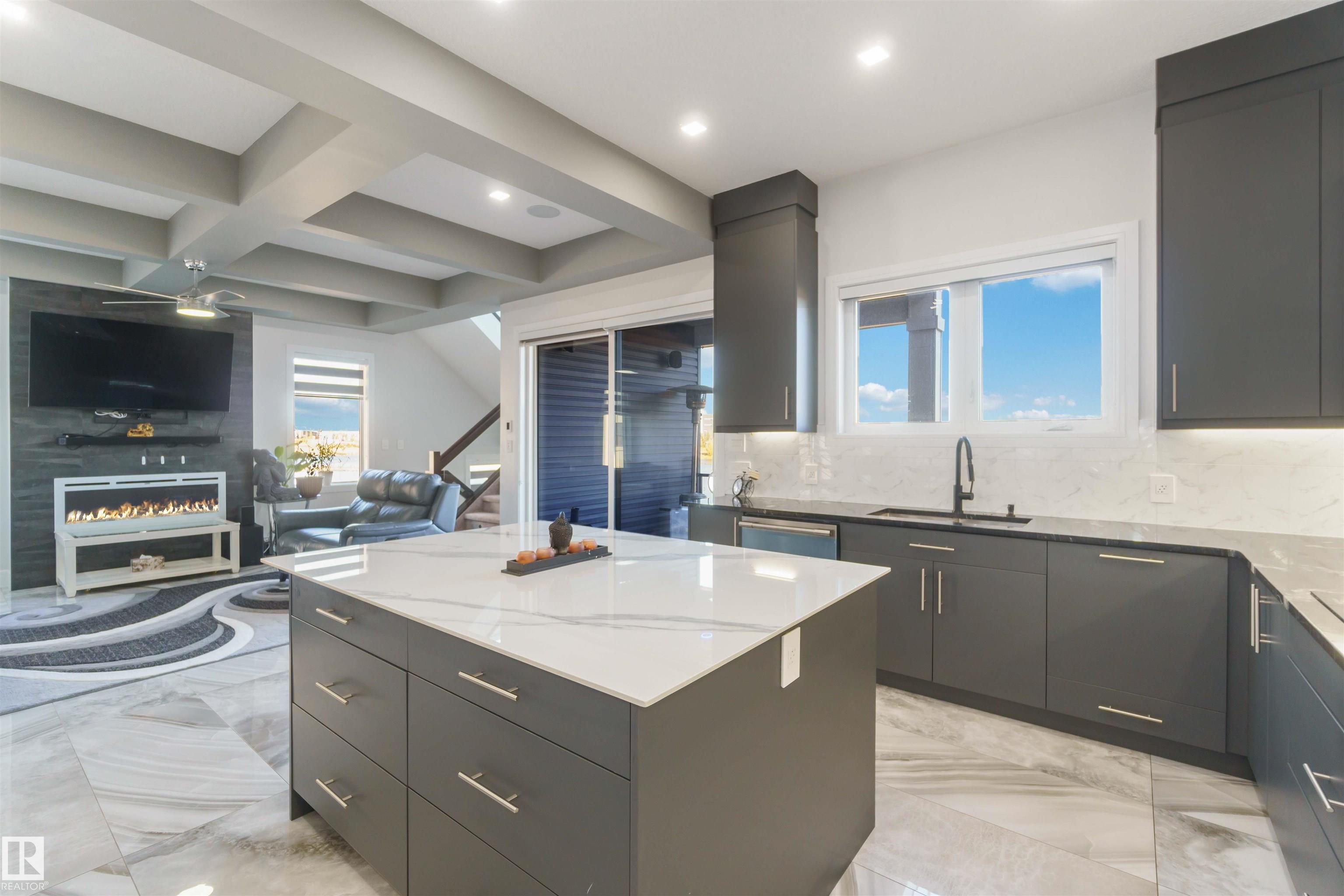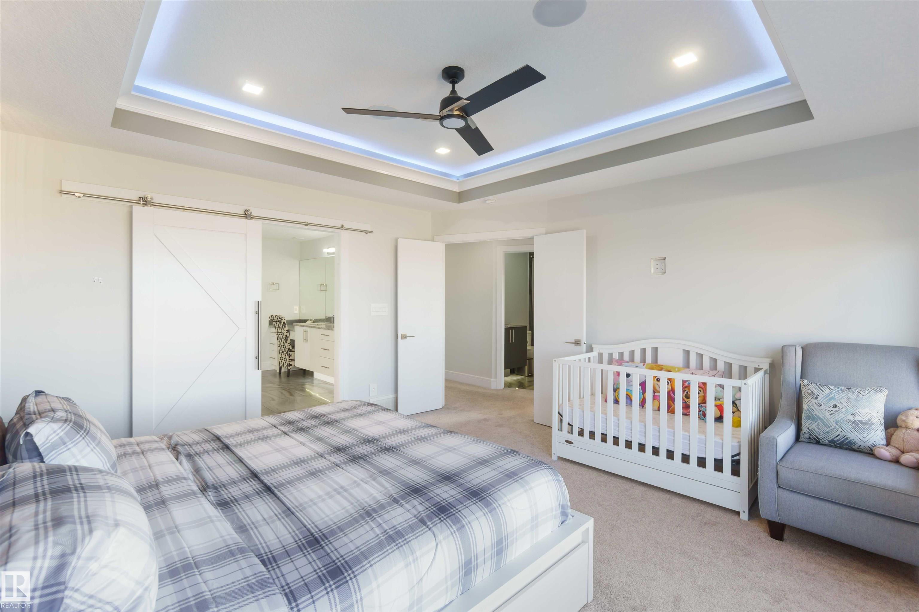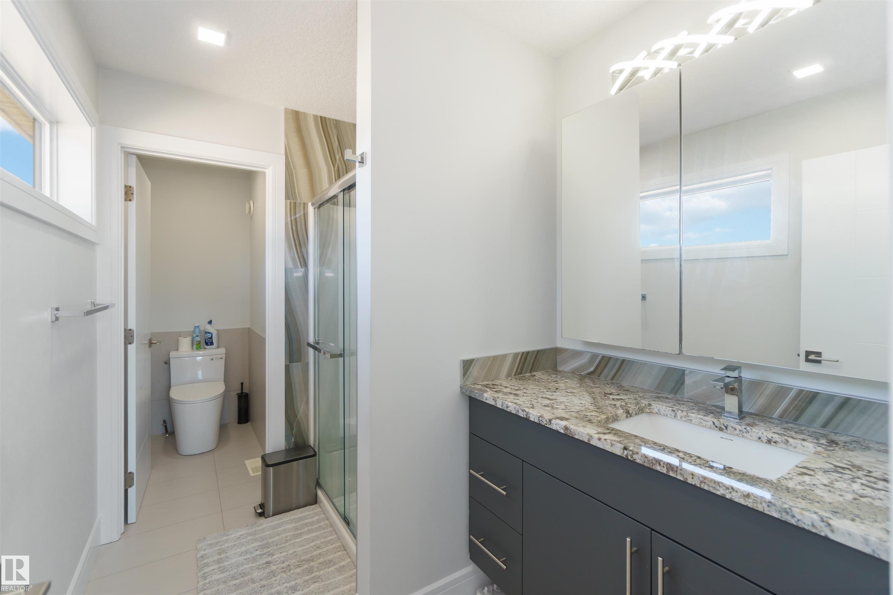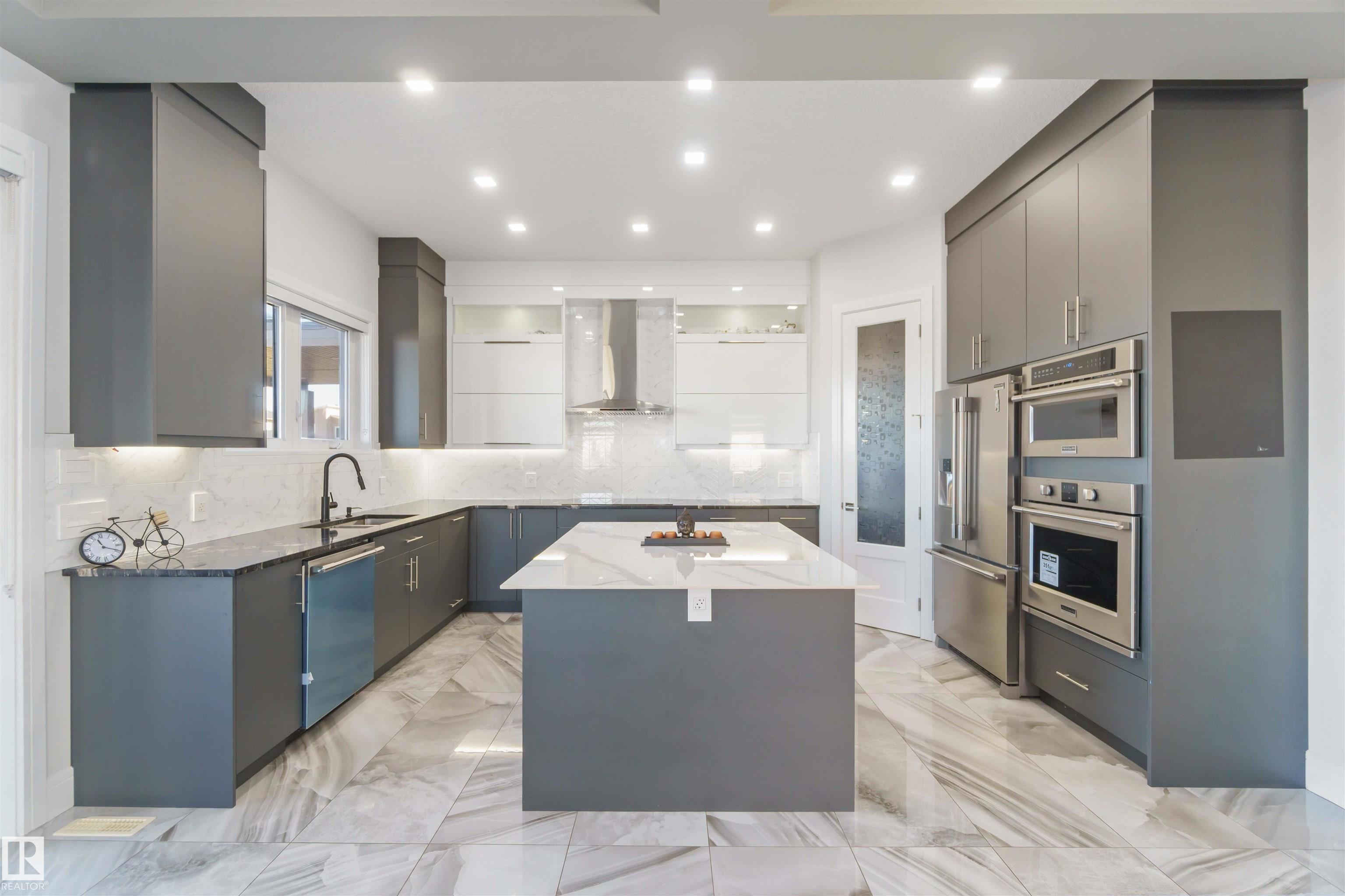 Welcome to this stunning 6 bed, 5.5 bath luxury 2-storey home in the desirable Laurel community! The main floor boasts soaring 10' ceilings, a spacious living area, large dining room, a bedroom with ensuite, 2-pc bath, and a chef's dream kitchen featuring a granite island with induction cooktop and stainless steel appliances. Beautiful tile flooring throughout. Upstairs offers a spacious primary suite with walk-in closet & spa-like ensuite, plus two more bedrooms--one with an ensuite--and another full bath. Enjoy in-floor heating in both upstairs ensuites and relax on either of the two balconies. The legal 2 bed, 1 bath basement suite with tenants already in place offers fantastic income potential. Outside, enjoy a partially covered deck, oversized double garage, and a huge backyard backing onto a pond and walking trail. Extras include pot lights throughout, solar panel & central vac rough-ins. Close to schools, shopping, parks, and quick access to Whitemud & Anthony Henday. All this home needs is YOU!
