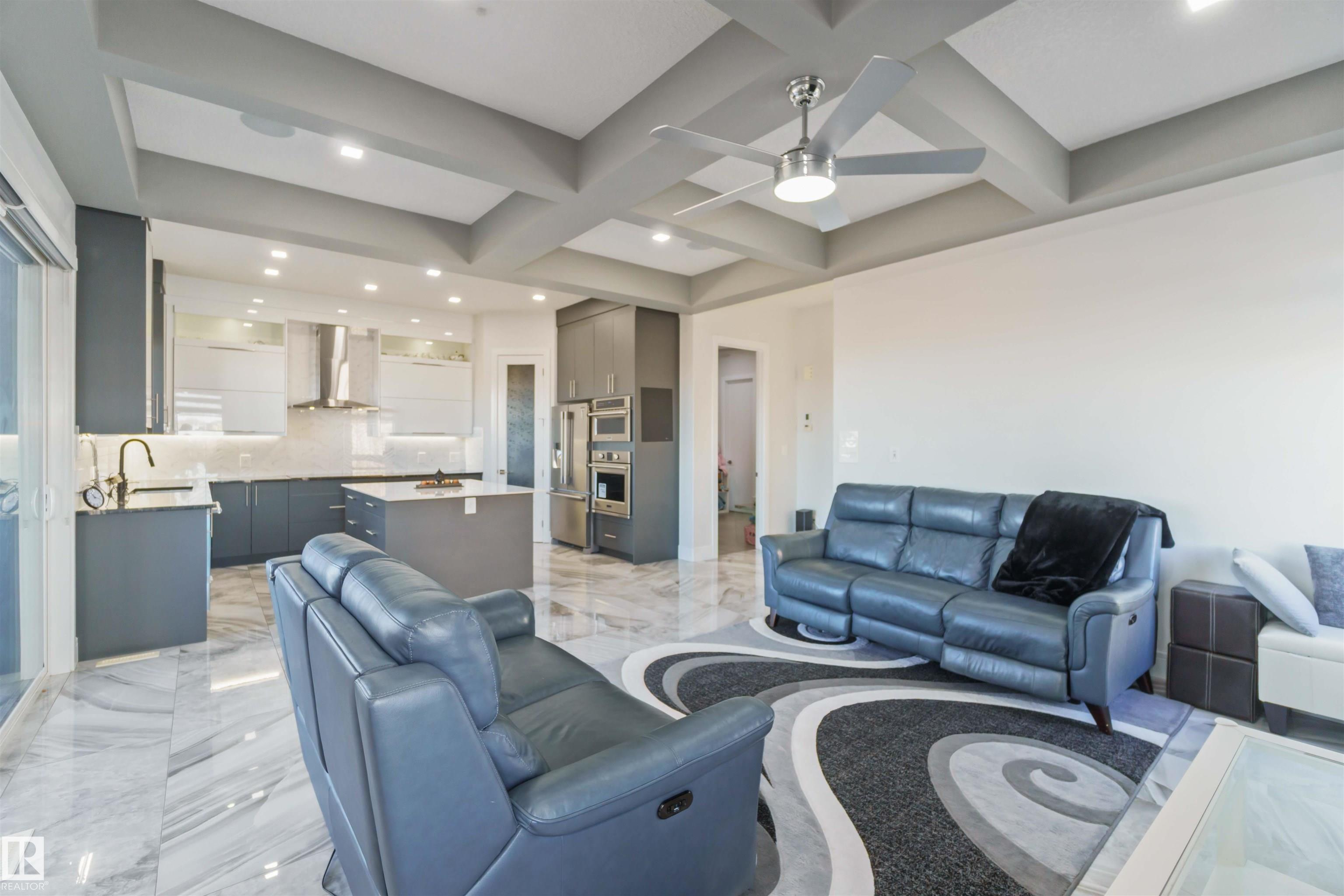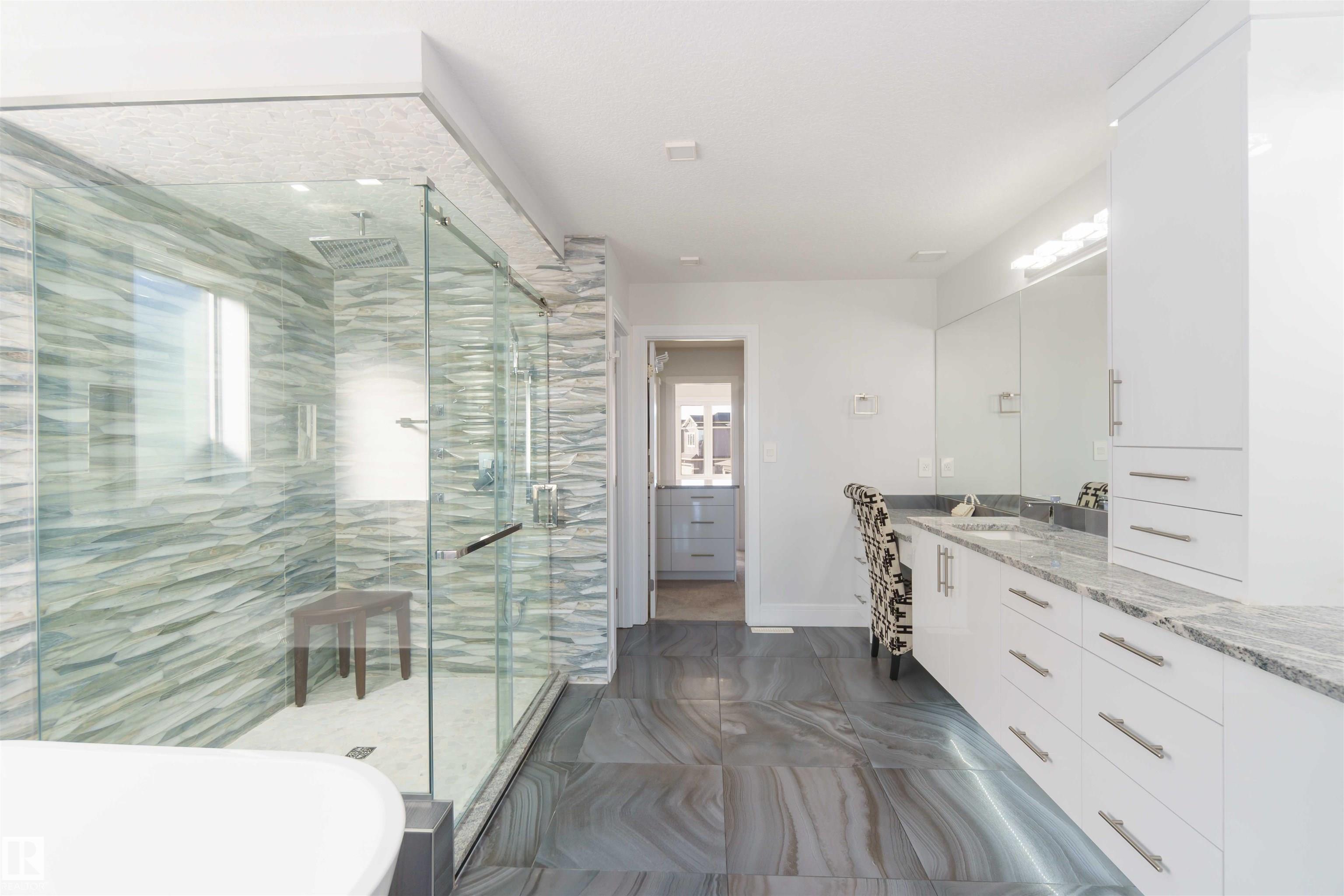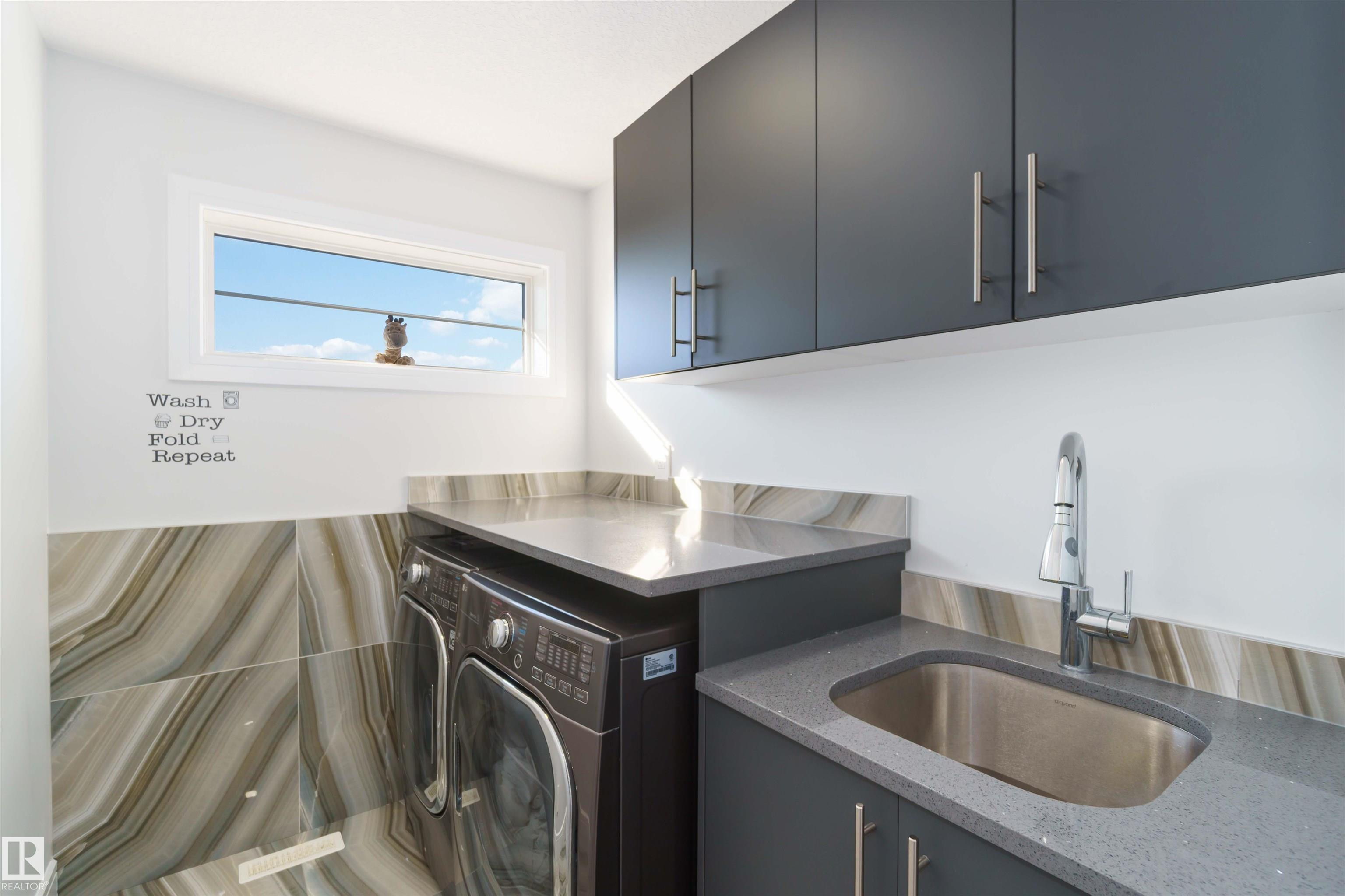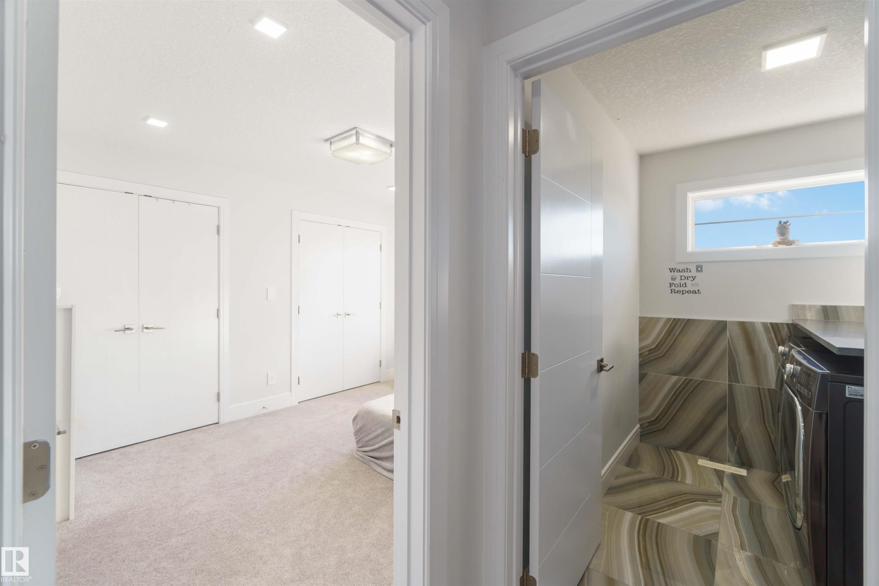 Welcome to this stunning 6 bed, 5.5 bath luxury 2-storey home in the desirable Laurel community! The main floor boasts soaring 10' ceilings, a spacious living area, large dining room, a bedroom with ensuite, 2-pc bath, and a chef's dream kitchen featuring a granite island with induction cooktop and stainless steel appliances. Beautiful tile flooring throughout. Upstairs offers a spacious primary suite with walk-in closet & spa-like ensuite, plus two more bedrooms--one with an ensuite--and another full bath. Enjoy in-floor heating in both upstairs ensuites and relax on either of the two balconies. The legal 2 bed, 1 bath basement suite with tenants already in place offers fantastic income potential. Outside, enjoy a partially covered deck, oversized double garage, and a huge backyard backing onto a pond and walking trail. Extras include pot lights throughout, solar panel & central vac rough-ins. Close to schools, shopping, parks, and quick access to Whitemud & Anthony Henday. All this home needs is YOU!
