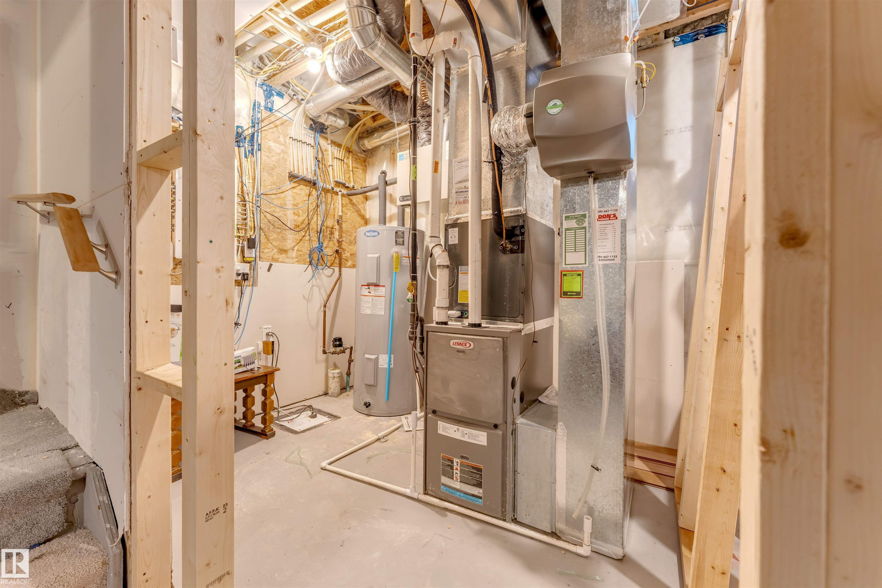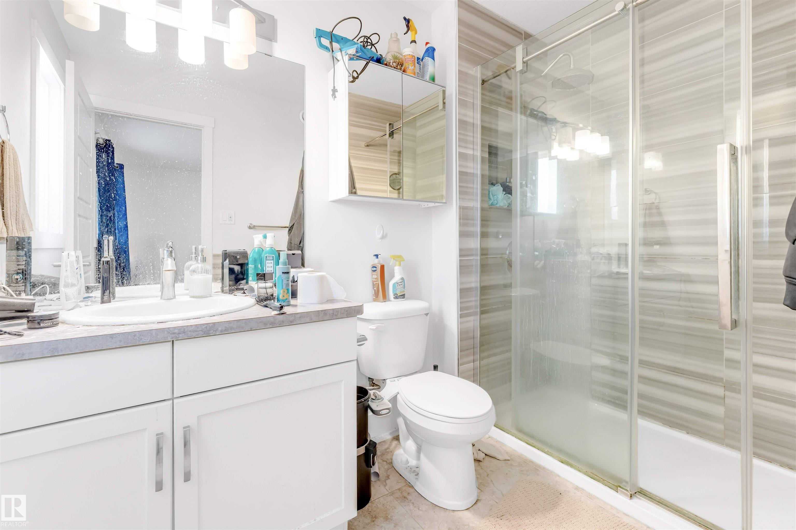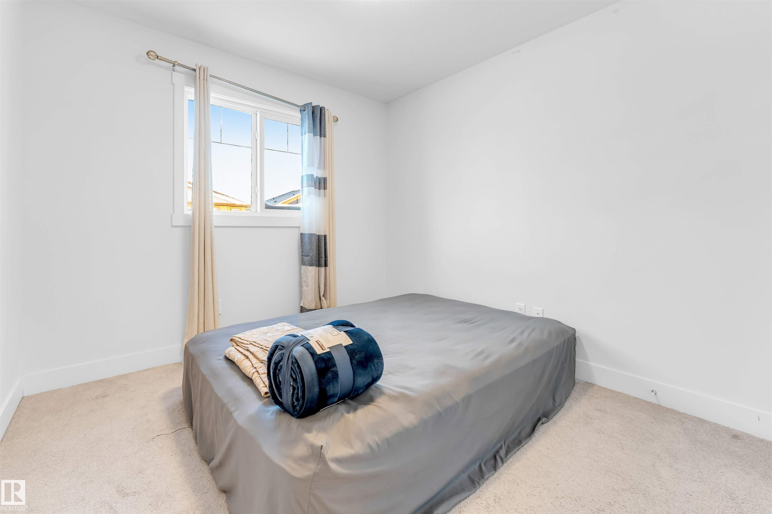 Welcome to this beautifully crafted residence located in the sought-after community of Laurel. This elegant east-facing home offers approximately 1,610 sq. ft. of refined living space featuring 3 bedrooms and 2.5 bathrooms. Thoughtfully designed and meticulously maintained, the home is air-conditioned, fully landscaped, fully fenced, and complemented by an oversized double detached garage. The main floor showcases an open-concept layout with expansive windows, laminate flooring, and a stunning kitchen appointed with white cabinetry, quartz countertops, and stainless steel appliances. Upstairs, retreat to the serene primary suite featuring a luxurious upgraded ensuite and a generous walk-in closet, along with two additional bedrooms, a full bath, and upper-floor laundry. The unfinished basement offers endless customization potential. Ideally located steps from Svend Hansen School and minutes to Anthony Henday, this home offers exceptional lifestyle and value.
