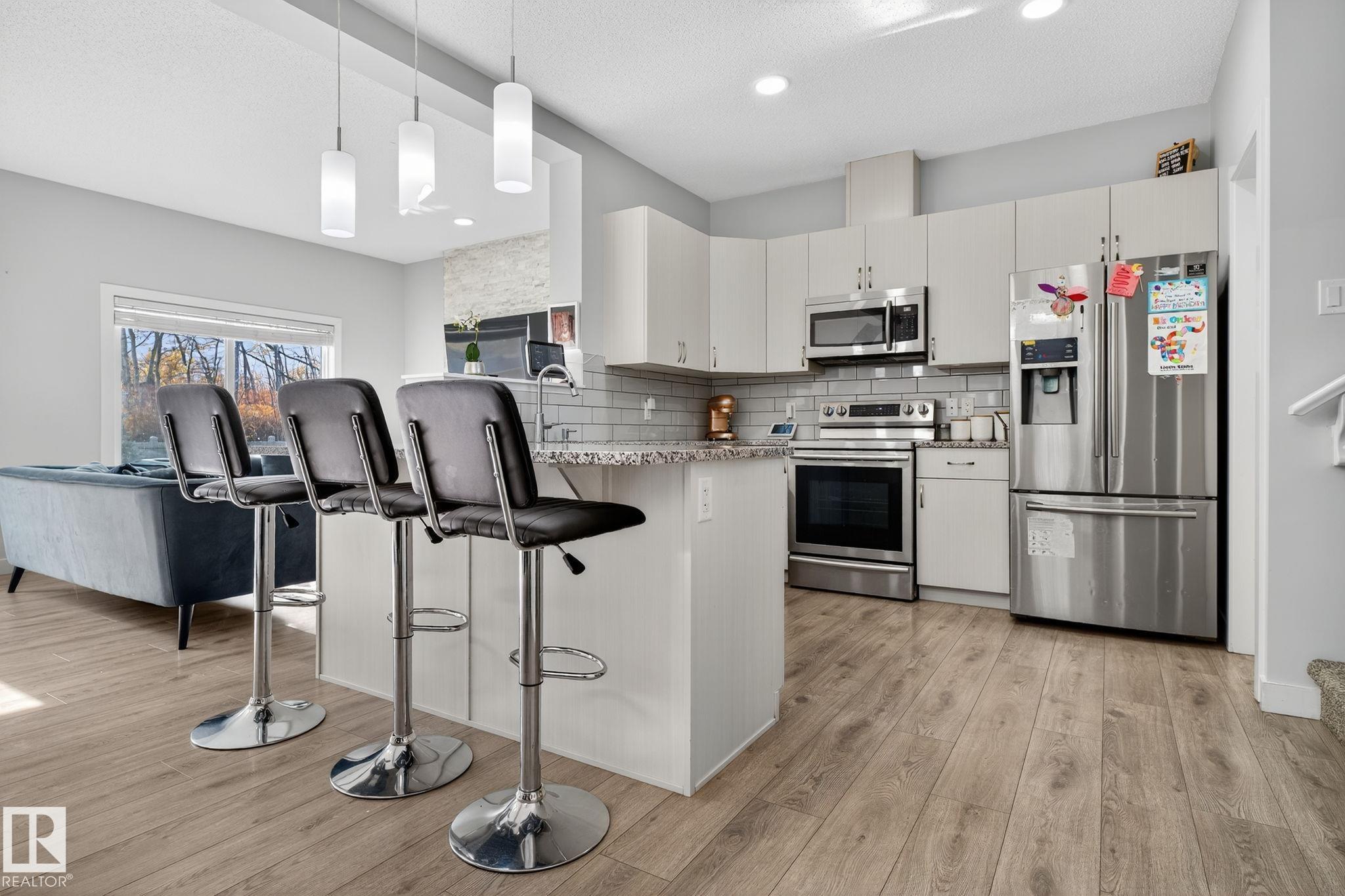 This beautiful half duplex in the desirable community of Maple Crest offers a total of 2,021.67 sq. ft. of living space, including a fully finished basement. The home features three spacious bedrooms, three full bathrooms, and a flex space perfect for an office or playroom. The basement includes an additional bedroom--ideal for guests or extended family. Enjoy a double attached garage, a huge backyard, and plenty of large windows filling the home with natural light. The modern kitchen is equipped with stainless steel appliances, Quartz countertops, and stylish lighting. A cozy fireplace with a stunning stone feature wall adds warmth and elegance to the living area. Located close to all amenities, schools, parks, and shopping, with very easy access to major highways like Whitemud Drive and Anthony Henday, making commuting around the city an absolute breeze.