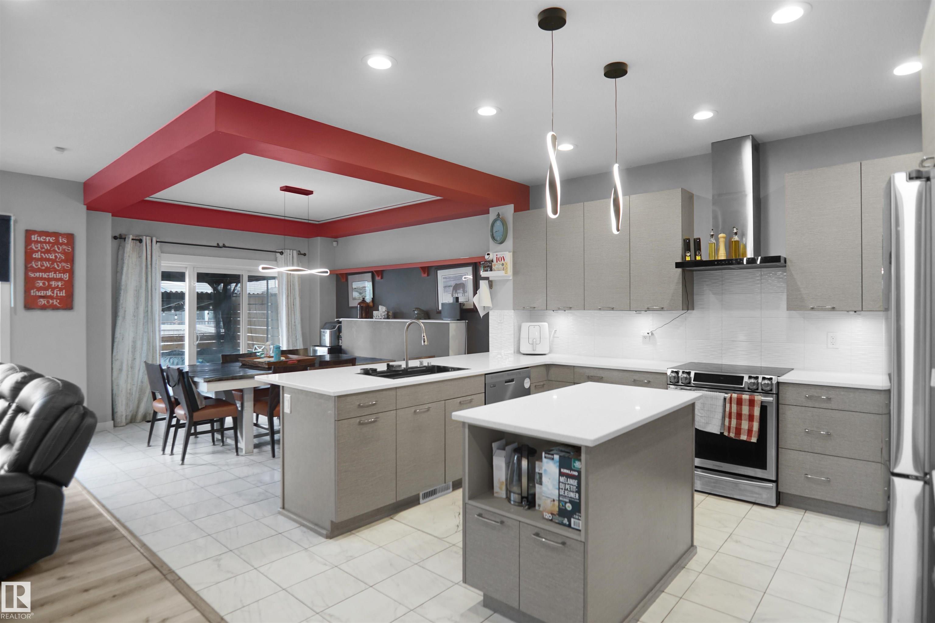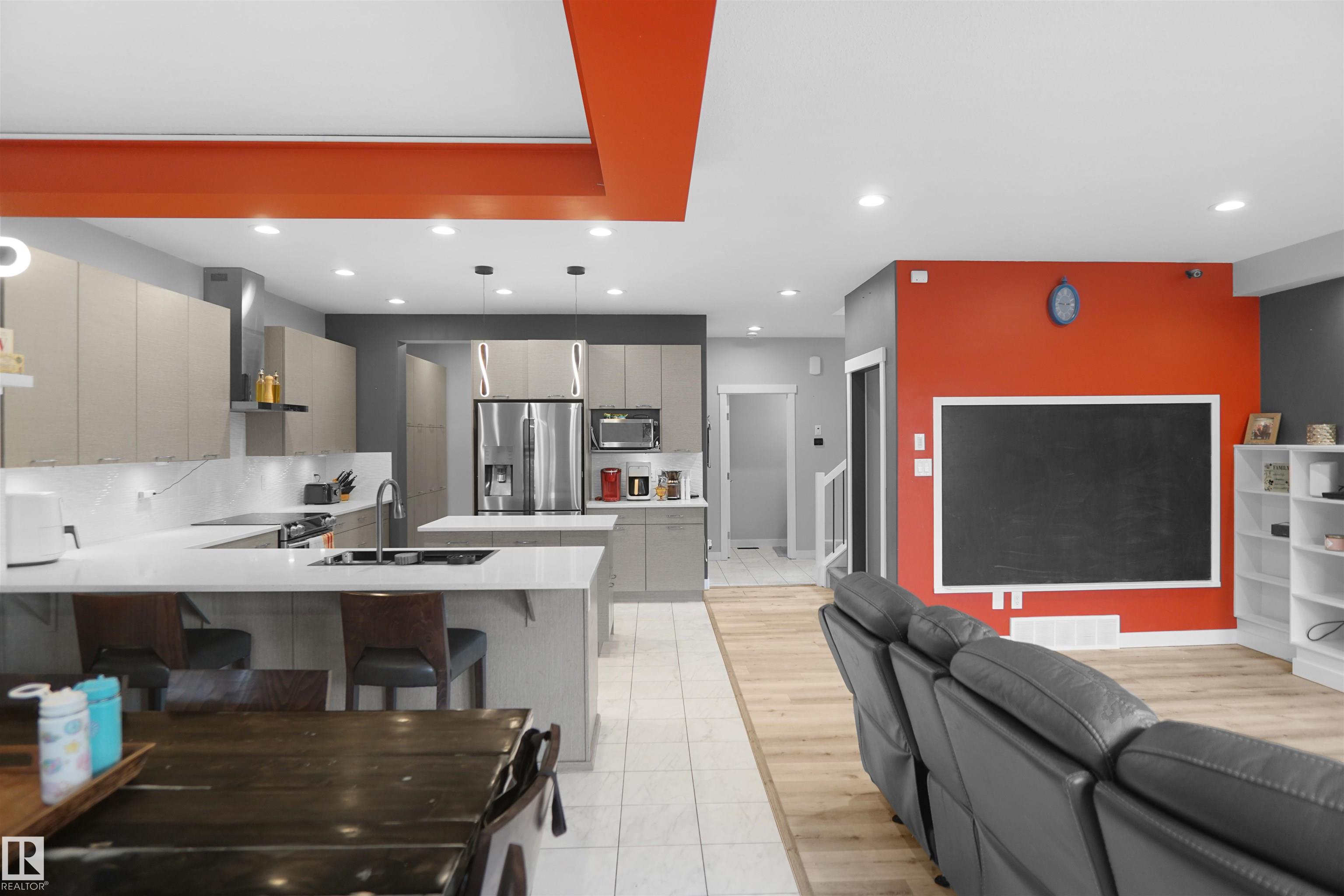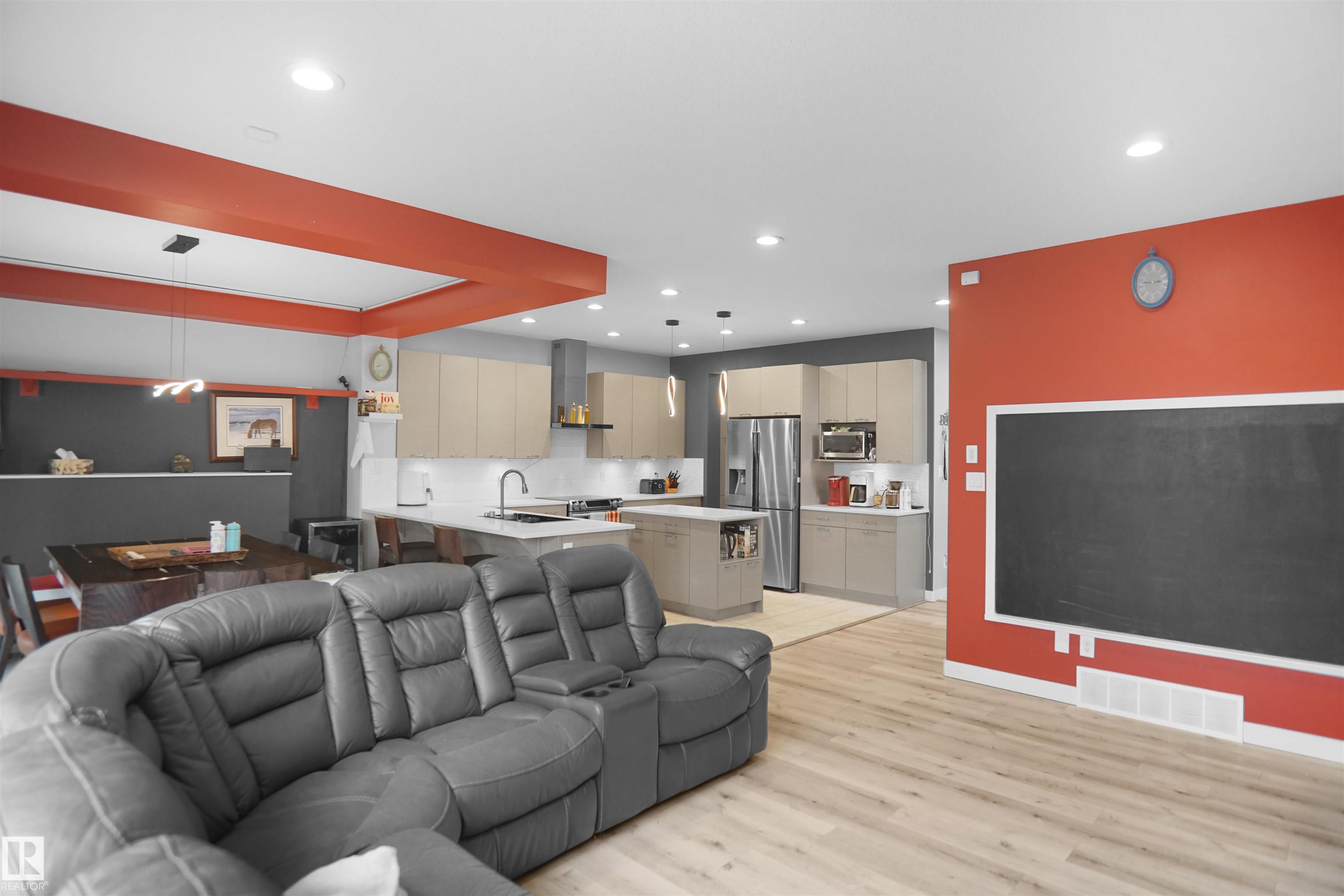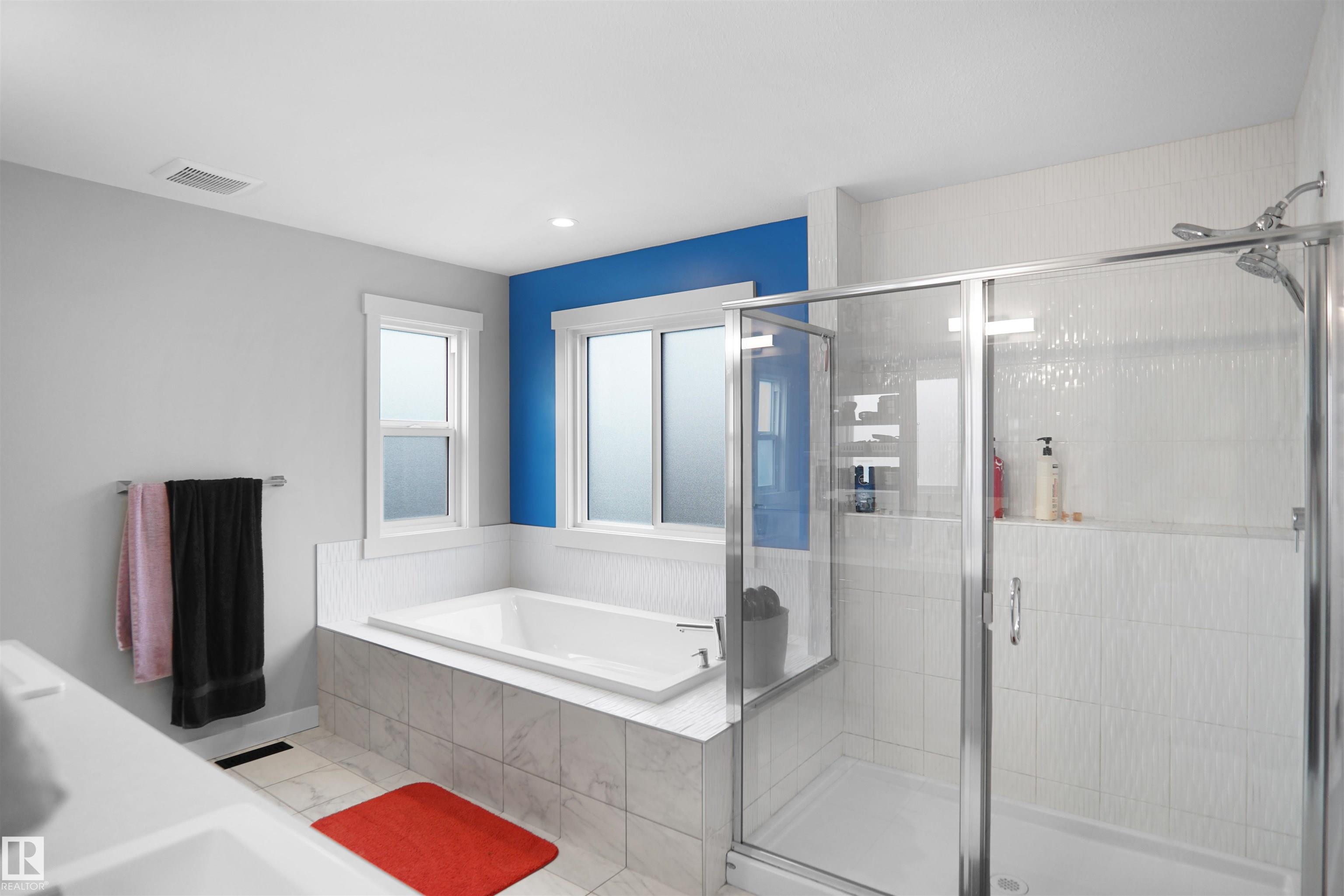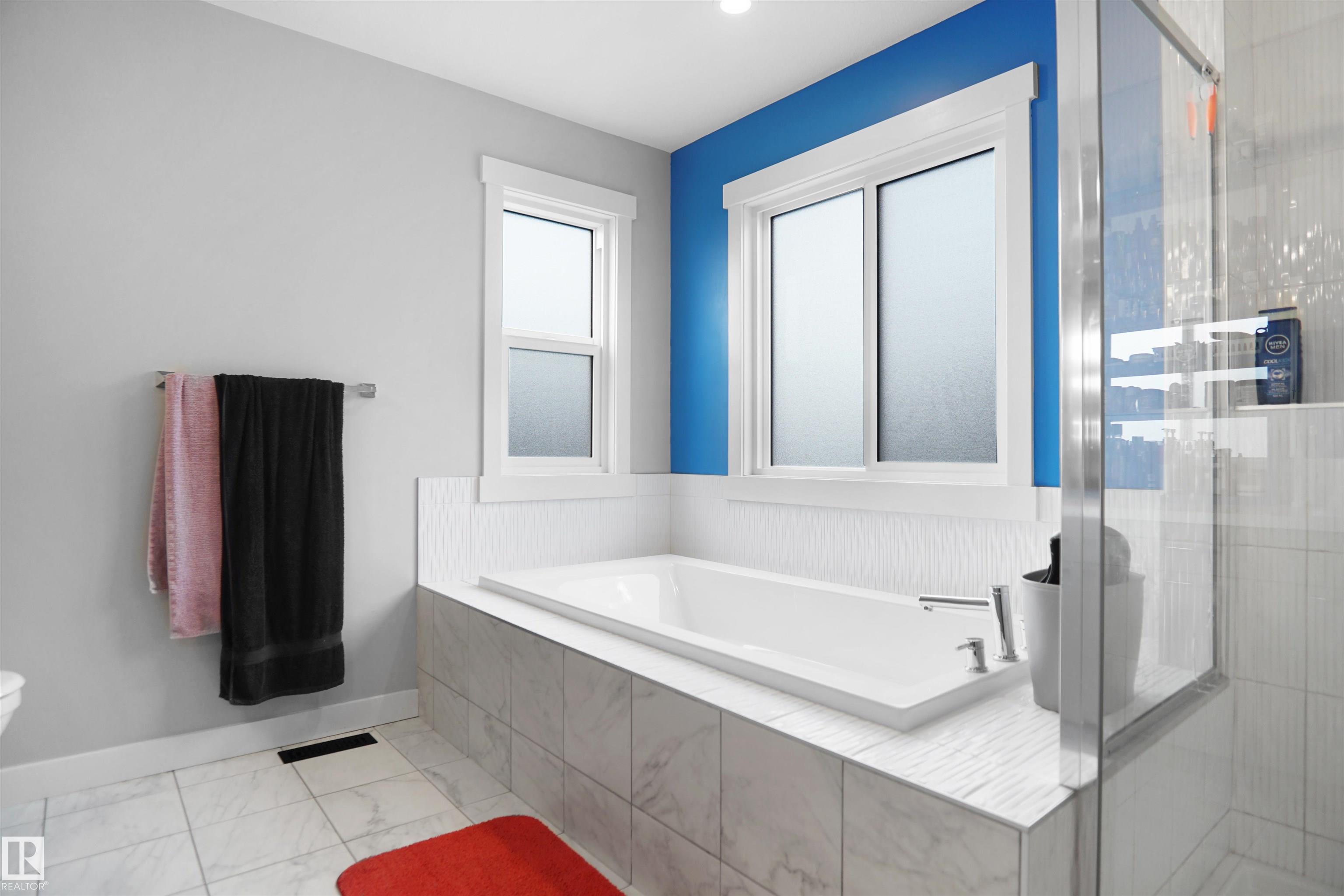 Welcome to this well-kept custom-built home in the heart of Maple. This Coventry built home is situated right around the corner from the walking trails and local playground. As you enter, you'll be greeted by a wide foyer leading into an open floor layout with 9-foot ceilings and a chef's kitchen. The dining area which over looks the massive back yard is perfect for entertaining. The upper level has a large bonus room with large windows for that extra natural light; the primary bedroom is large enough to fit a king size bed and has a 5-piece spa like ensuite. The additional two bedrooms are a good size and share a full batch. This level also has the laundry room. The basement is full finished and comes with an additional massive bedroom, a 3-piece bath and a very large rec room perfect for entreating or a larger family needing more space. The property is full landscaped and fenced. Close to all amenities with east access to the Henday and Whitemud.