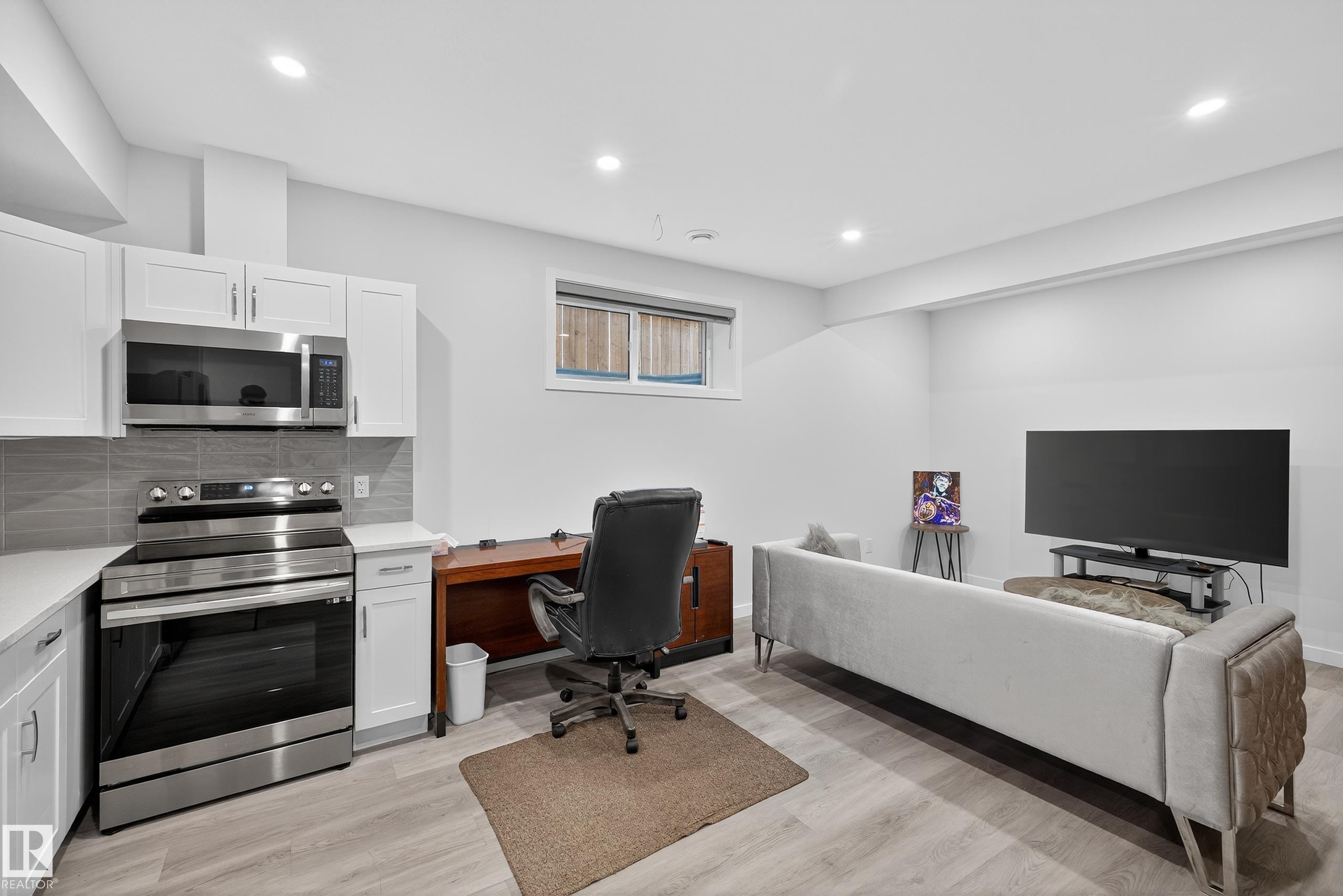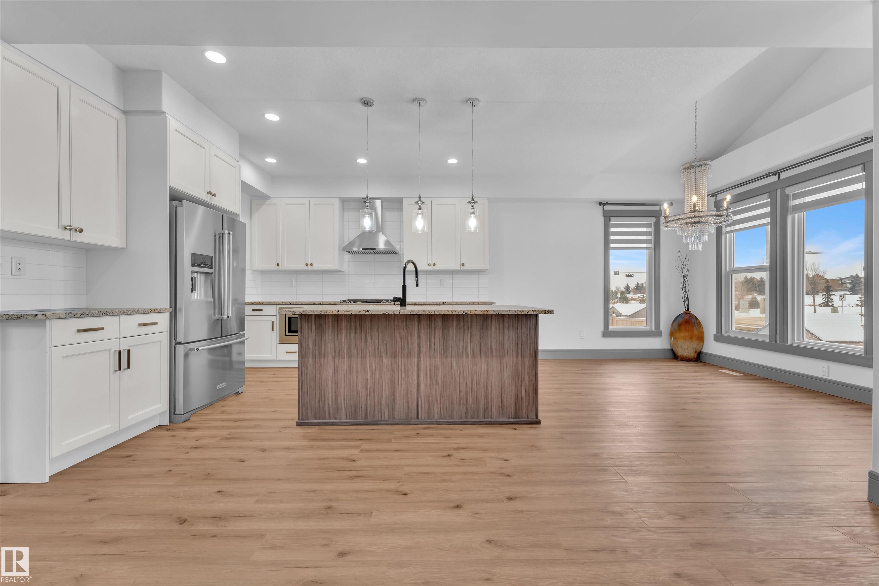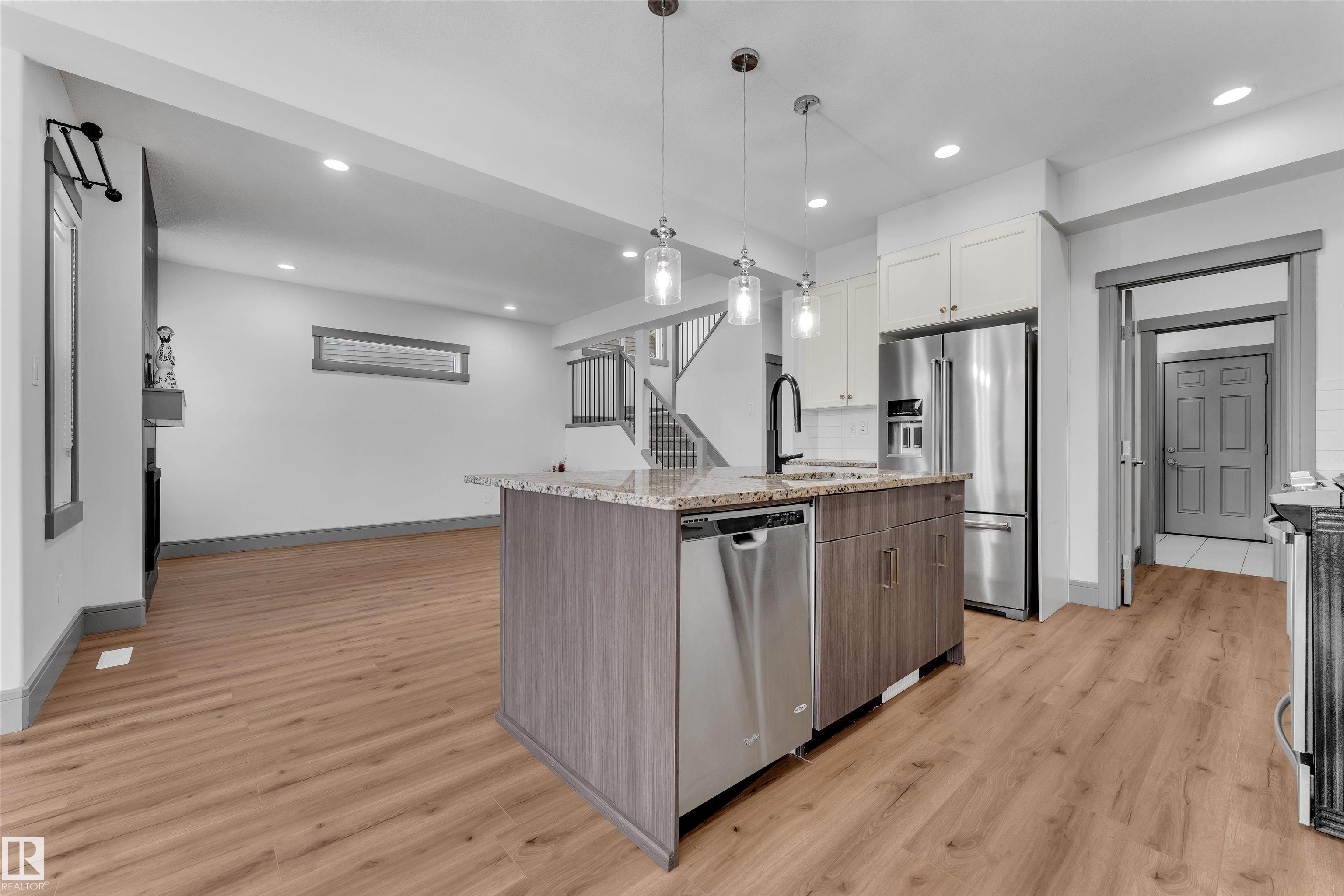 Welcome to this stunning modern cul-de-sac home offering 3,000 sq ft of total living space, thoughtfully updated for comfort and versatility. Freshly painted with new flooring throughout, this air-conditioned home impresses with soaring vaulted ceilings and expansive windows that flood the space with natural light. The open-concept main floor features new vinyl plank flooring and a chef-inspired kitchen with granite countertops, tile backsplash, stainless steel appliances, and a walk-through pantry connecting to the mudroom and double attached garage. Custom built-in MDF storage in all closets and the laundry room adds style and function. The living room is centered around a sleek gas fireplace, while the dining nook opens to a deck and backyard--ideal for entertaining. Upstairs offers a spacious bonus room and three bedrooms, including a luxurious primary suite with a spa-inspired ensuite. A fully finished in-law suite with separate entrance provides excellent flexibility. Modern updates & smart storage.