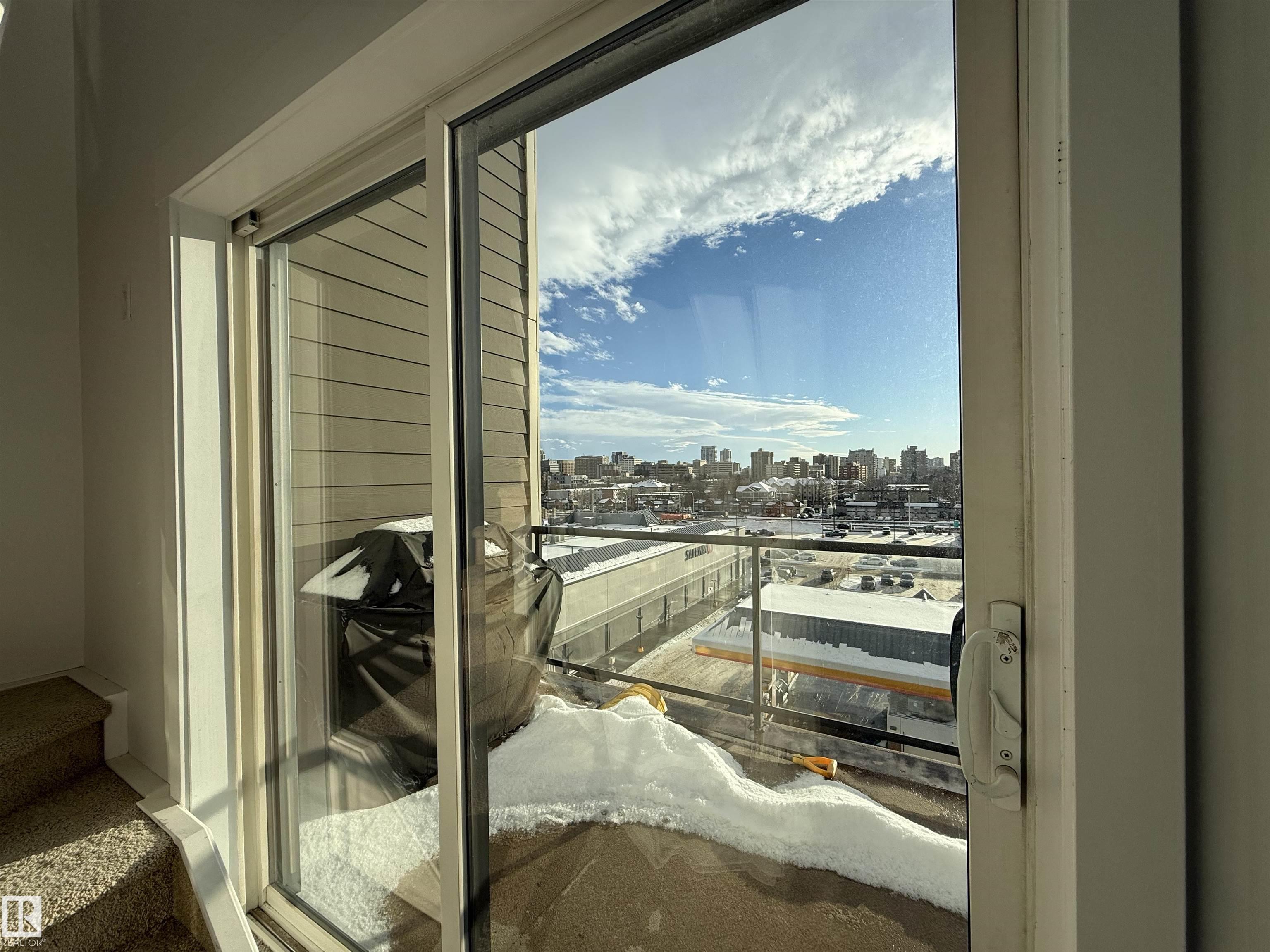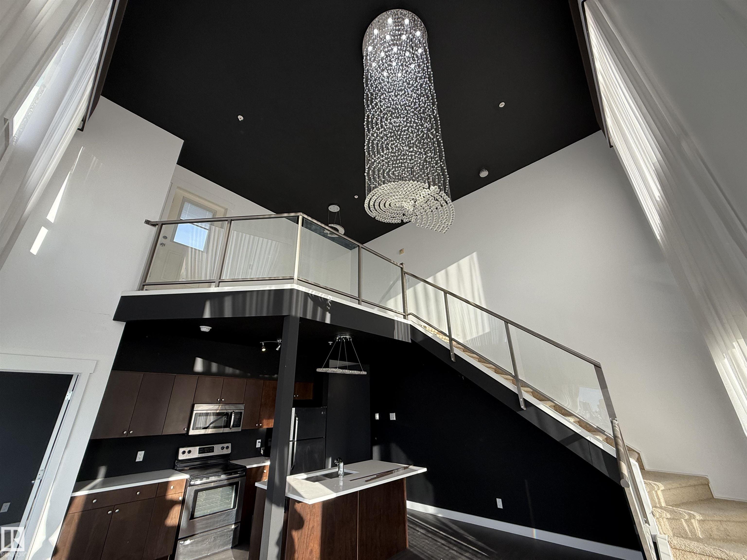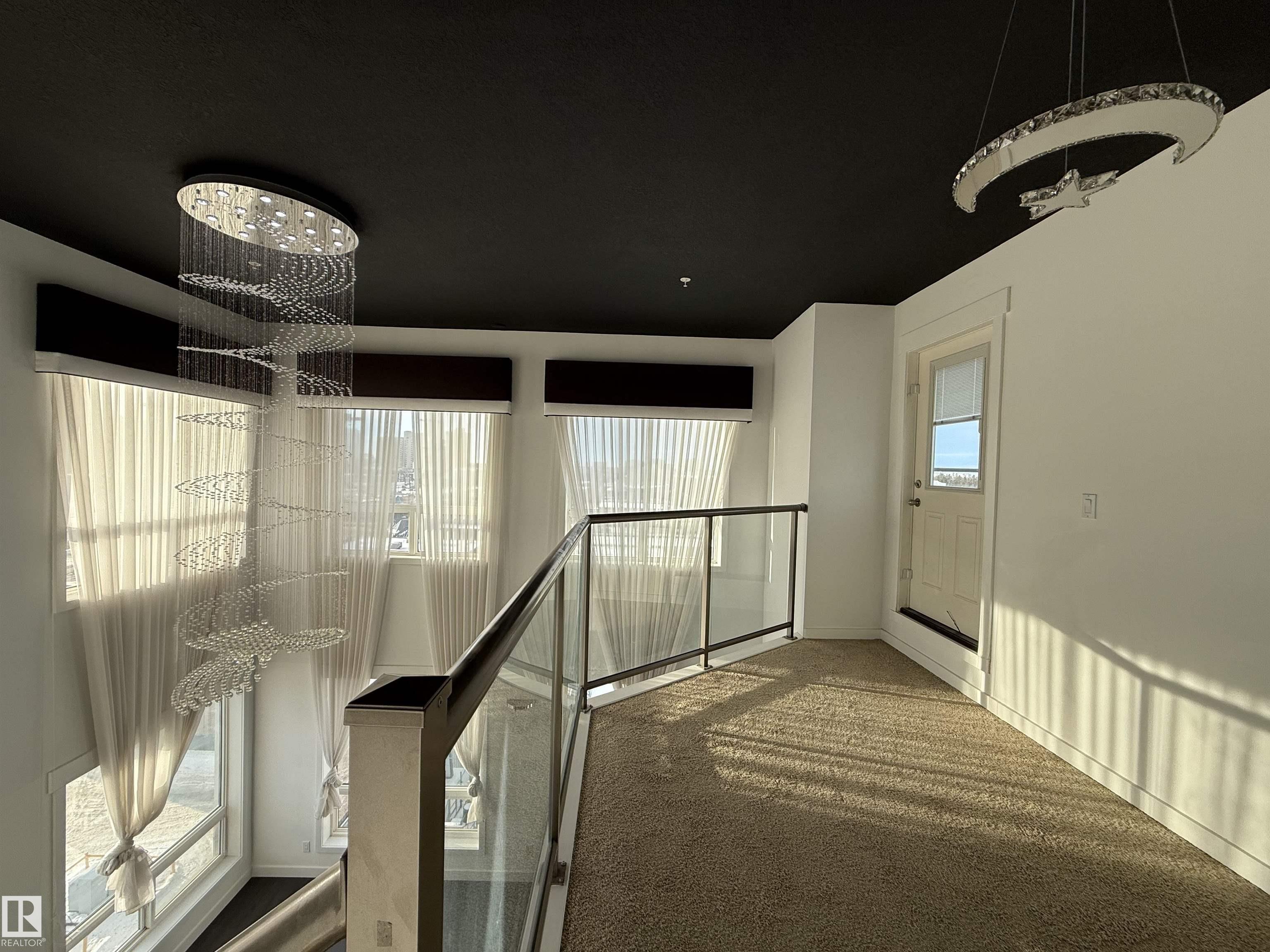 Bask in sunlight from this stunning corner penthouse designed to impress. 9' ceilings throughout rise to a dramatic 18' in the living and dining area, creating a breathtaking sense of space. This layout offers 2 bedrooms plus a den and loft, paired with 2 beautifully finished bathrooms. The south-facing balcony floods the home with light, while laminate flooring with in-floor heating adds comfort and style. The spacious kitchen features sleek quartz countertops and appliances, perfect for entertaining. Enjoy the convenience of stacked laundry and elevate your lifestyle with a private, expansive rooftop deck--your own urban escape above it all. Property is sold as is where is at the time of possession, no warranties or representation.