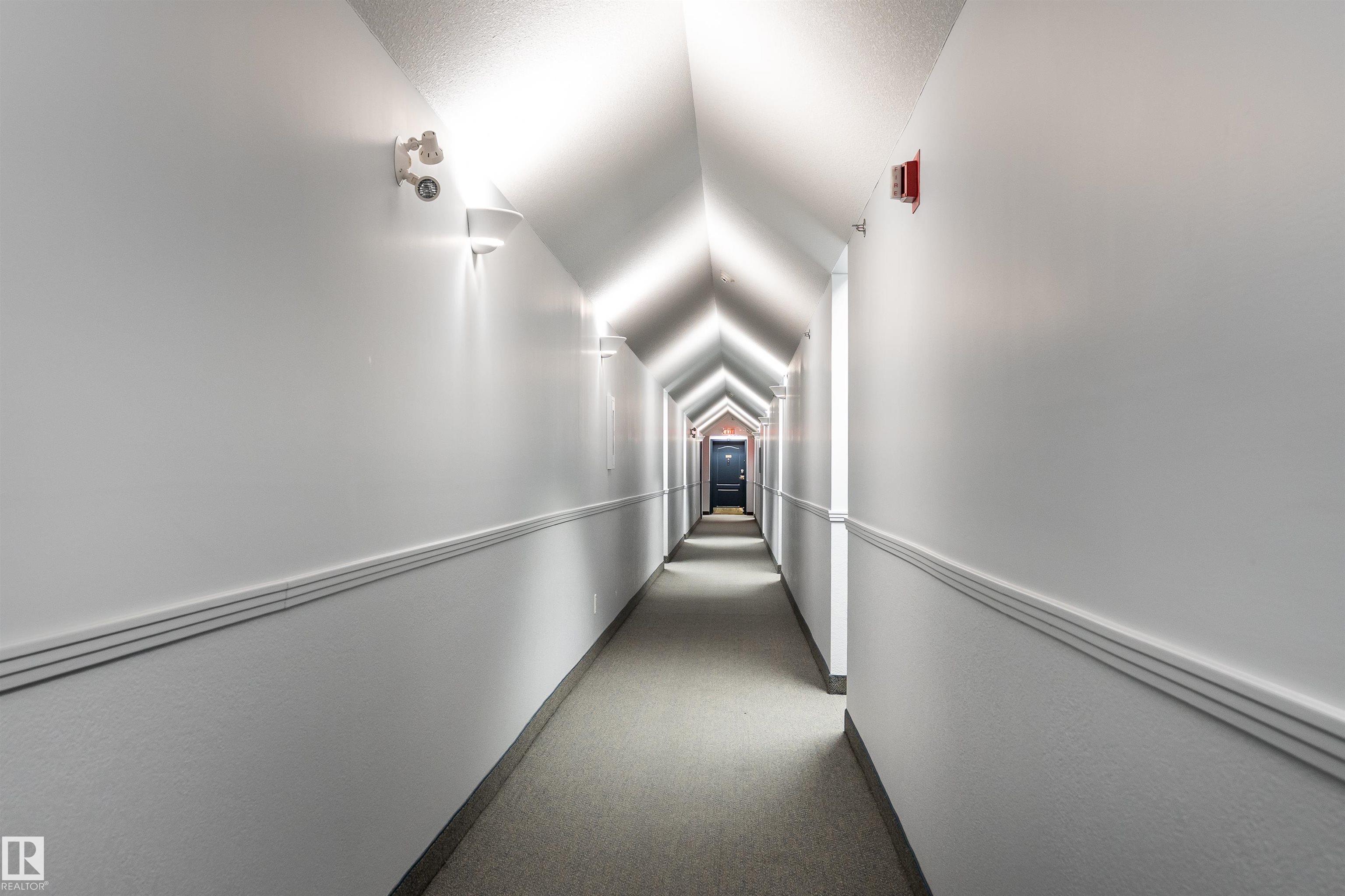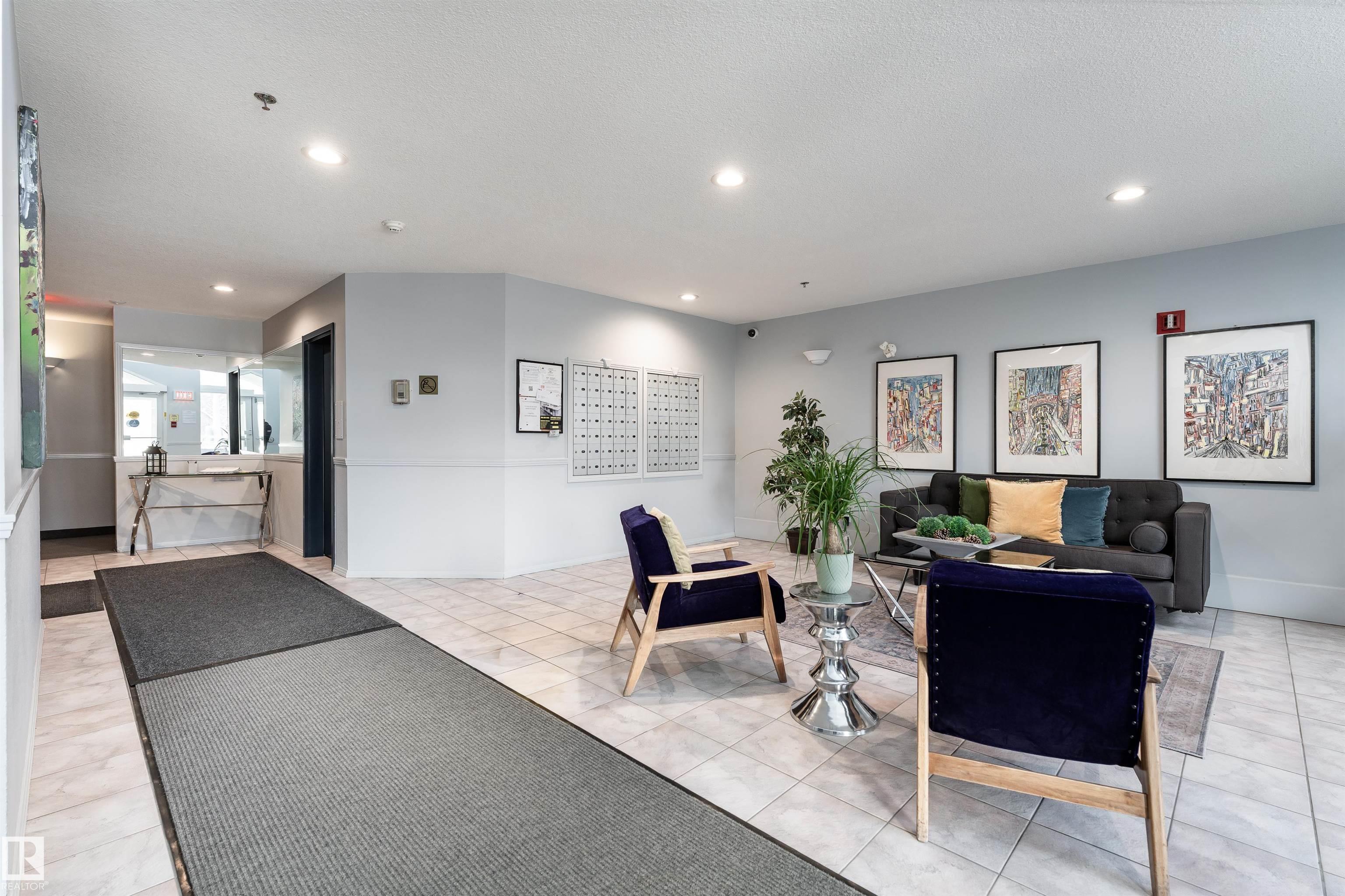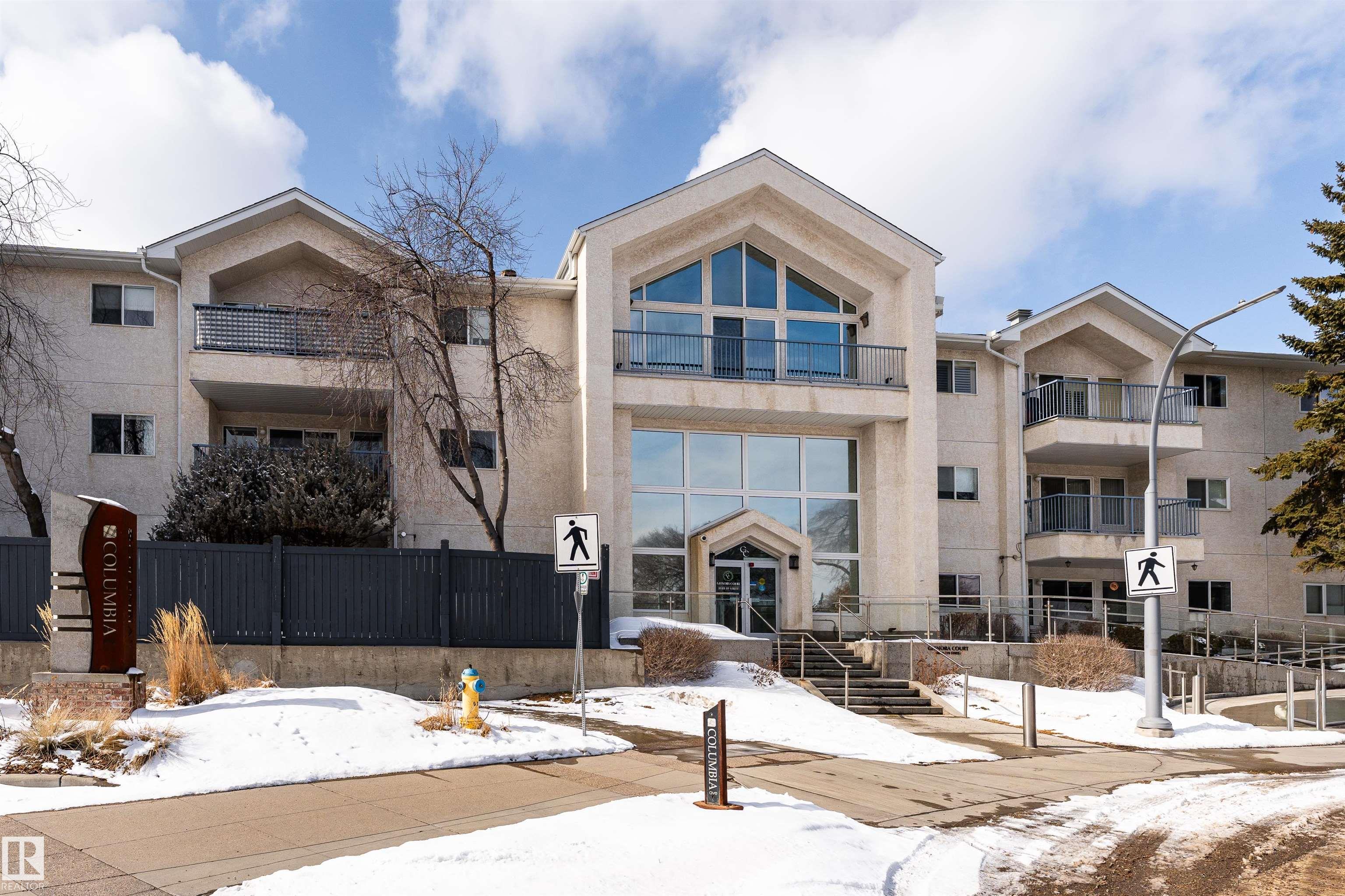 Perched on the TOP FLOOR, this SOUTH FACING 790 sq ft unit in Glenora Court is filled with natural light and incredible views, putting first time buyers and investors right where they want to be. Step inside to a bright, open layout centered around a cozy FIREPLACE, with a functional kitchen featuring an eat-up bar that flows into your dining and living space. The oversized bedroom easily fits a king setup and pairs with a clean 3-piece bath, while IN SUITE LAUNDRY adds everyday ease. Start your mornings or unwind on your private balcony, soaking in skyline views. This home also includes a separate INDOOR STORAGE ROOM, plus access to amenities including a full EXERCISE ROOM, REC ROOM with pool table, and CAR WASH. Enjoy walking distance to the Brewery District, steps from grocery stores, boutiques, restaurants, and minutes to MacEwan University, downtown, and 124 Street--easy, connected living in a prime location. Views, location, and lifestyle all in one; your next move starts here.