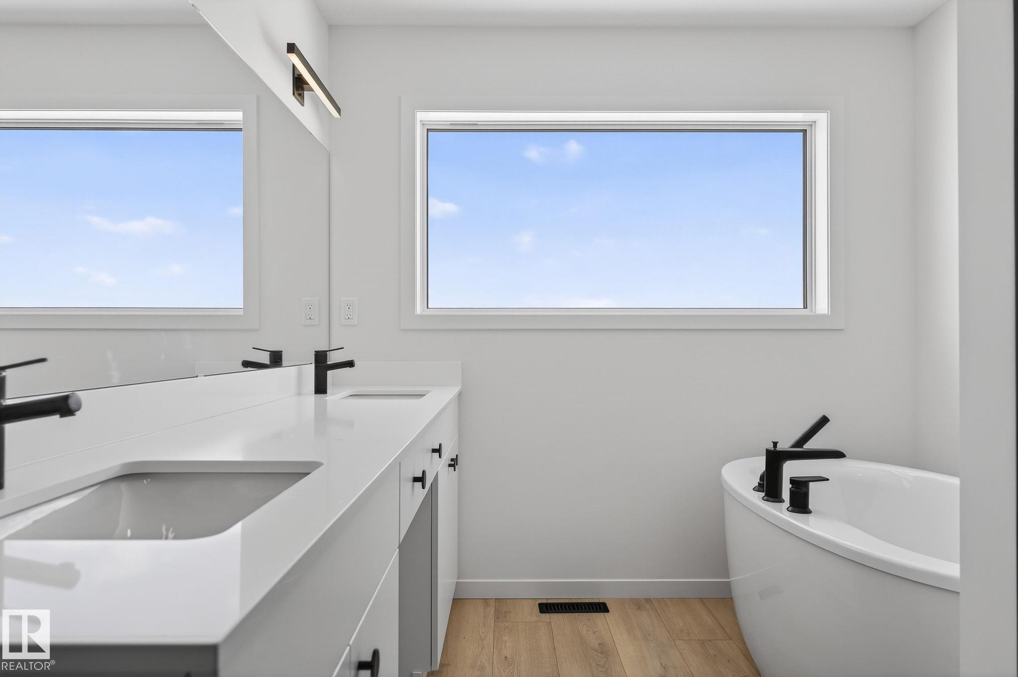 QUICK POSSESSION | Brand new Cantiro Homes "Career Achieve 22" in sought-after Rosenthal. This stunning 2,080 square ft, 2-storey offers 3 bedrooms, 2.5 baths, and an attached double garage -- EV-ready with a 240V plug-in for electric vehicles. Huge triple-pane windows flood every room with natural light. The open main floor features soaring 9'1" ceilings, a chef's kitchen with quartz countertops, waterfall island, built-in microwave, hood fan, and walkthrough pantry. An enclosed home office with French door and interior window plus a designer glass panel railing staircase add serious upscale character. Upstairs, retreat to the generous primary suite with dressing room, freestanding soaker tub, and tiled walk-in shower. Two additional bedrooms, media room, and convenient laundry complete the upper level. Quality throughout: R40 roof insulation, HRV system, radon rough-in, and 200-amp service. Basement is undeveloped with separate side entry -- suite potential! Move in ready.